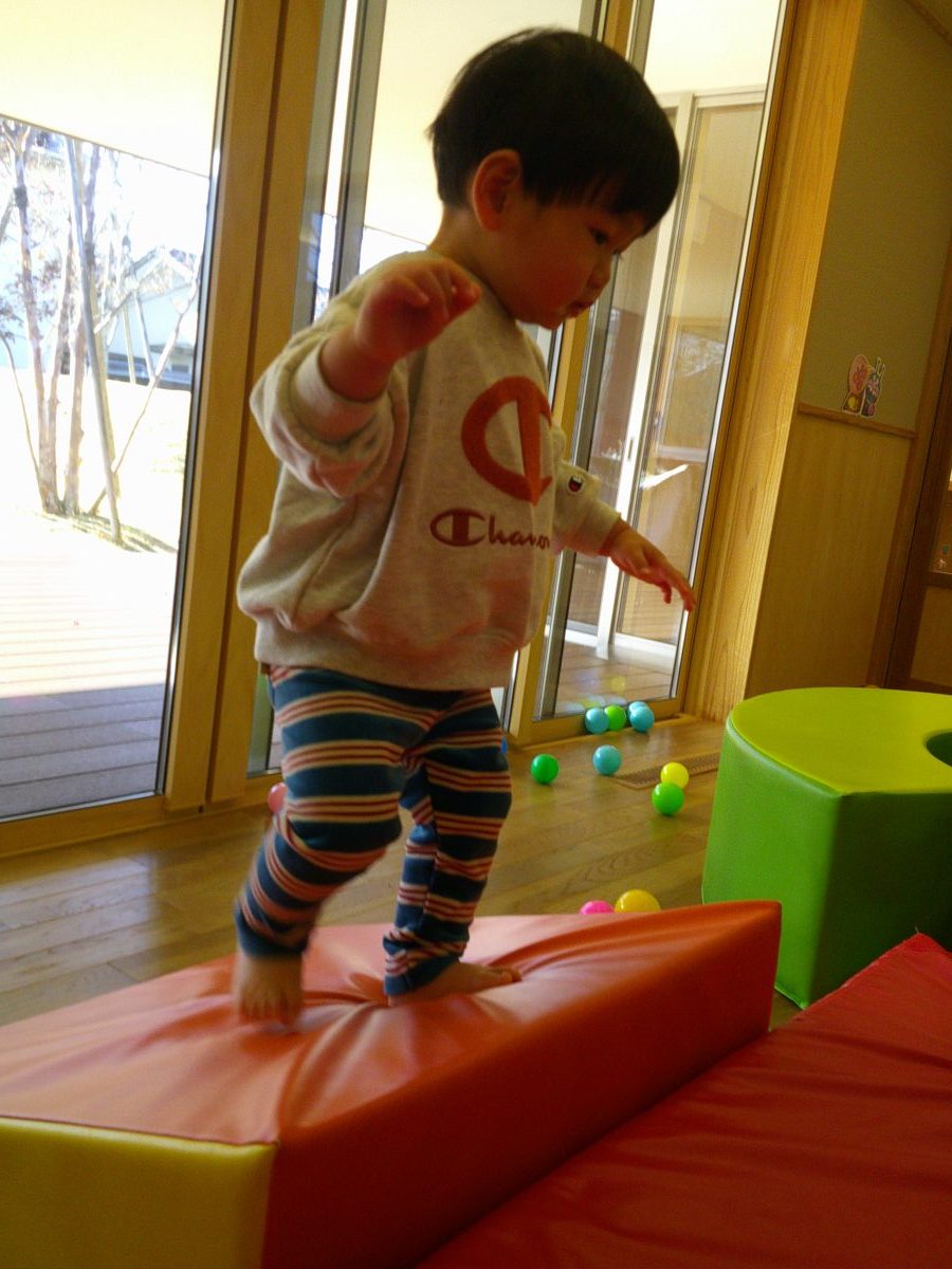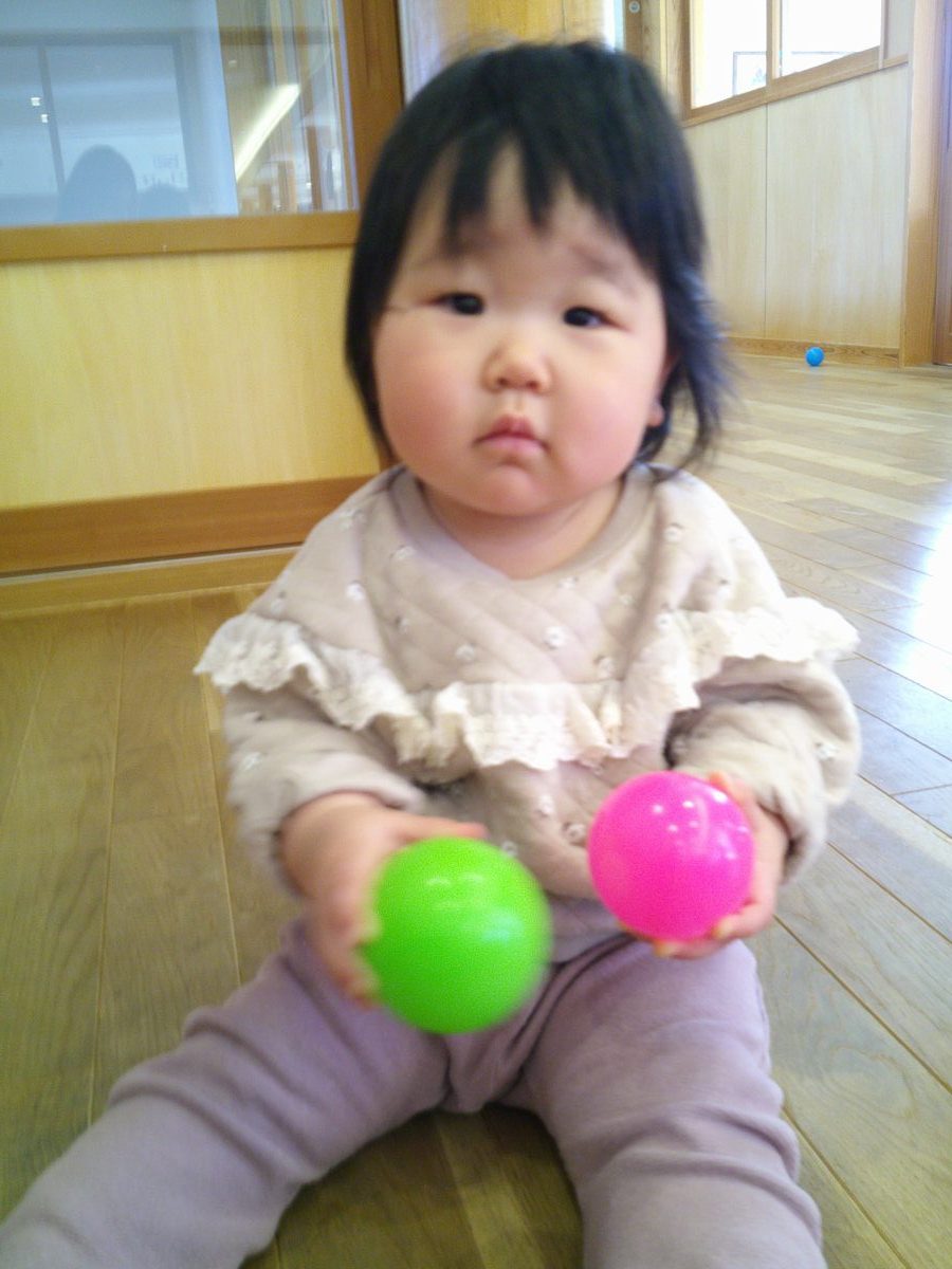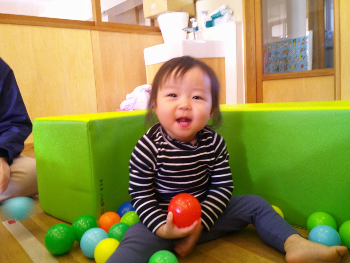 お部屋に大型マットを持って来てボールプールで遊びました🎵