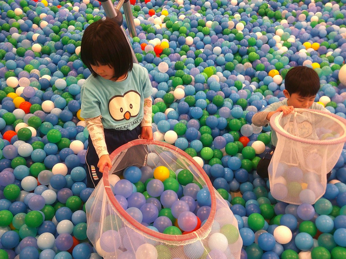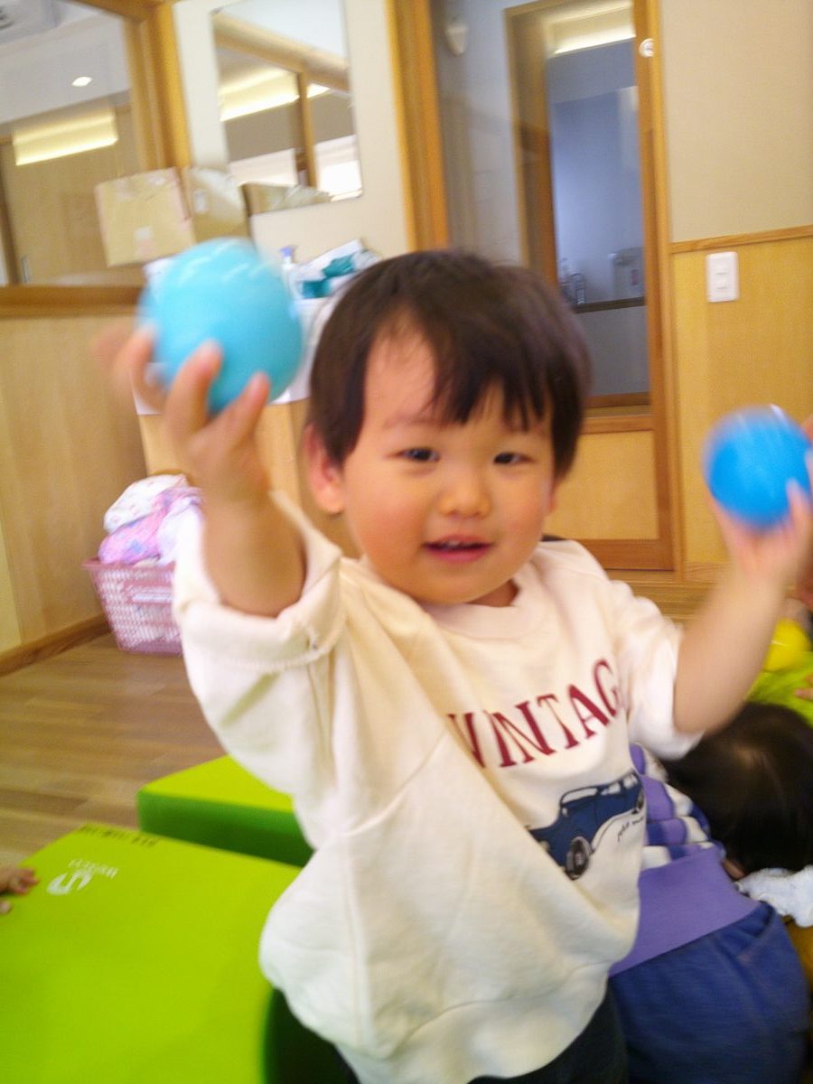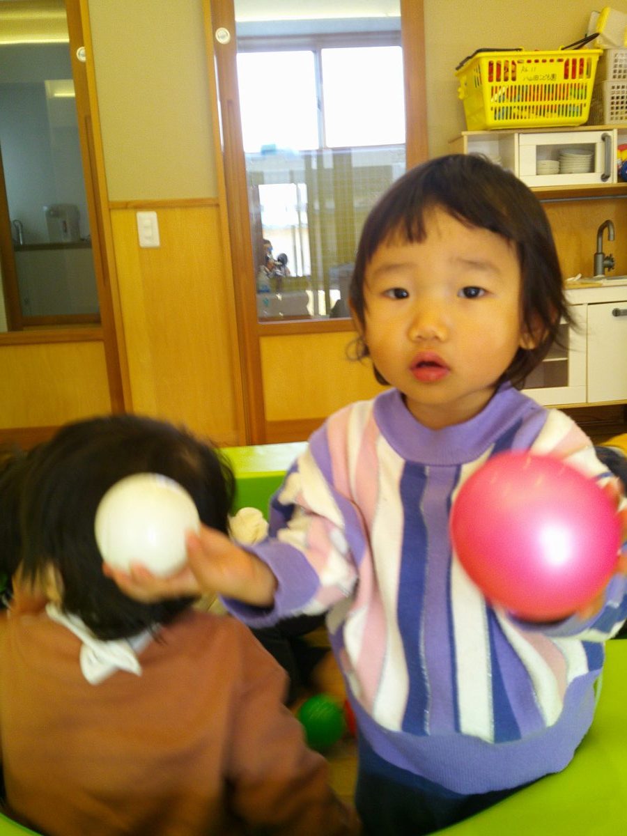 お部屋に大型マットを持って来てボールプールで遊びました🎵