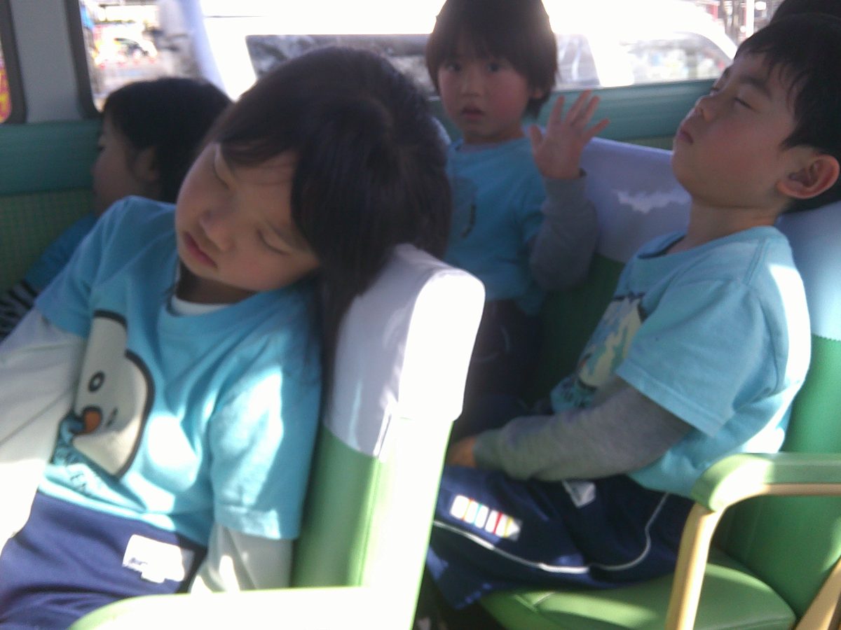 帰りのバスでは遊び疲れてぐったりのにじ組さんでした😊