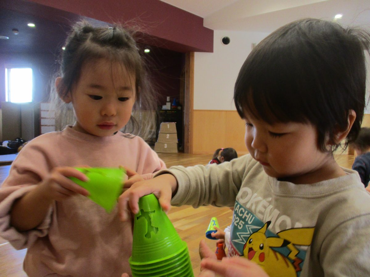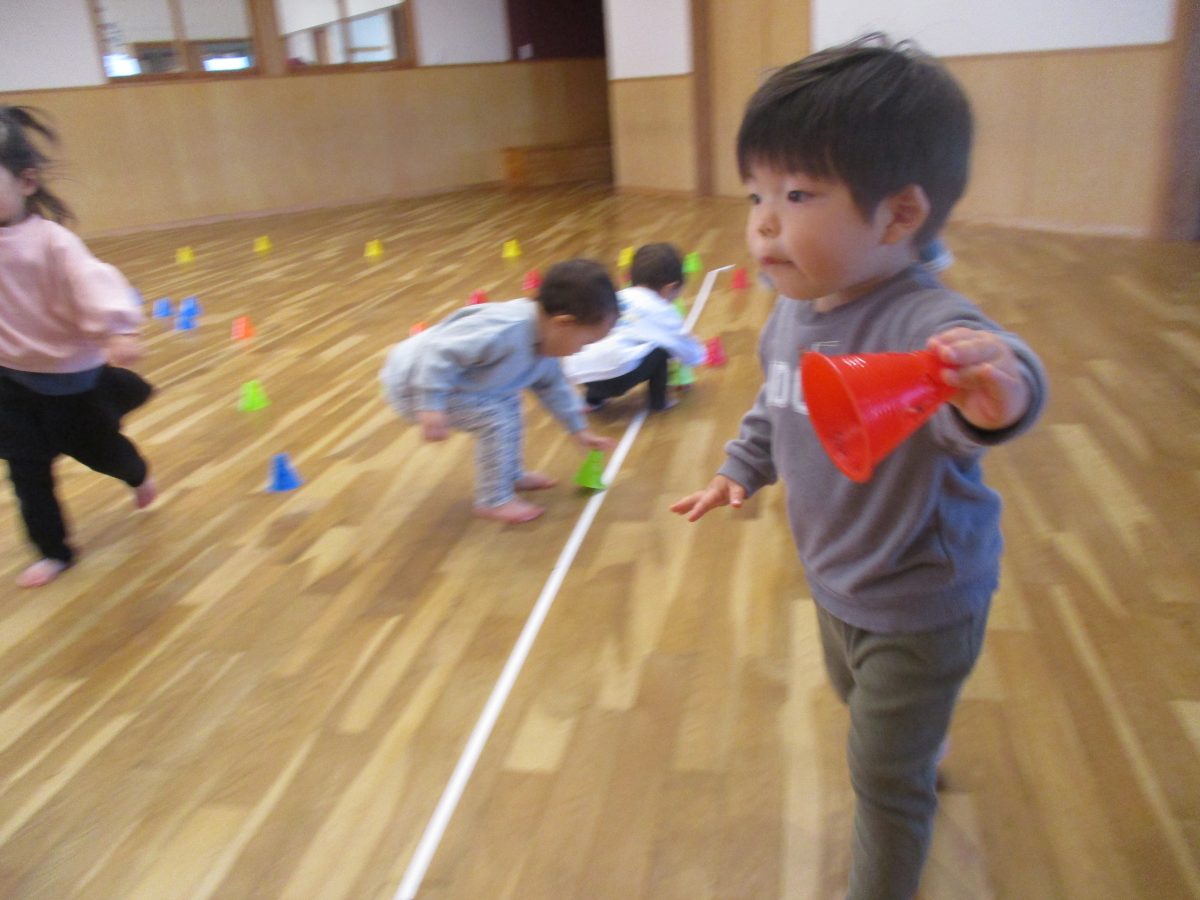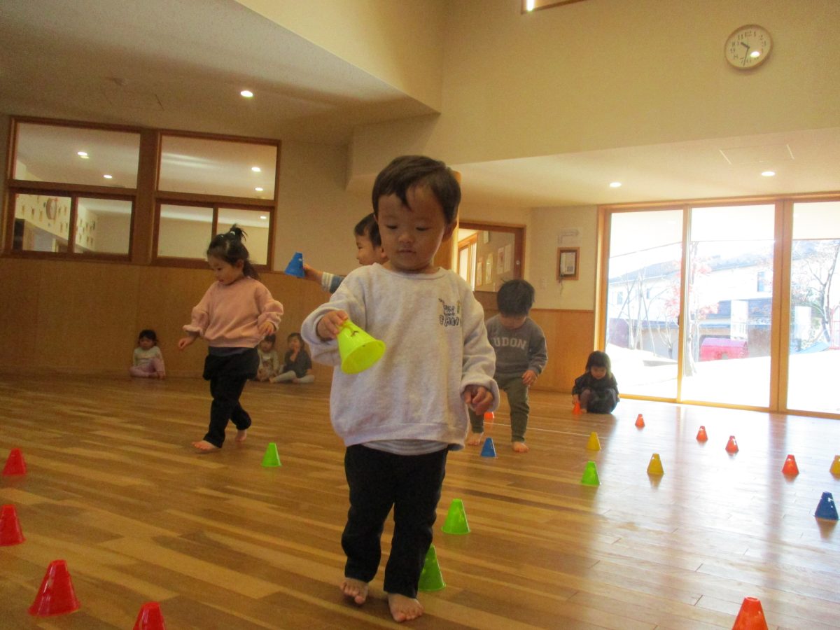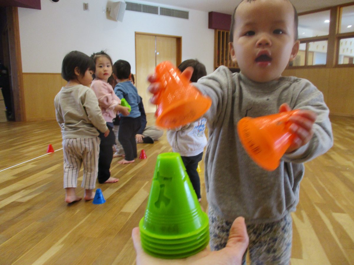 保育者の言った色のコーンを持ってくるのに必死です🤭