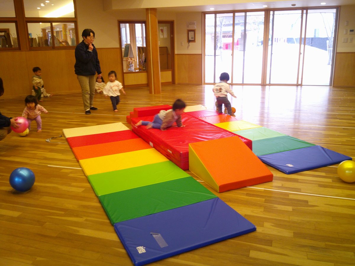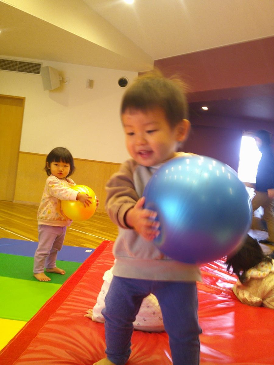 ホールで大型マットやボールでたくさん身体を動かしました🎵