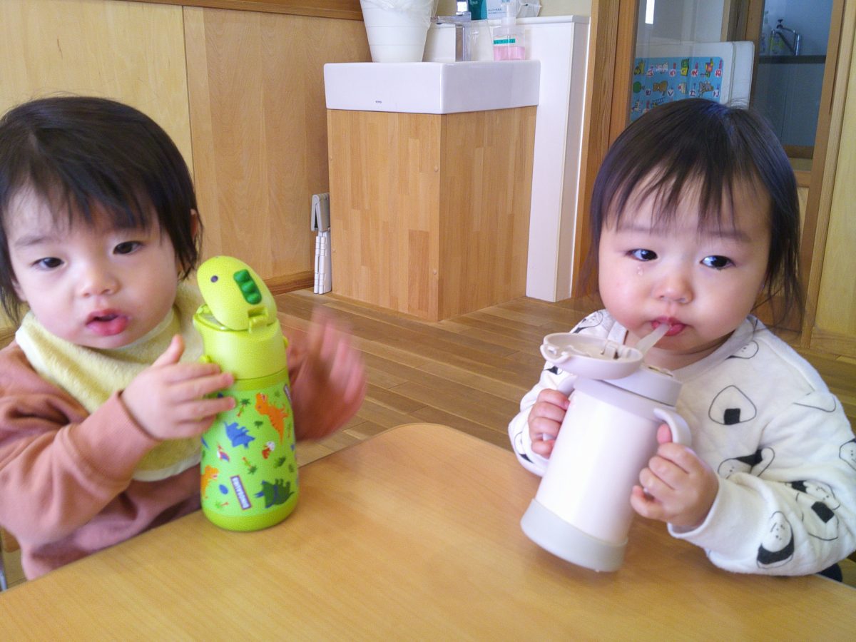 午前のおやつの後の水分補給タイム⏰