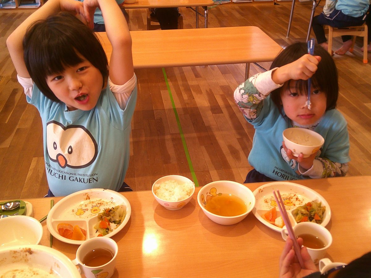 練習を頑張ったあとの給食美味しいね😋💕