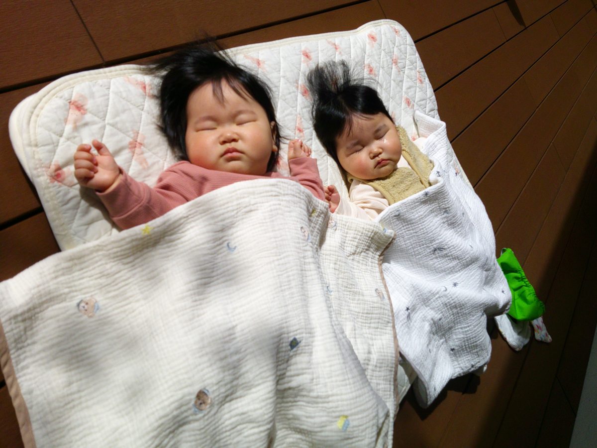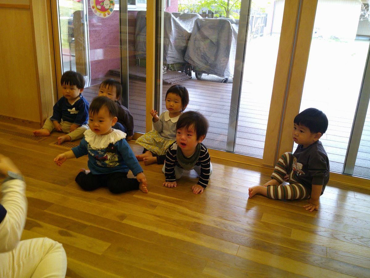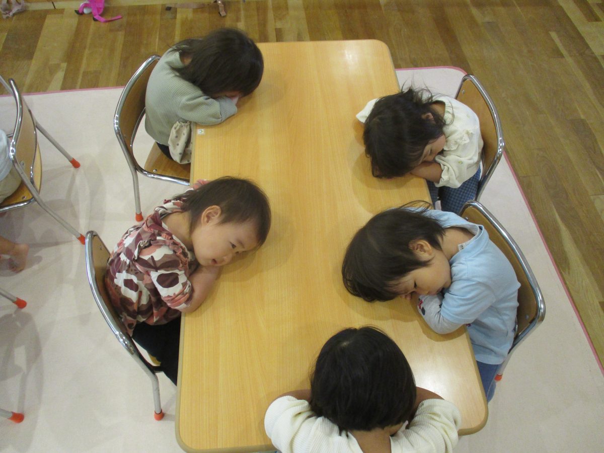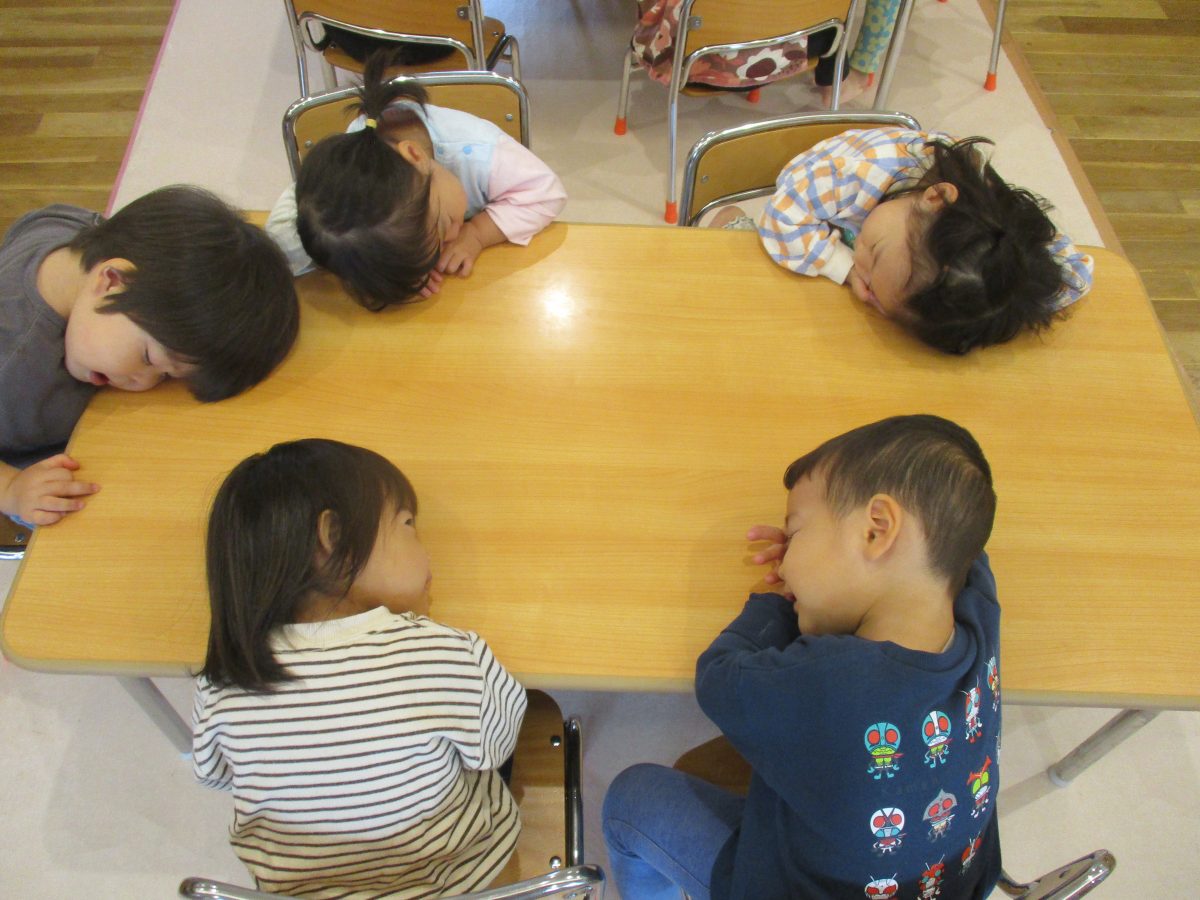 朝のお歌が始まるまでねんねして待っているうみ組さん💤