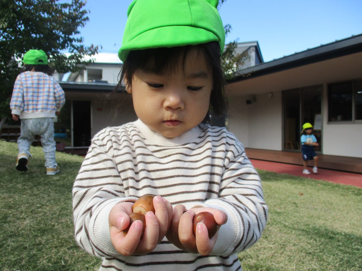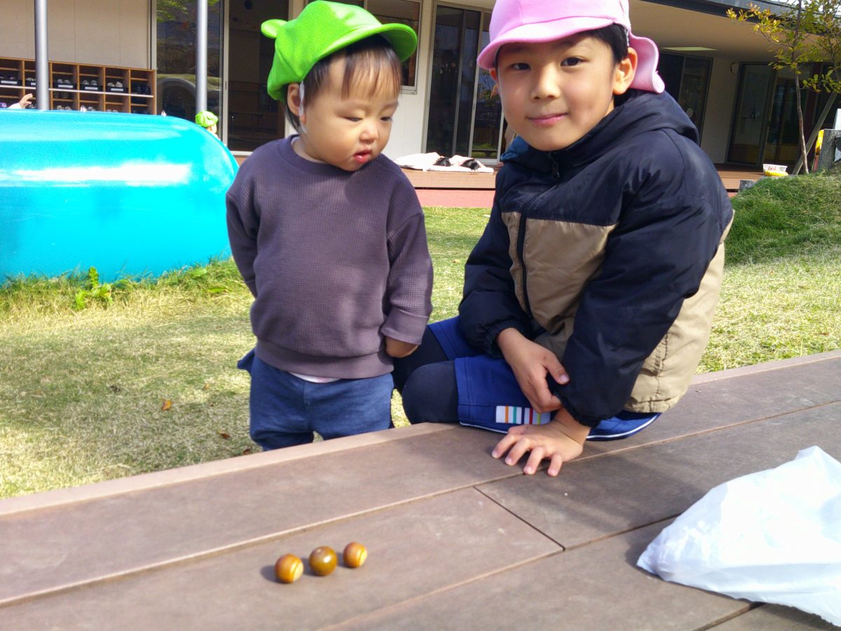 幼児部さんがどんぐりを見つけてだいち組さんにも見せてくれました✨
