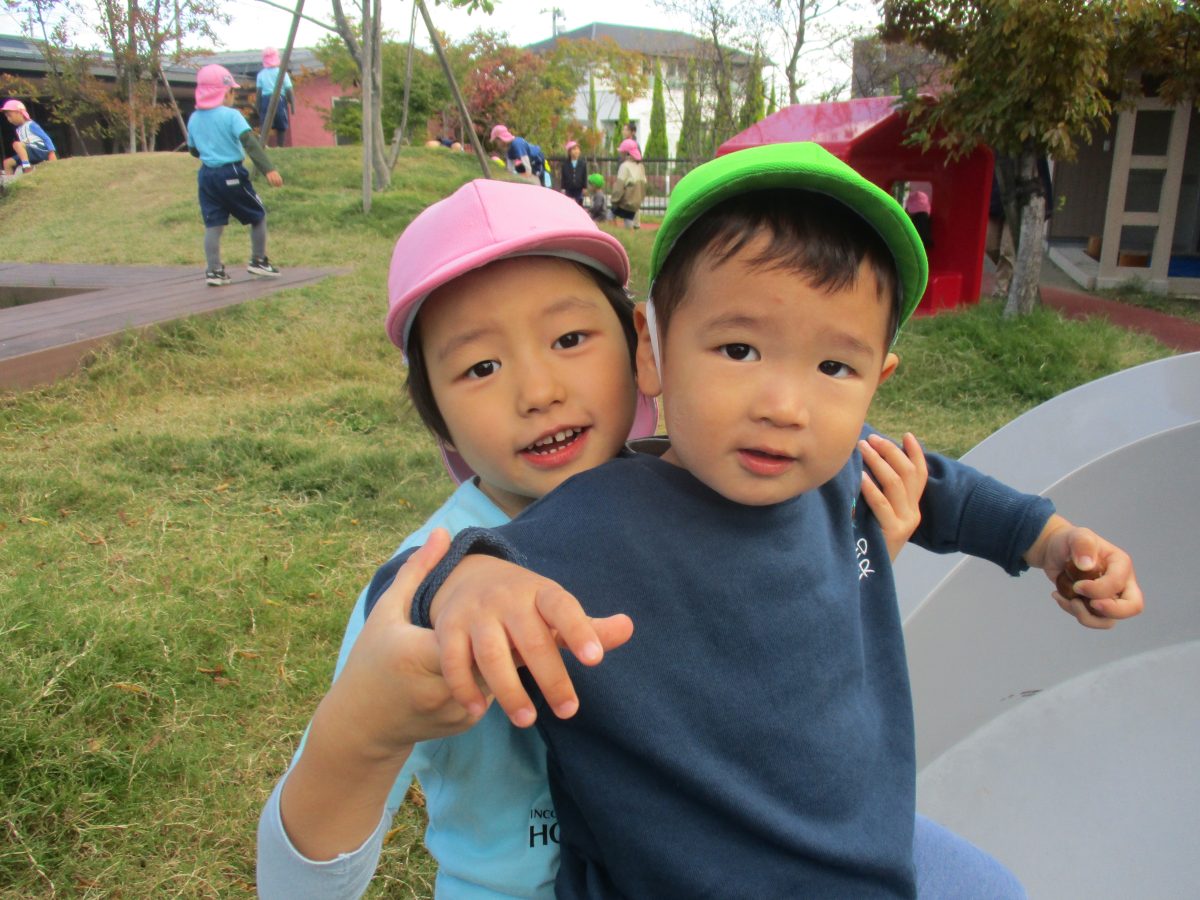 どんぐり拾いに夢中になったり、保育部さんと遊んだりして楽しかったね😆💕