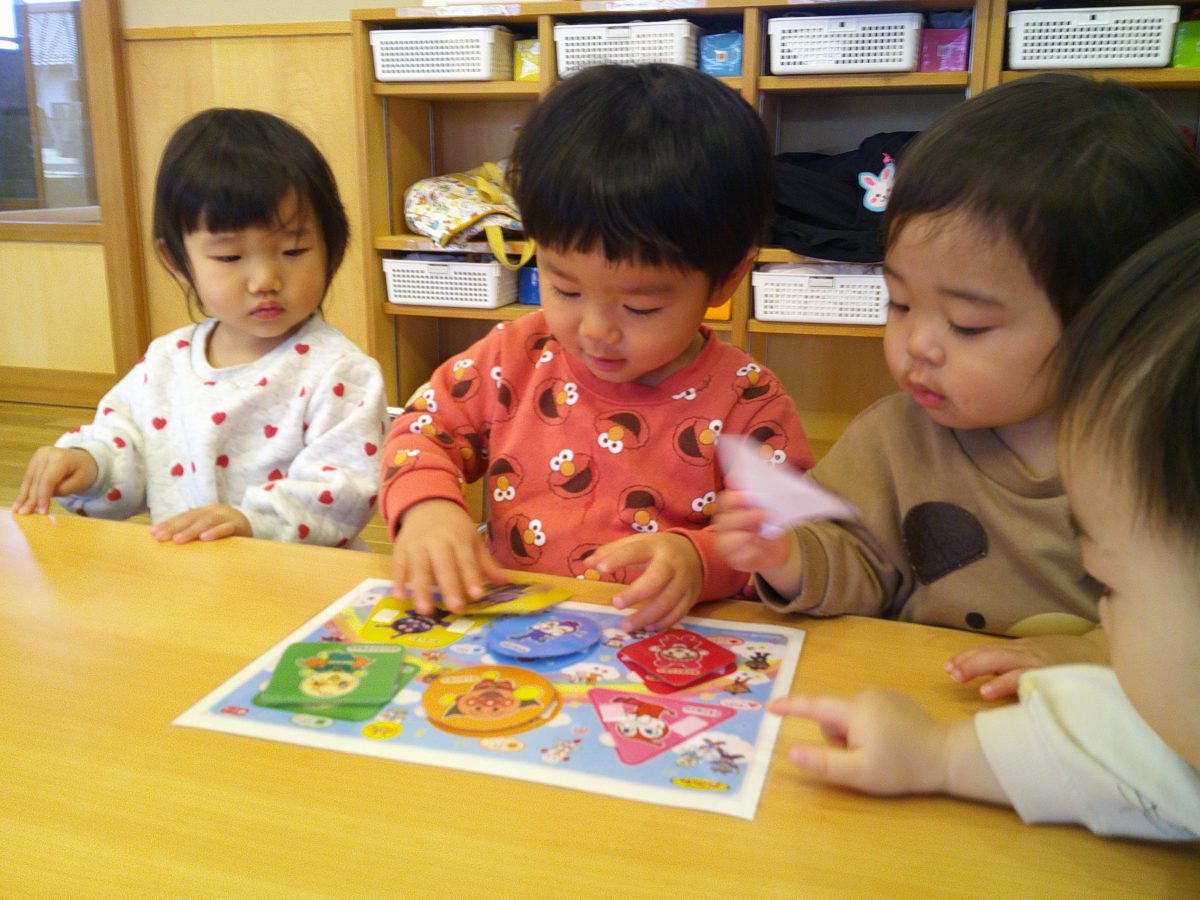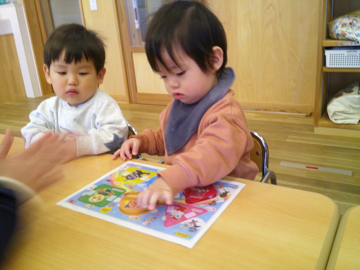 朝の会の様子です😊アンパンマンに夢中💕