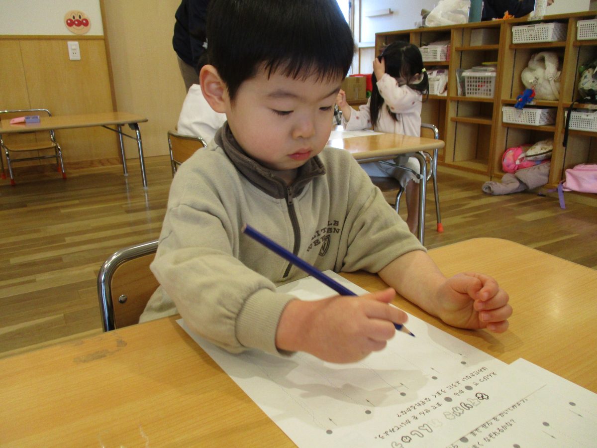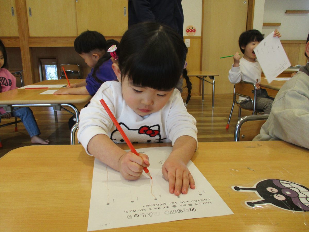 今日は保育参観がありました!鉛筆持ちで線なぞりの様子です✏️