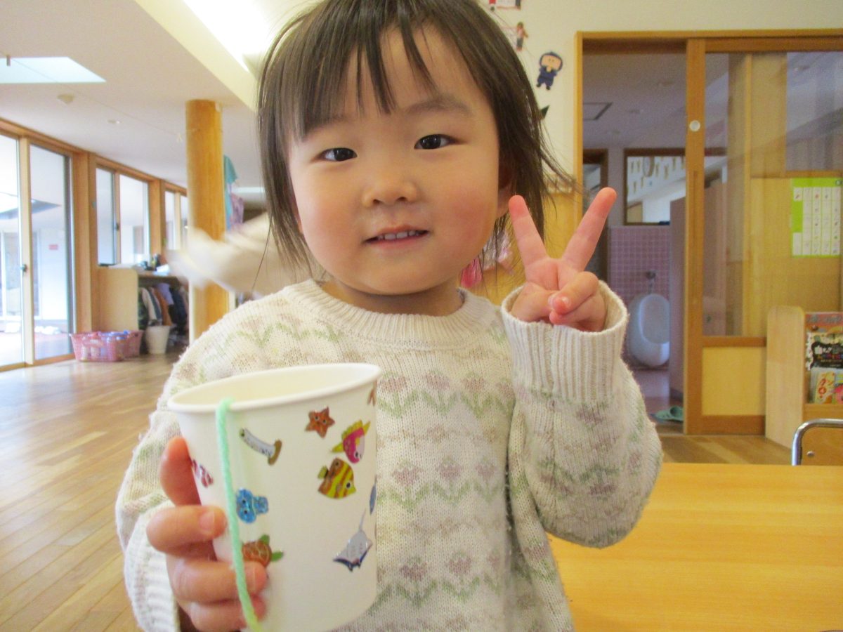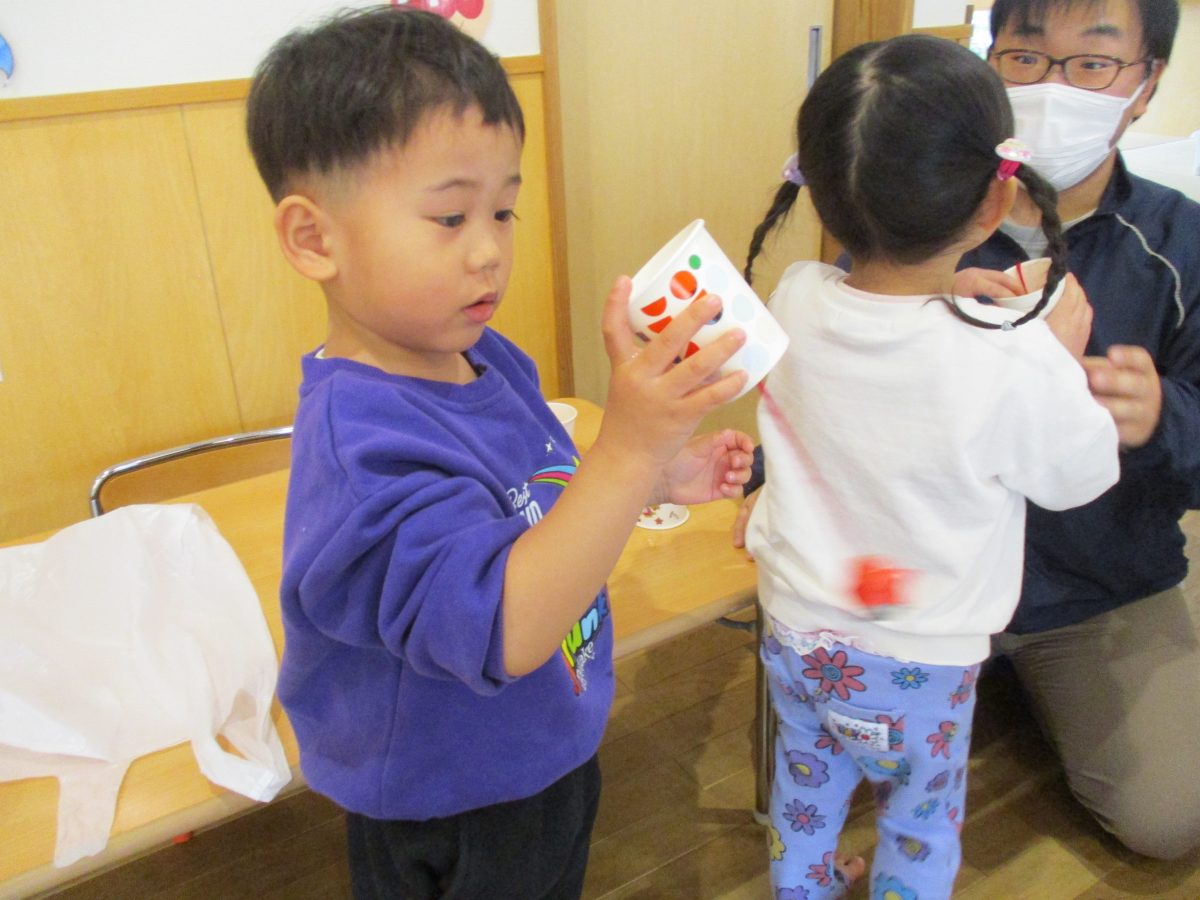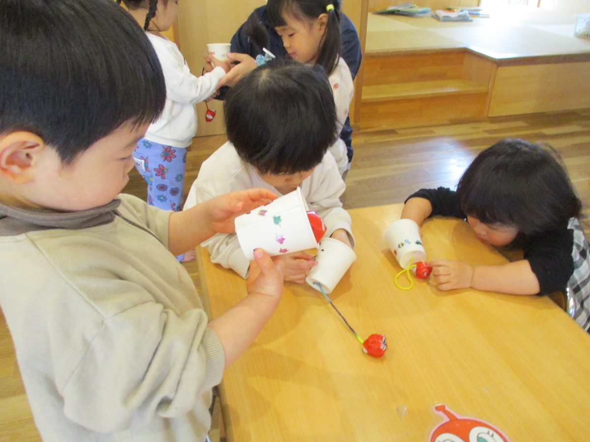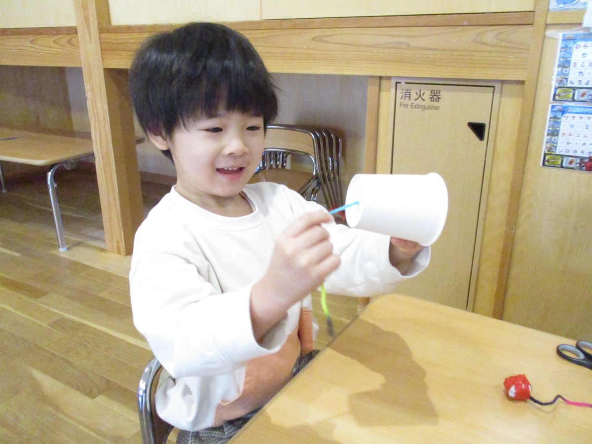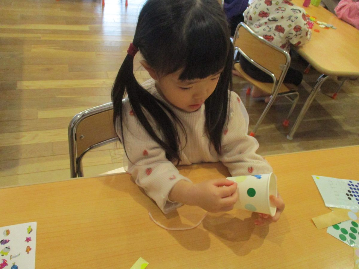 今日は伝承遊びの会で気になっていたけん玉を作って遊びました!自分で紐の色を選んだり、シールでデコレーションをしました🌟