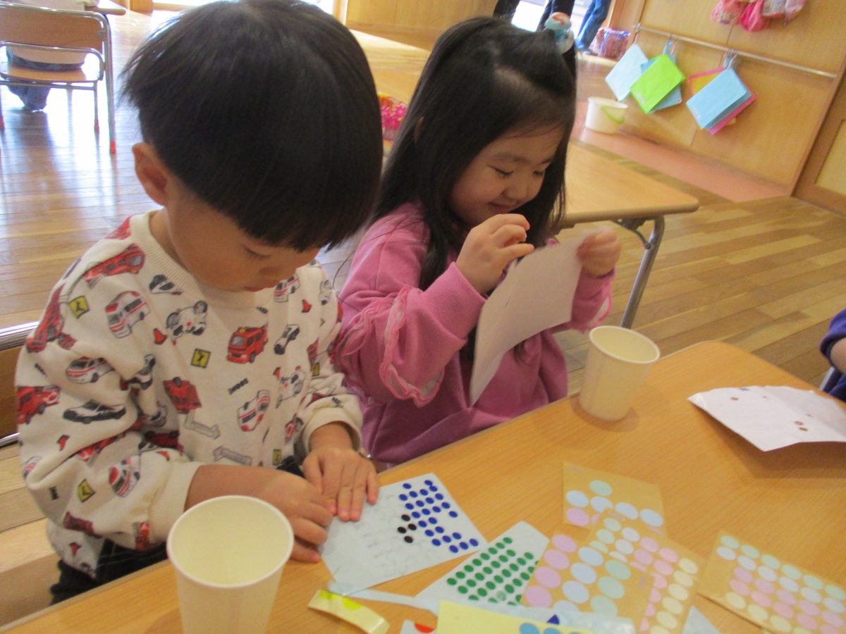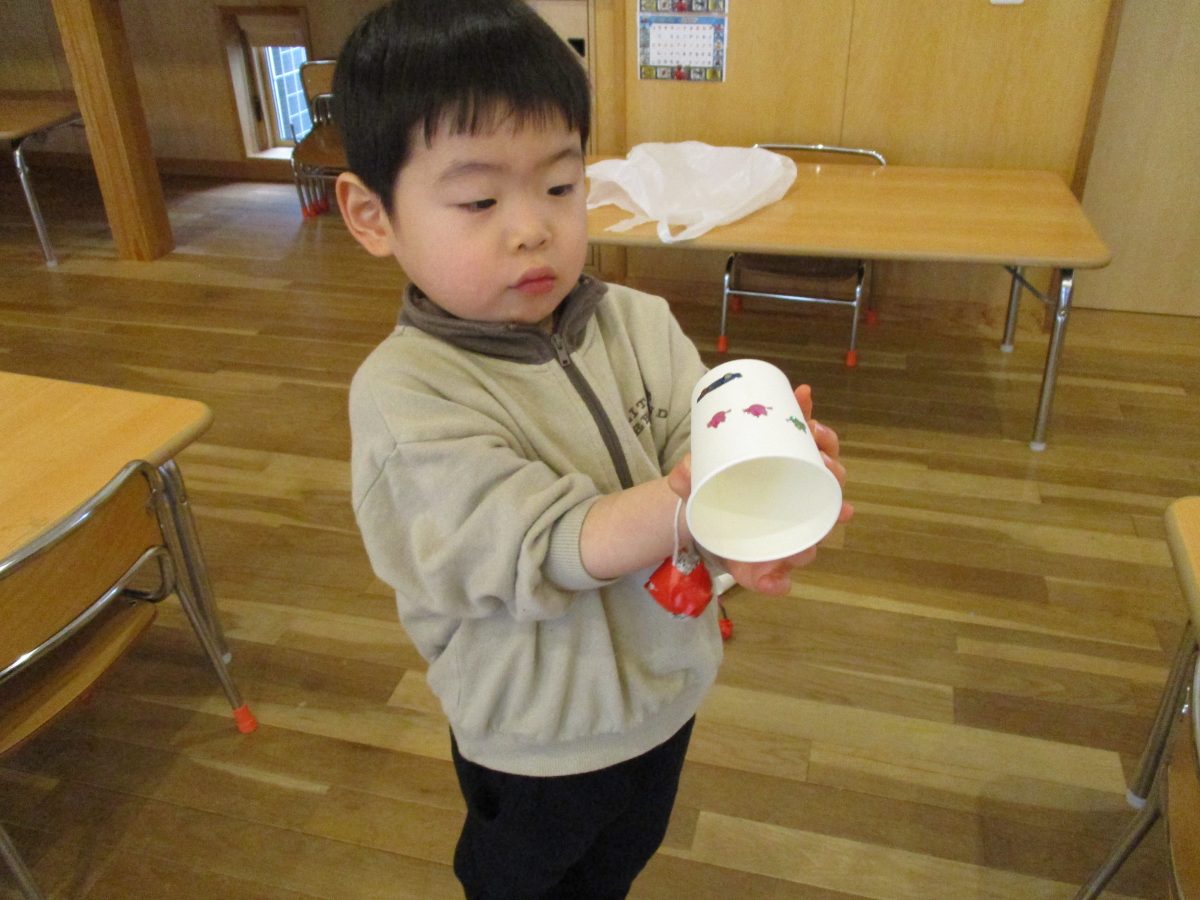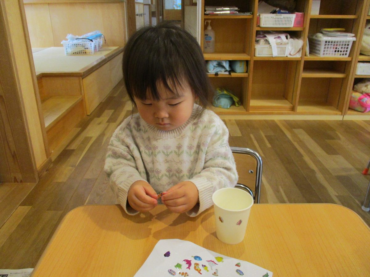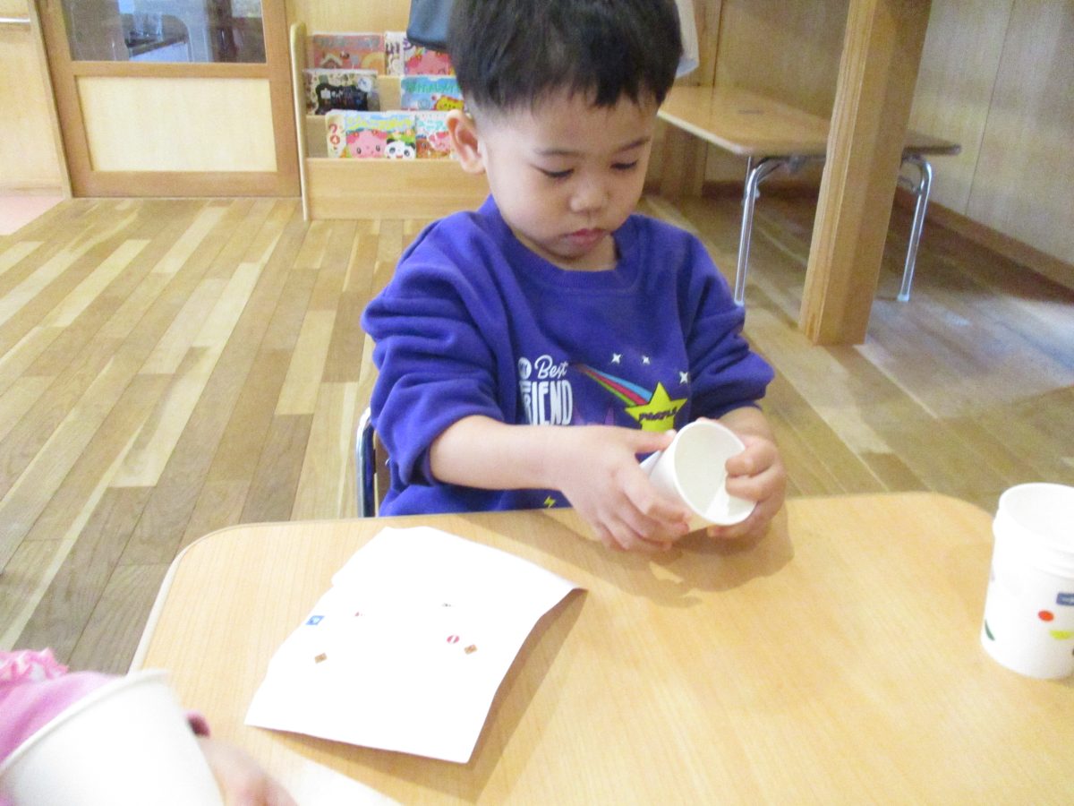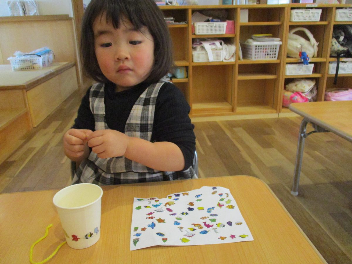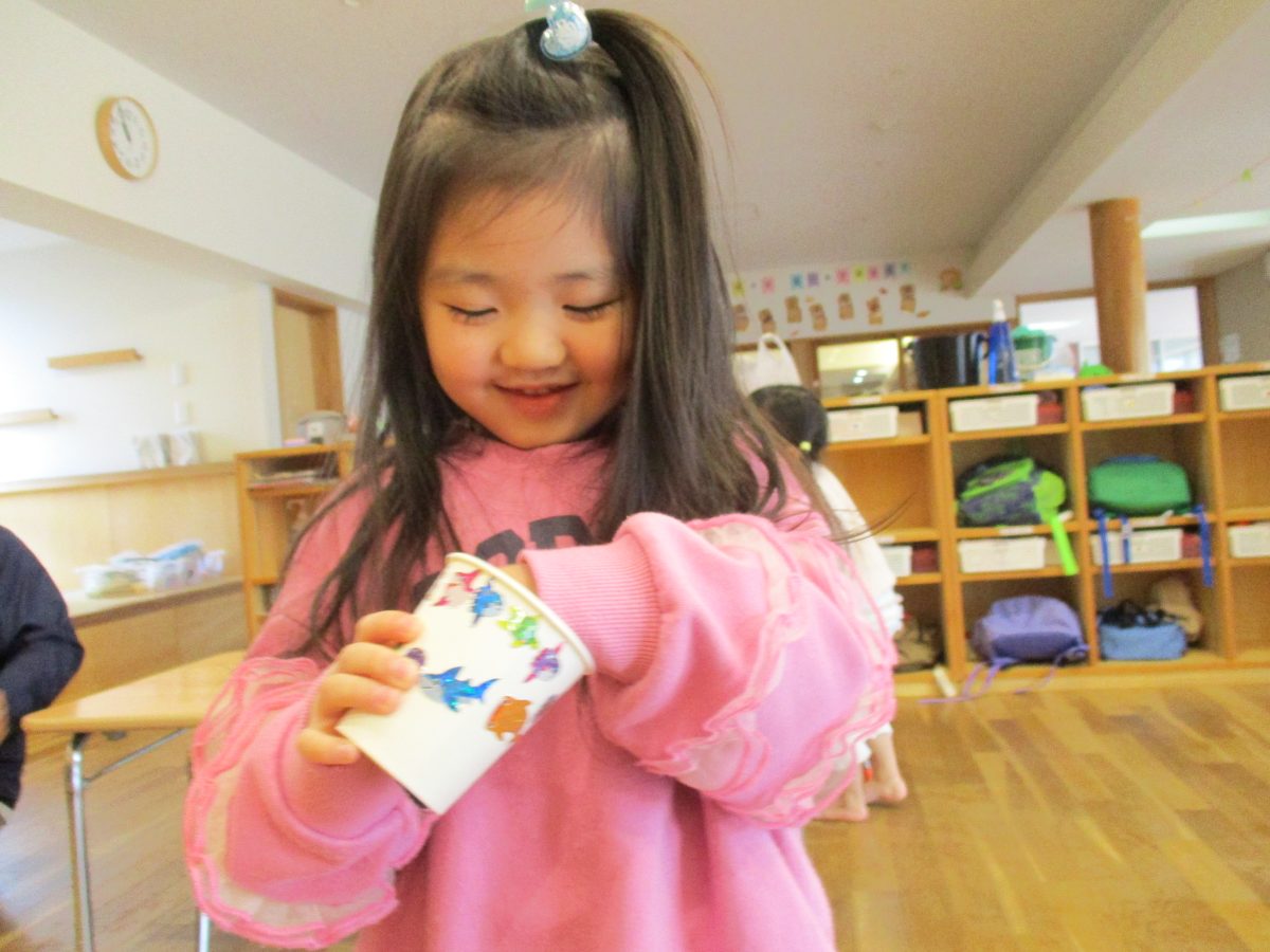 今日は伝承遊びの会で気になっていたけん玉を作って遊びました!自分で紐の色を選んだり、シールでデコレーションをしました🌟