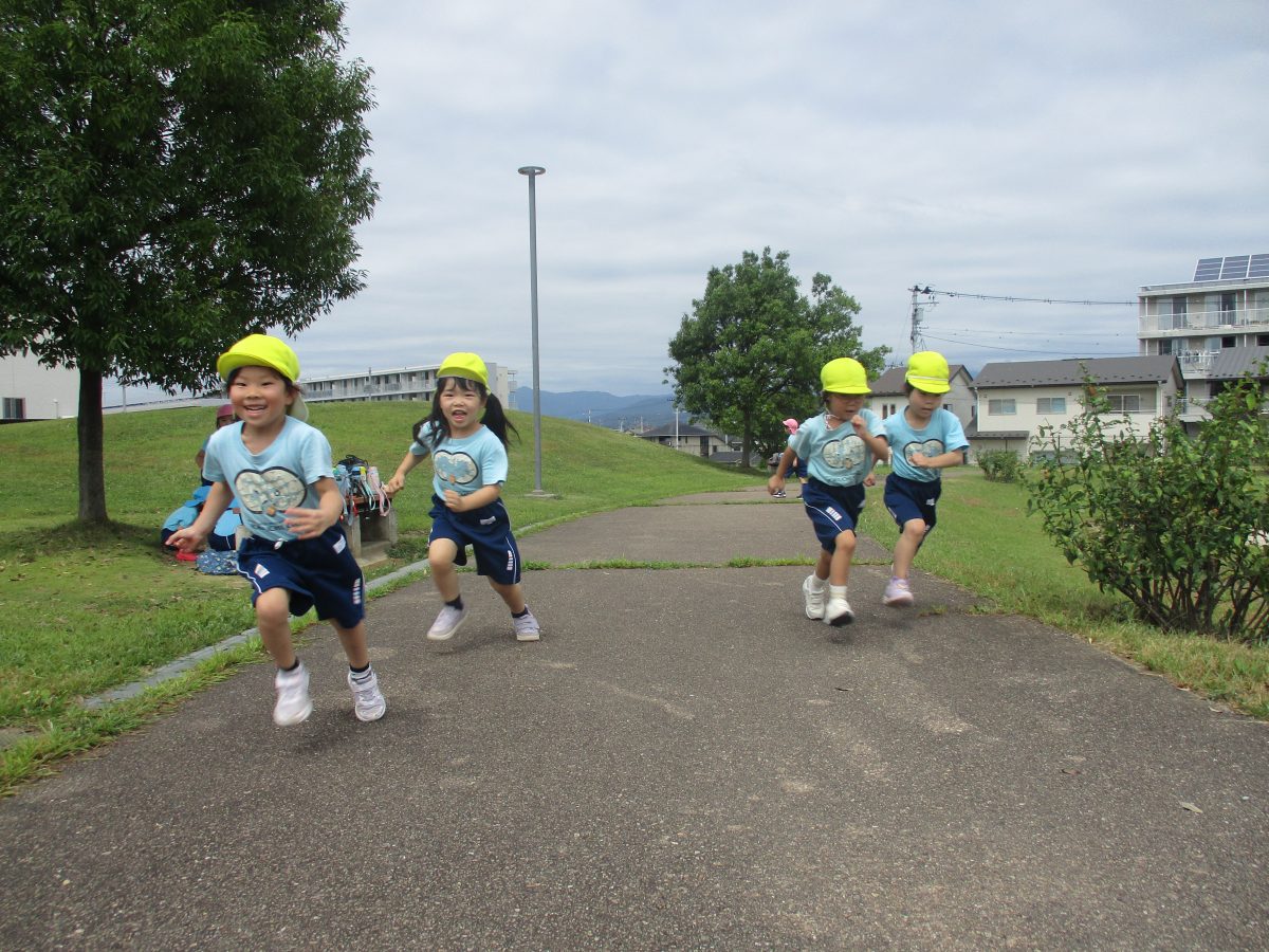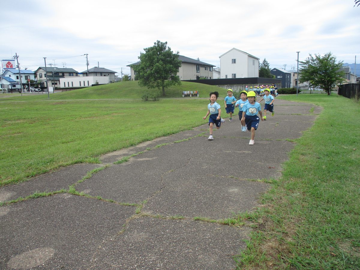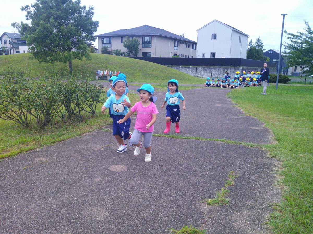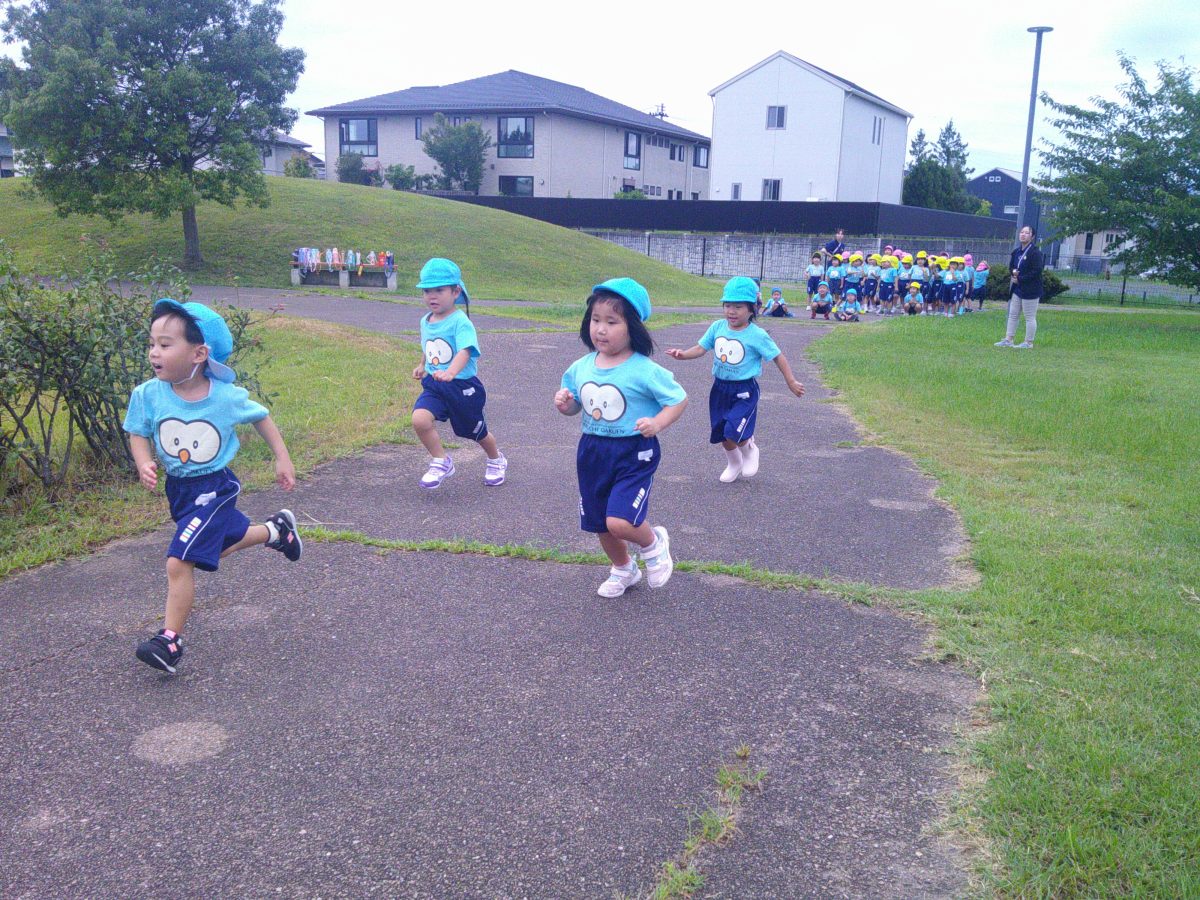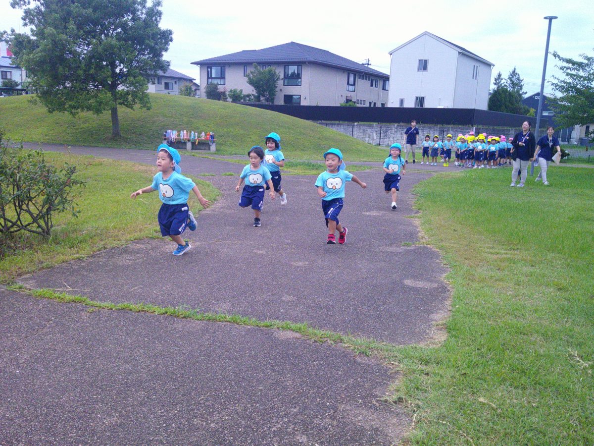 今日は、幼児部みんなで西公園まで行きかけっこの練習をしました👏初めて長い距離を走りましたが最後まで本気で走る子どもたち!