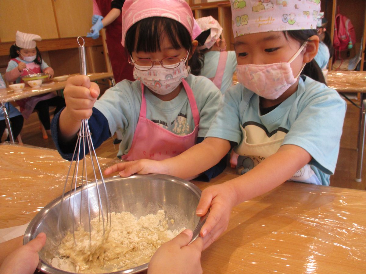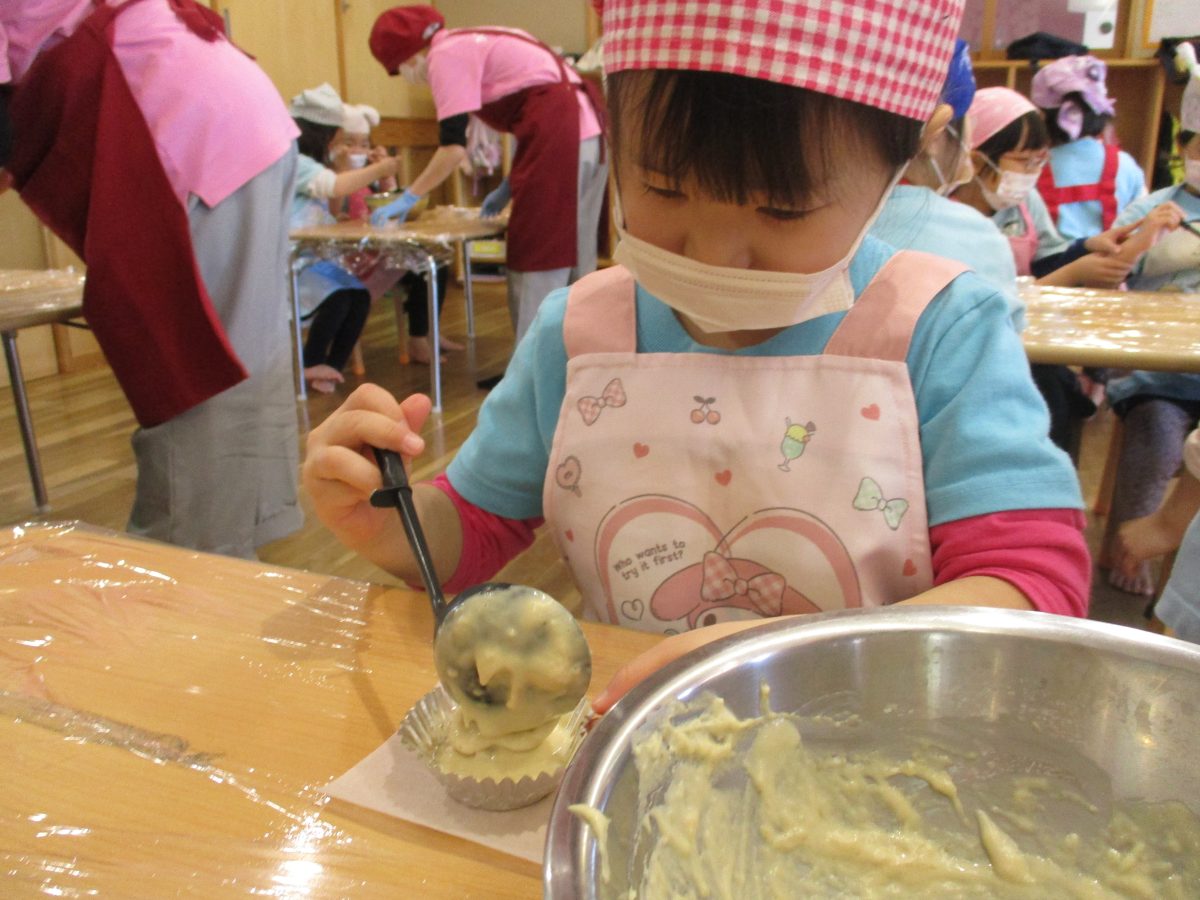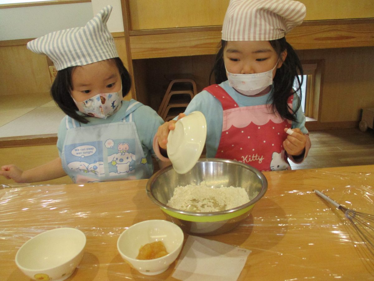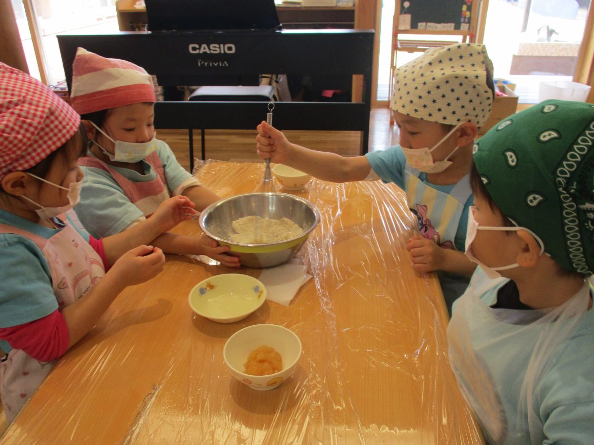 今日は、食育活動『りんごの蒸しパン作り』がありました🍎