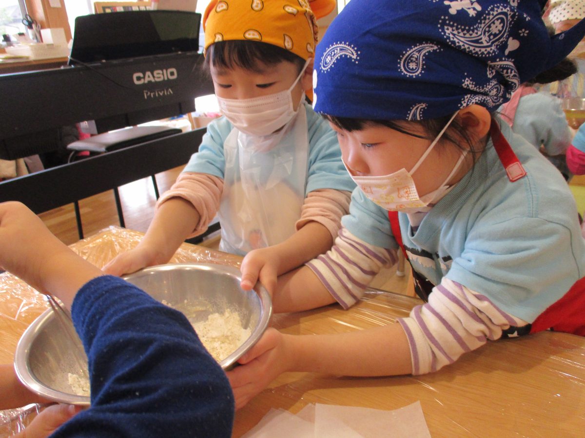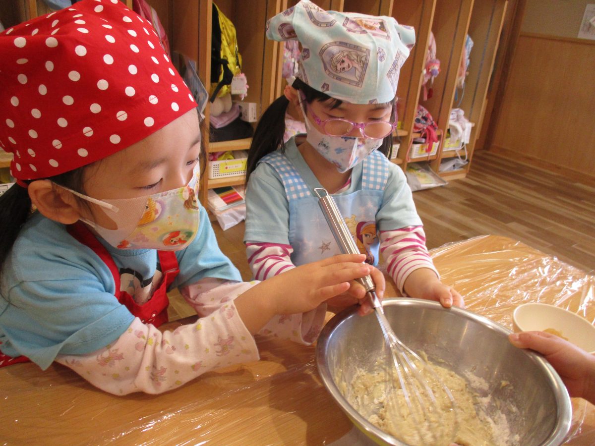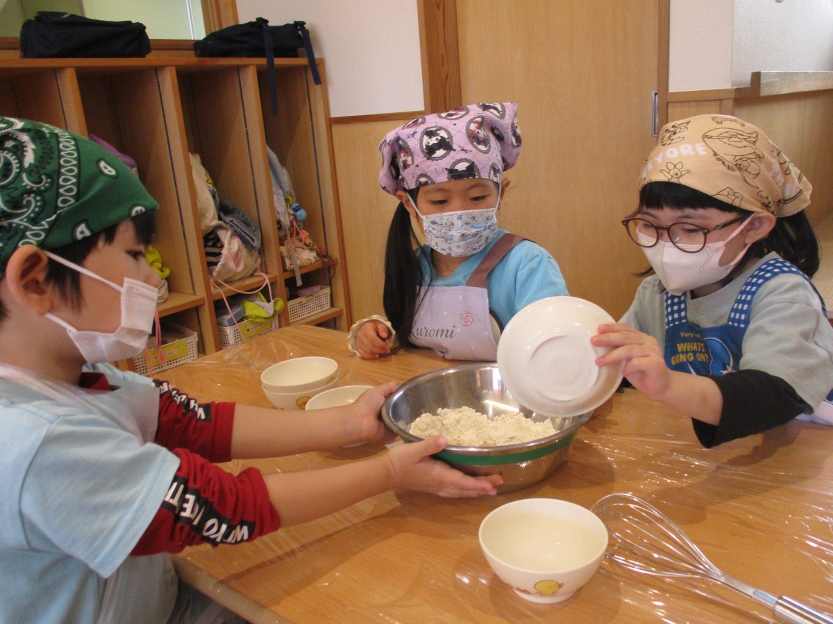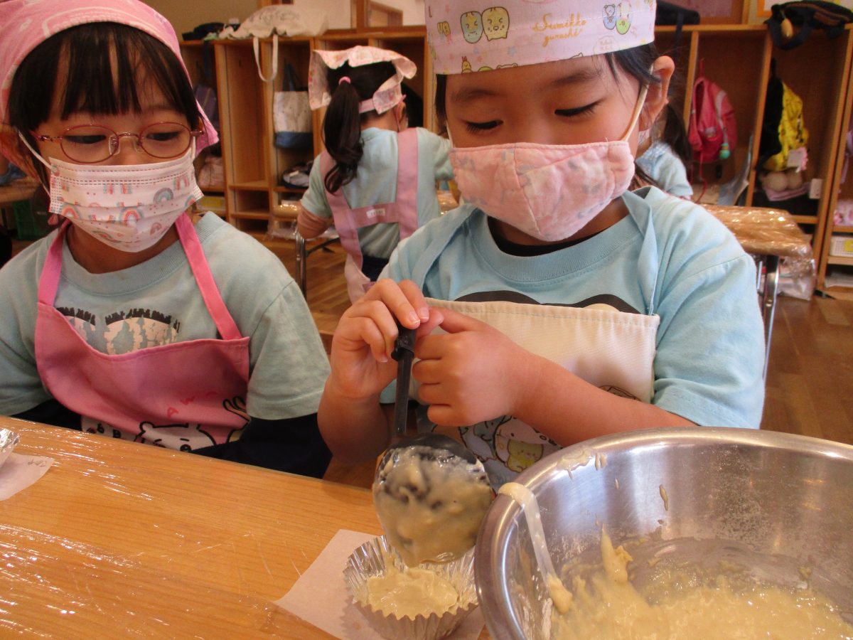 今日は、食育活動『りんごの蒸しパン作り』がありました🍎