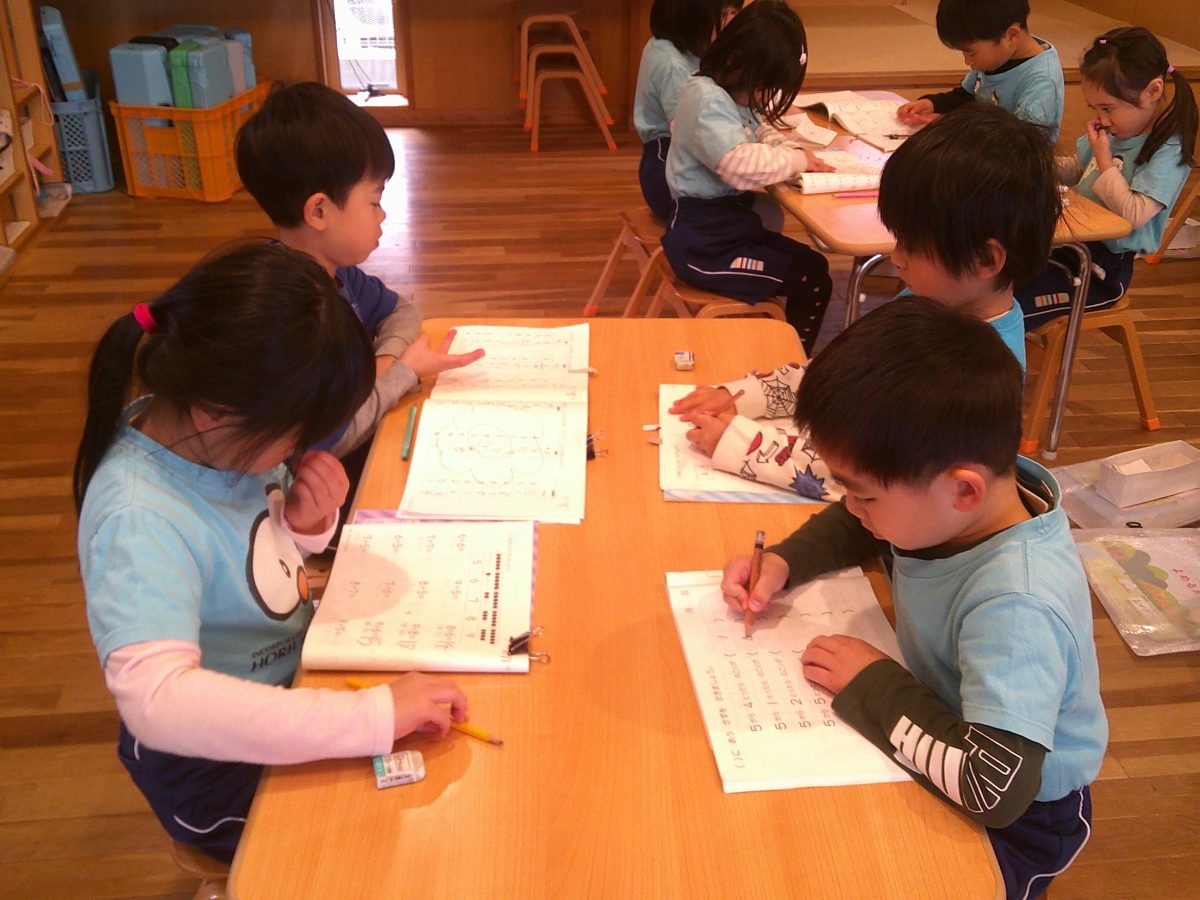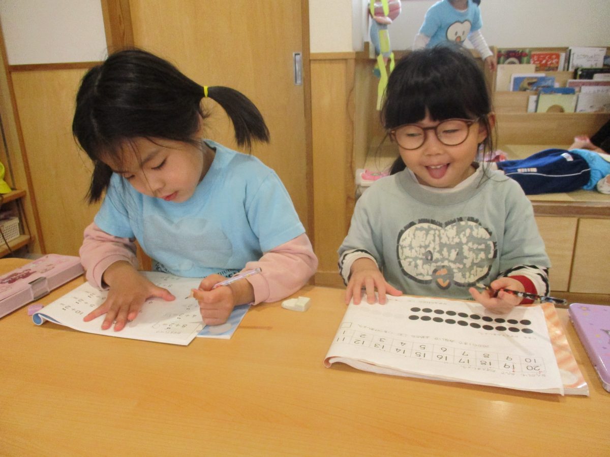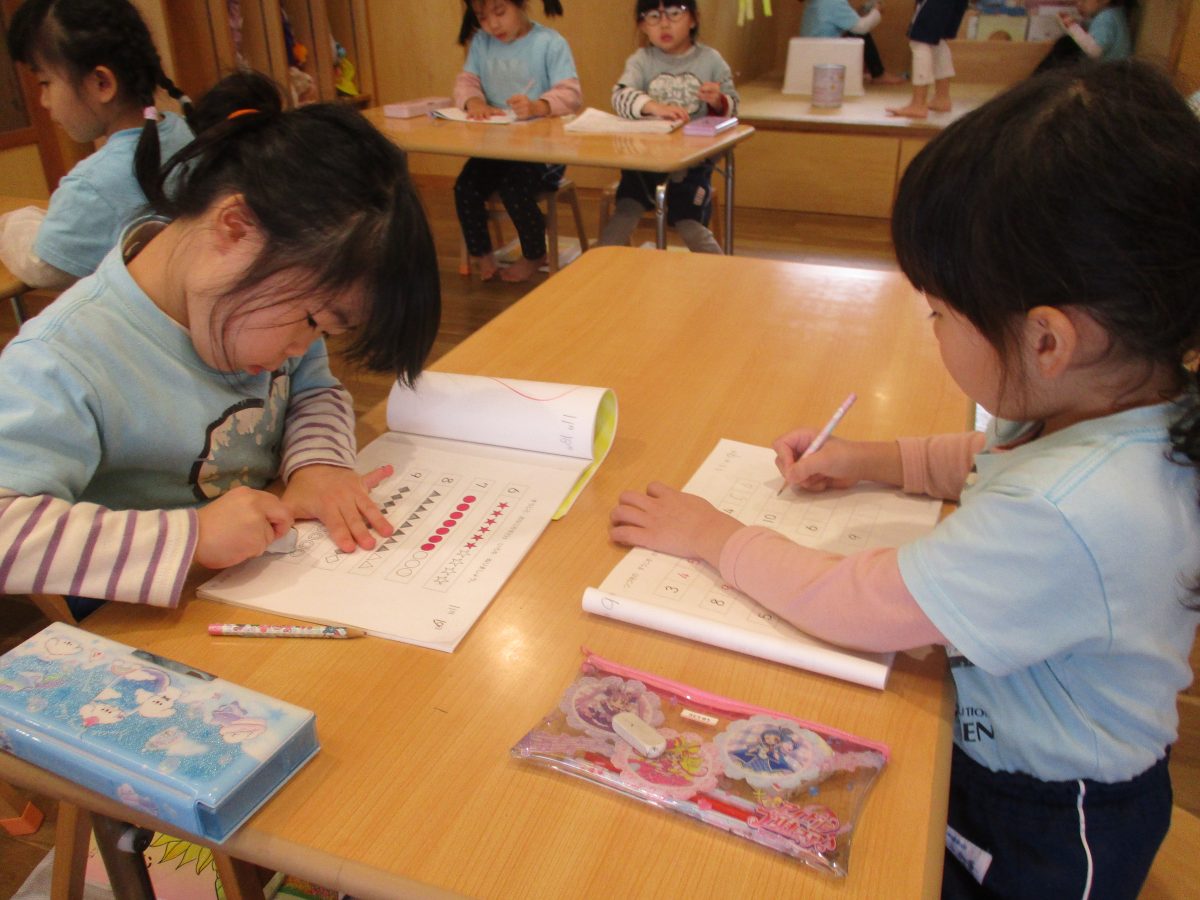 自由遊びの際は、玩具で遊ぶお友だちもいたりワークを行うお友だちもいました🤭