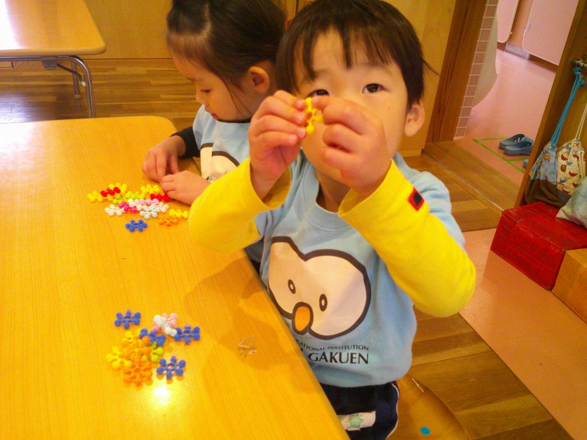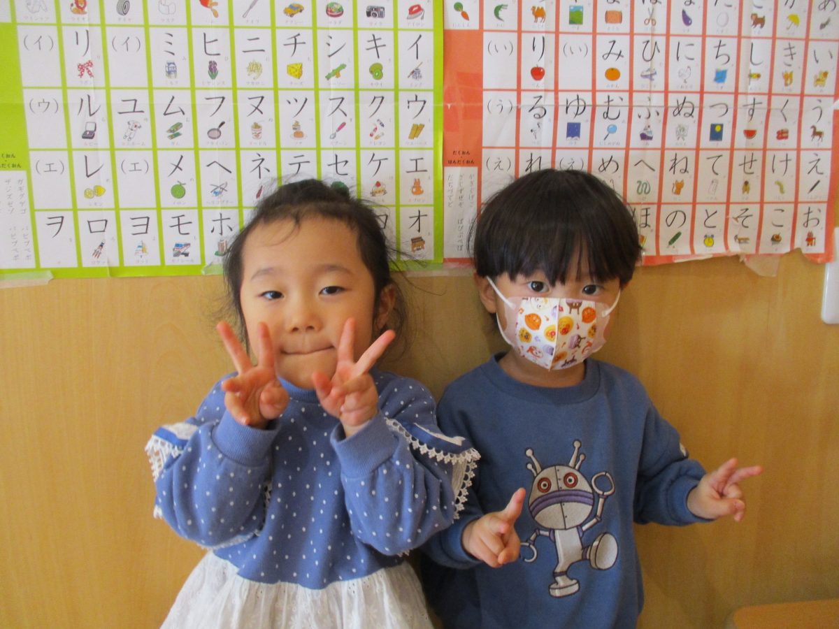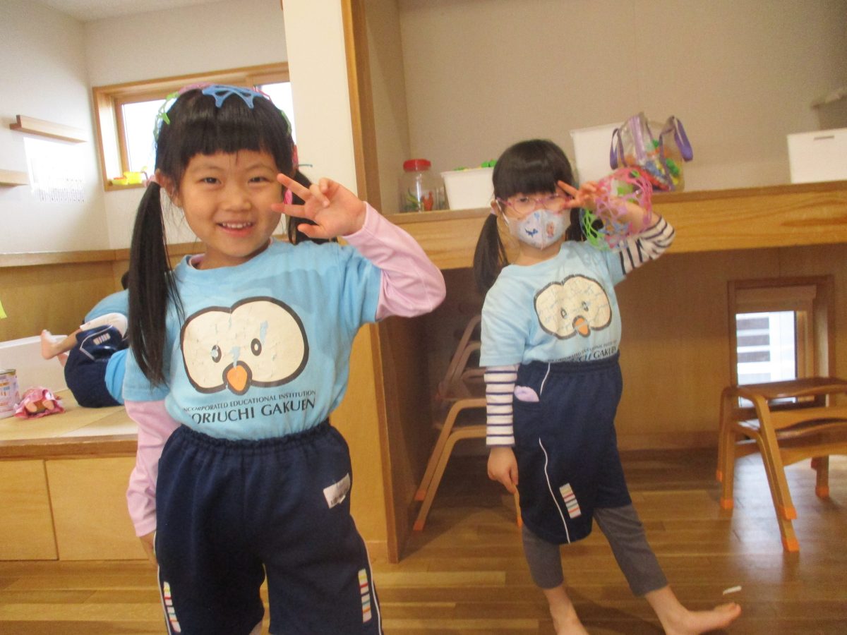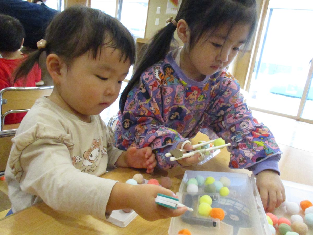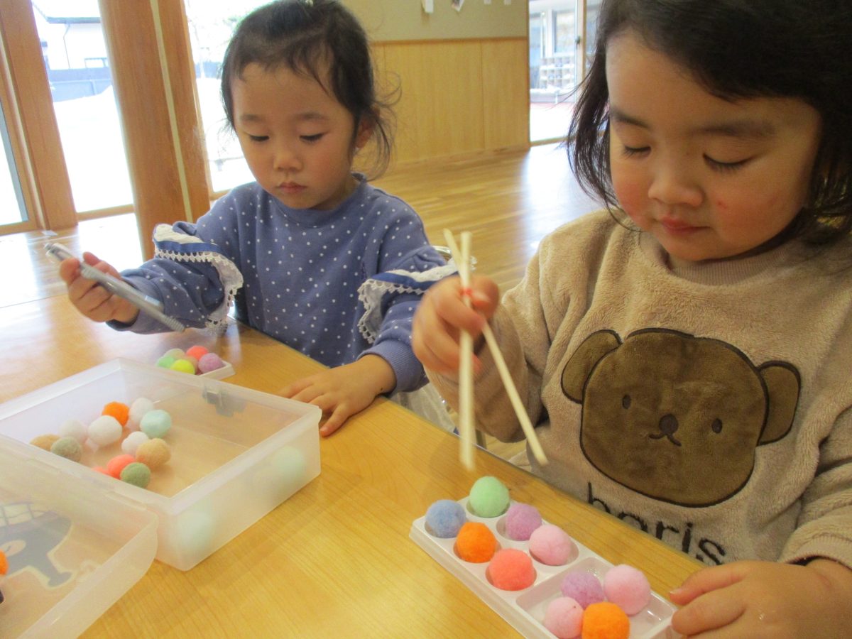 お外で元気に遊んだ後は、お給食の時間まで、お箸の練習です🥢正しい持ち方で持てるかな?🤭