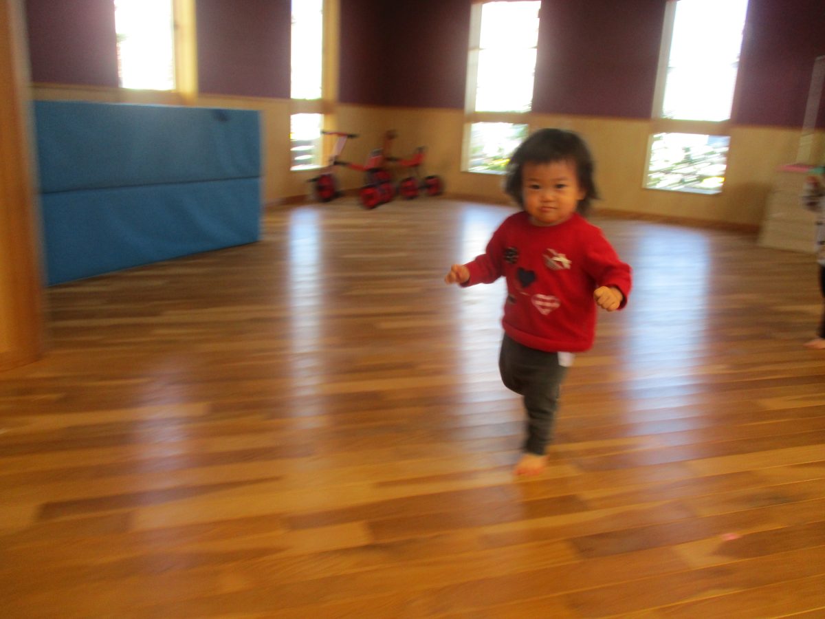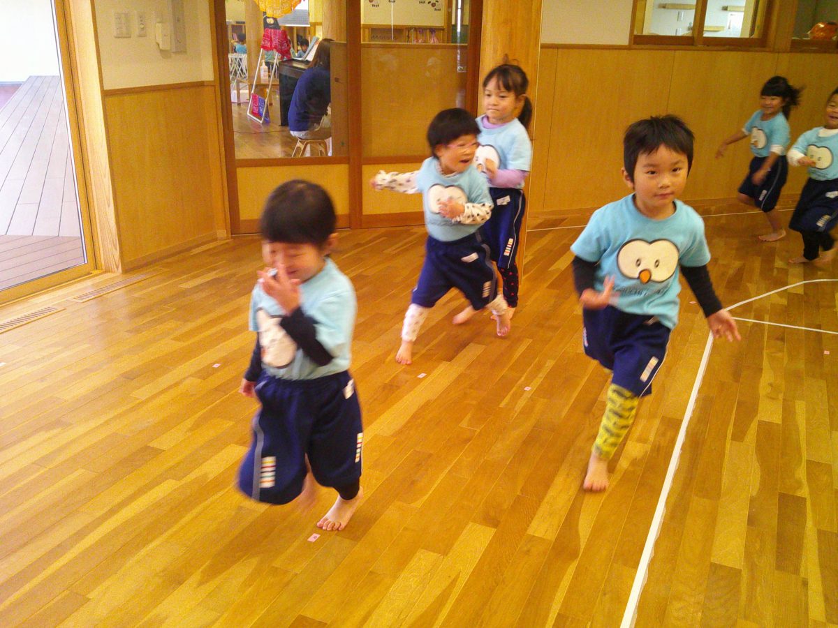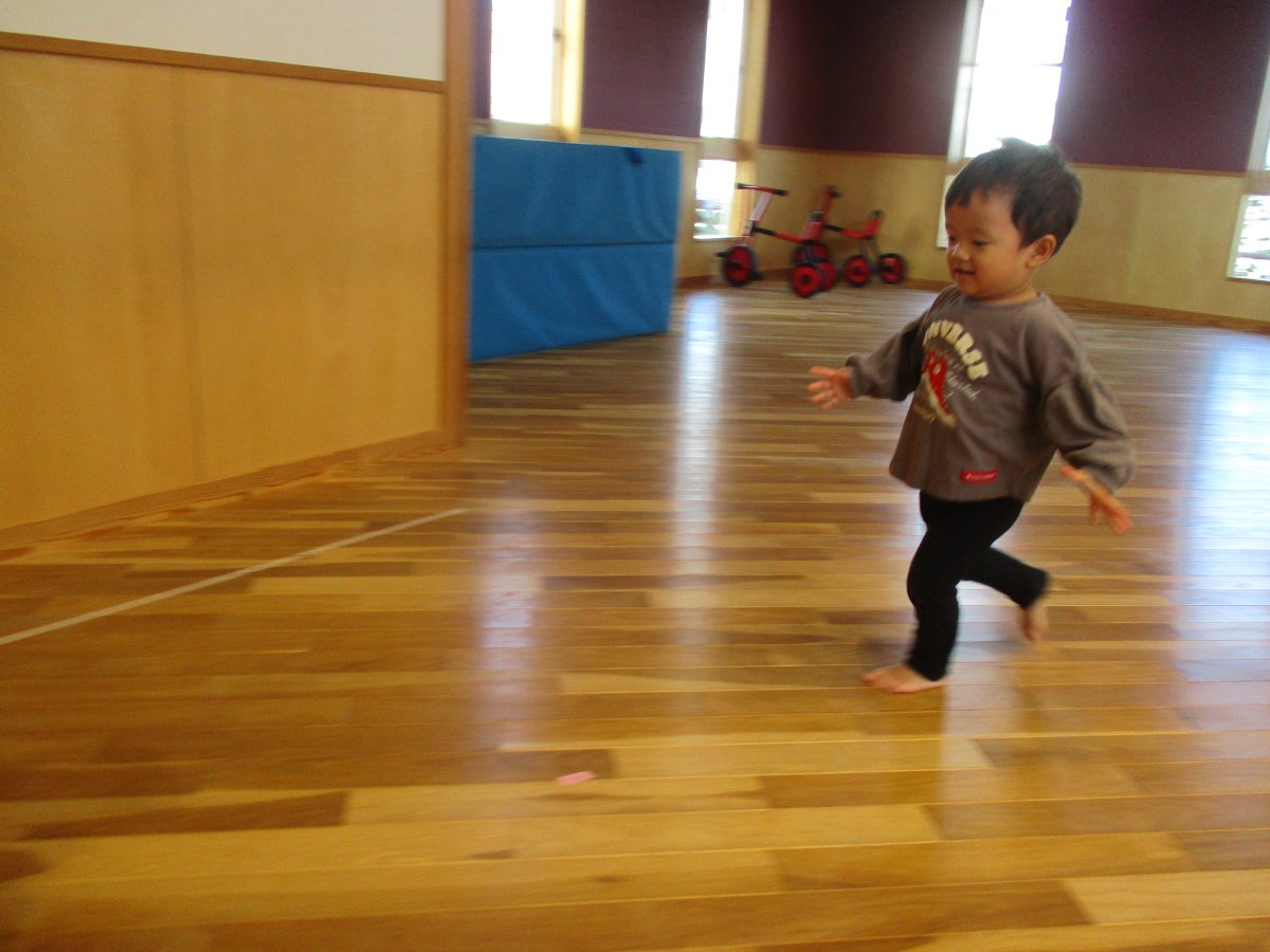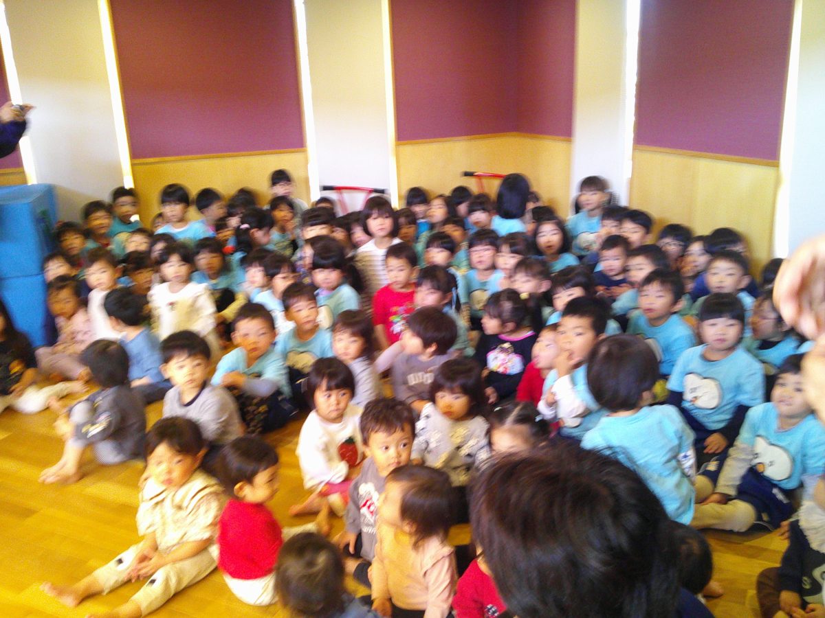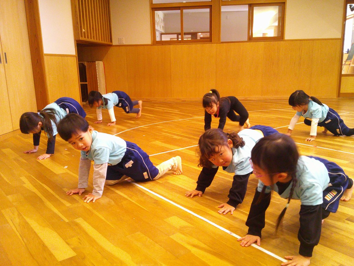 今日は、不審者対応の避難訓練がありました。ホールでジッと待ちます。