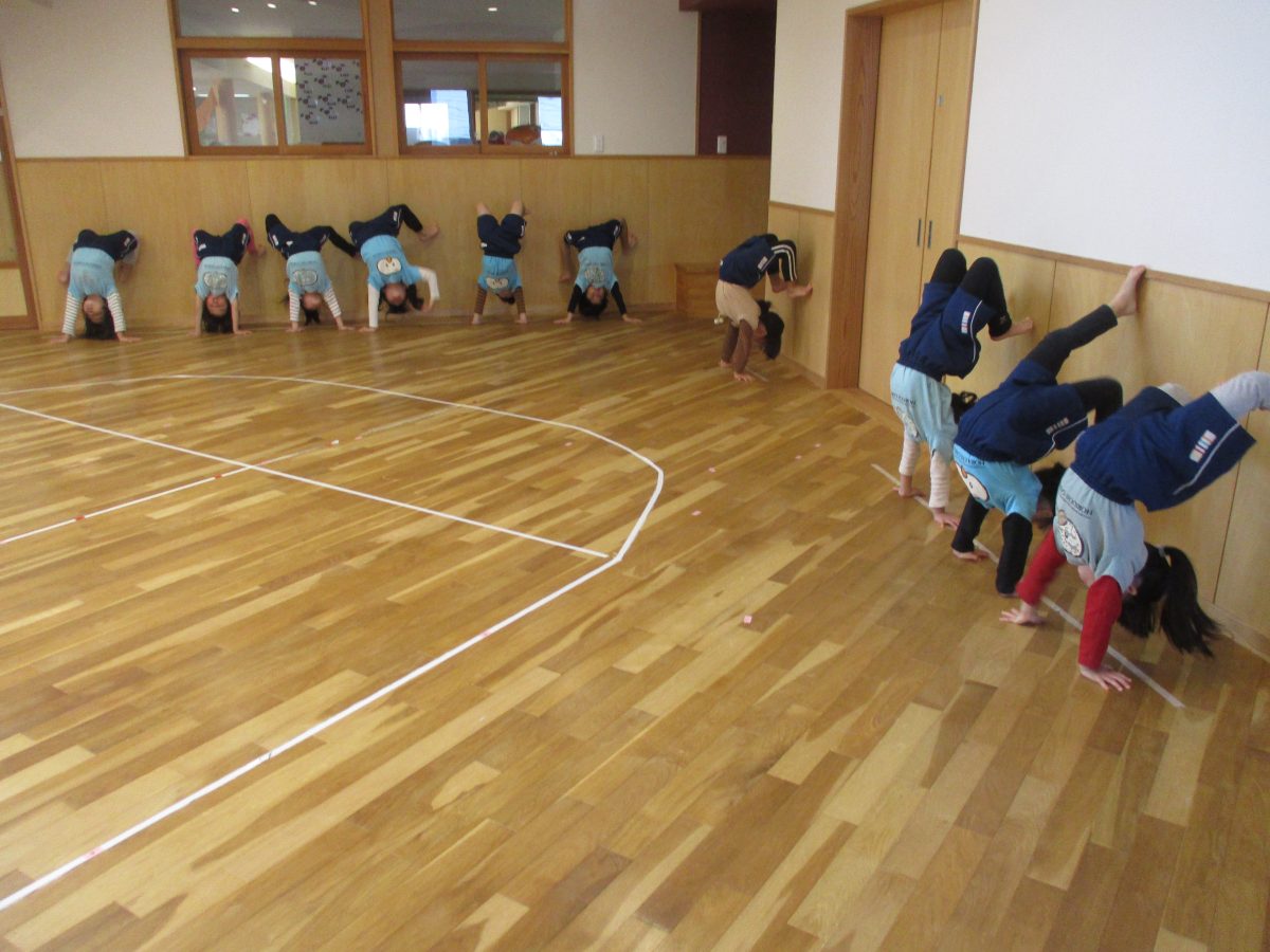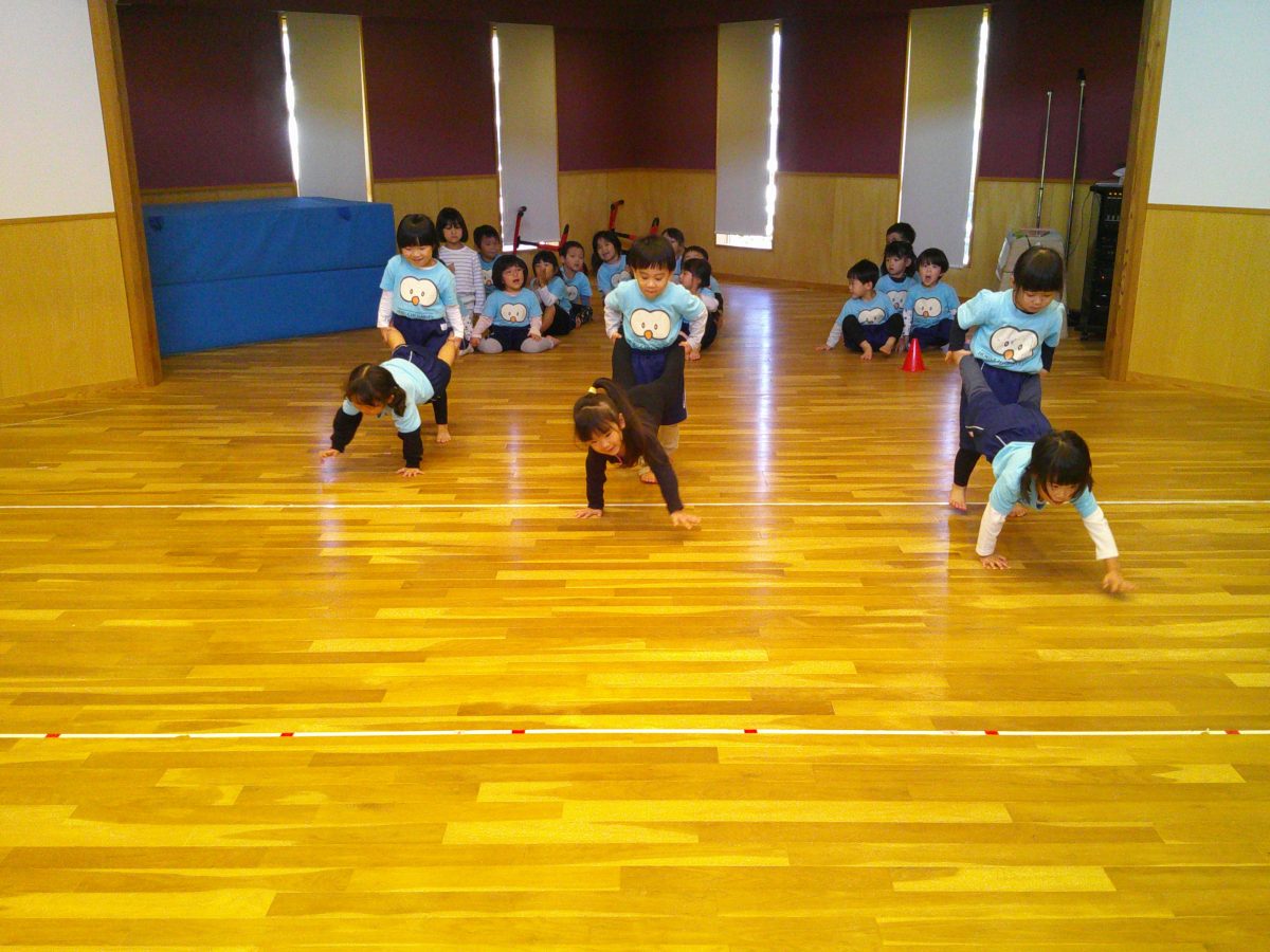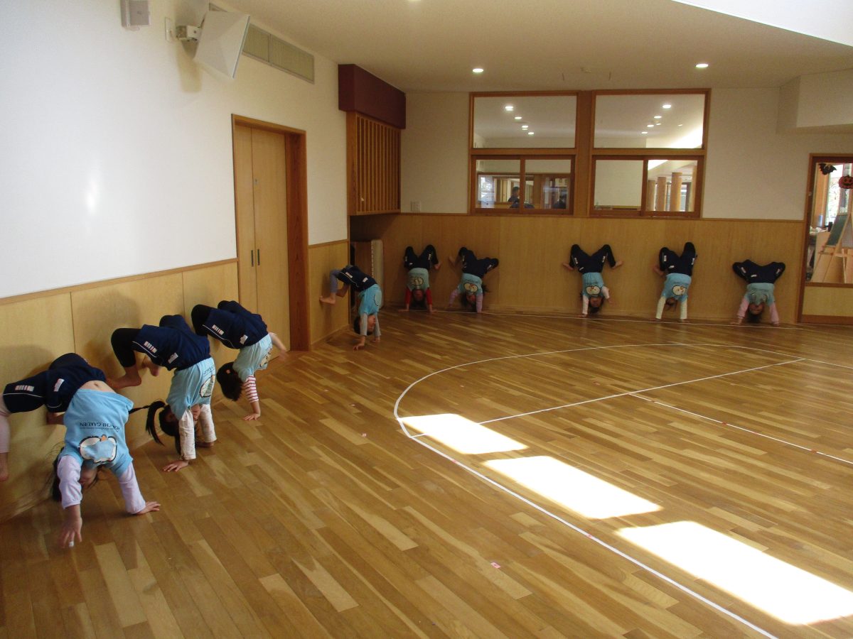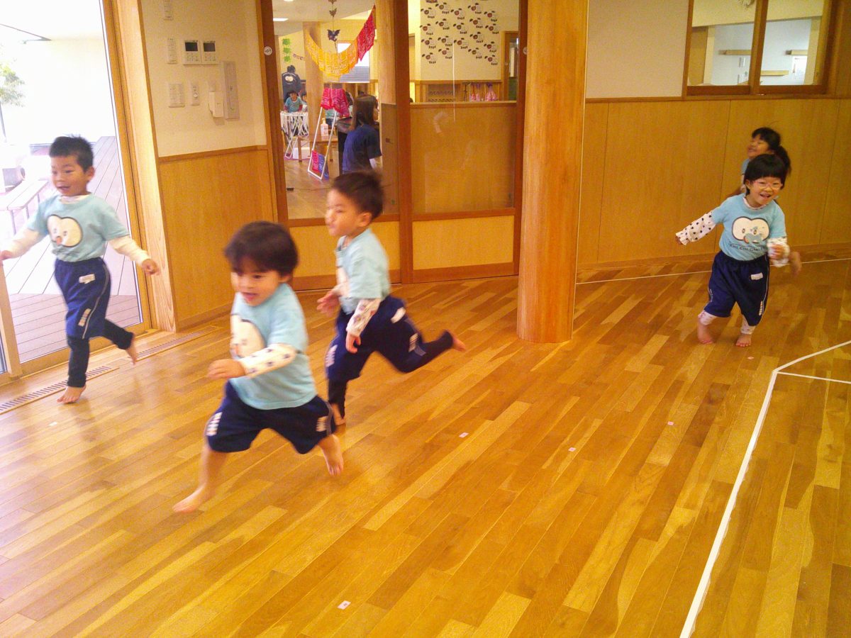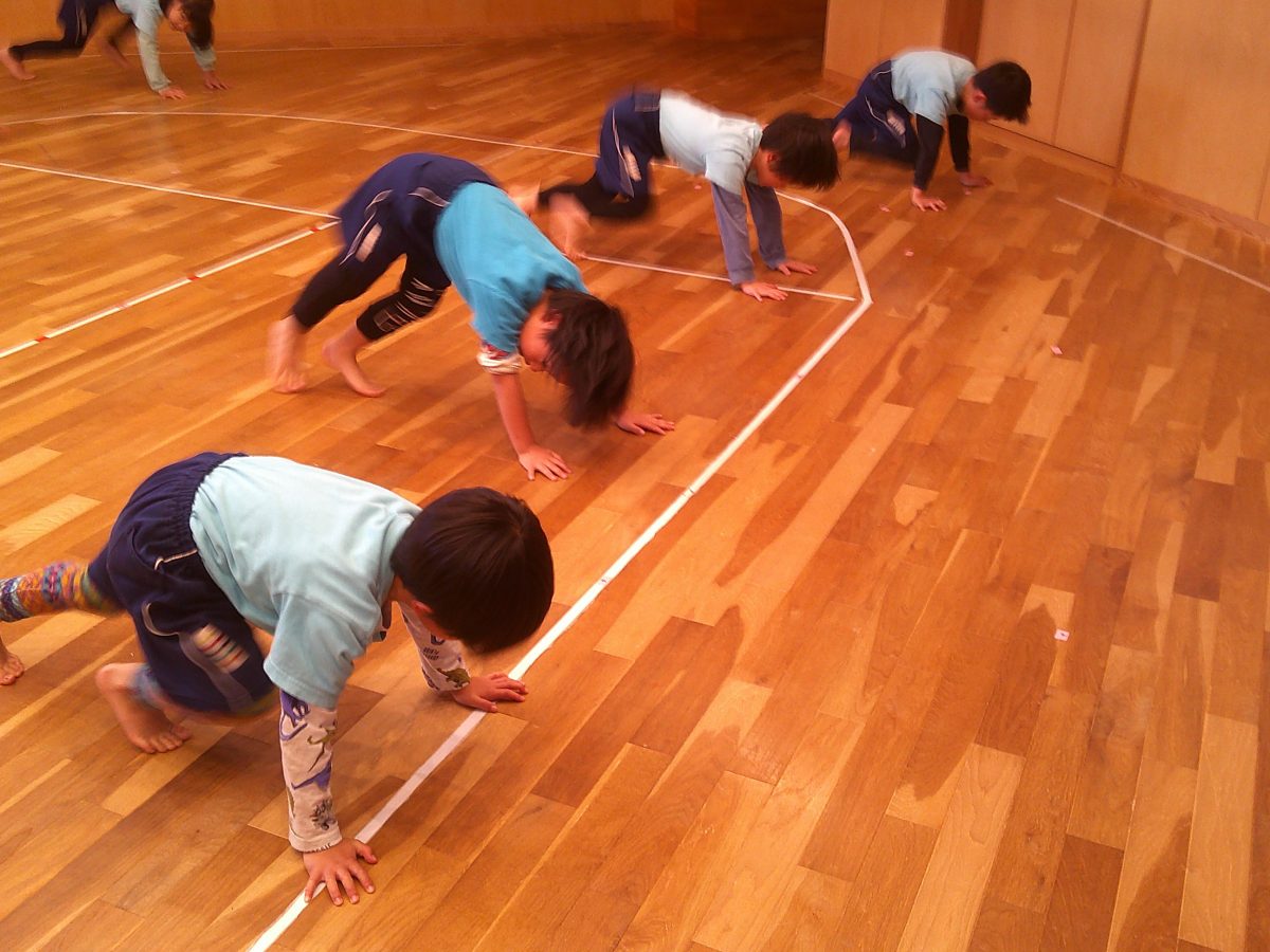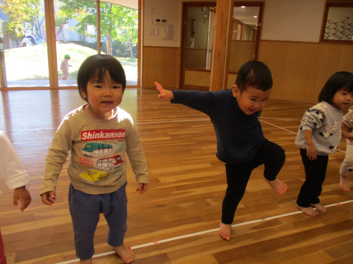今日は、不審者対応の避難訓練がありました。ホールでジッと待ちます。