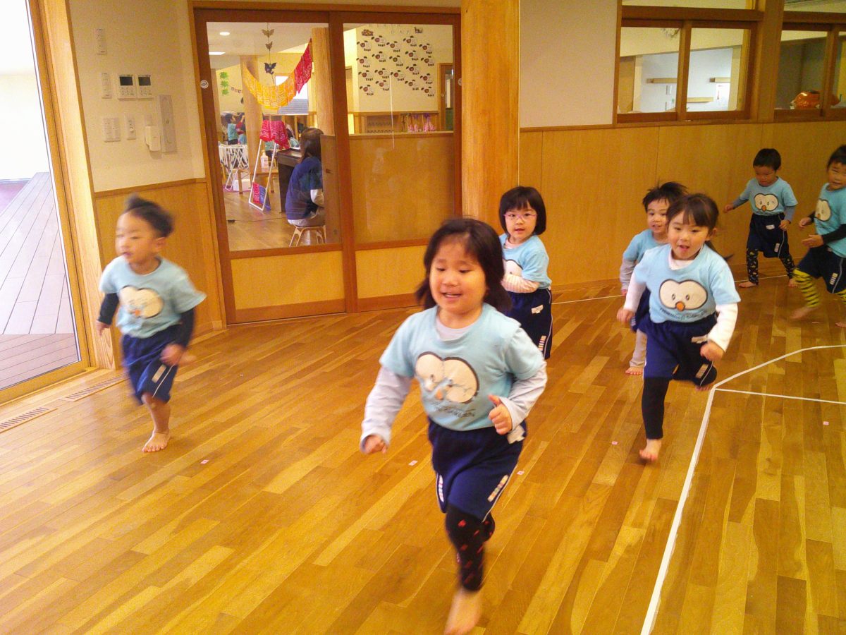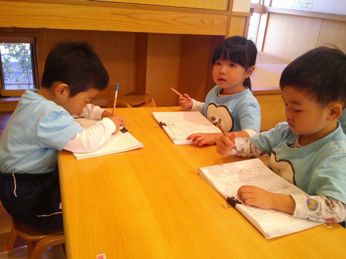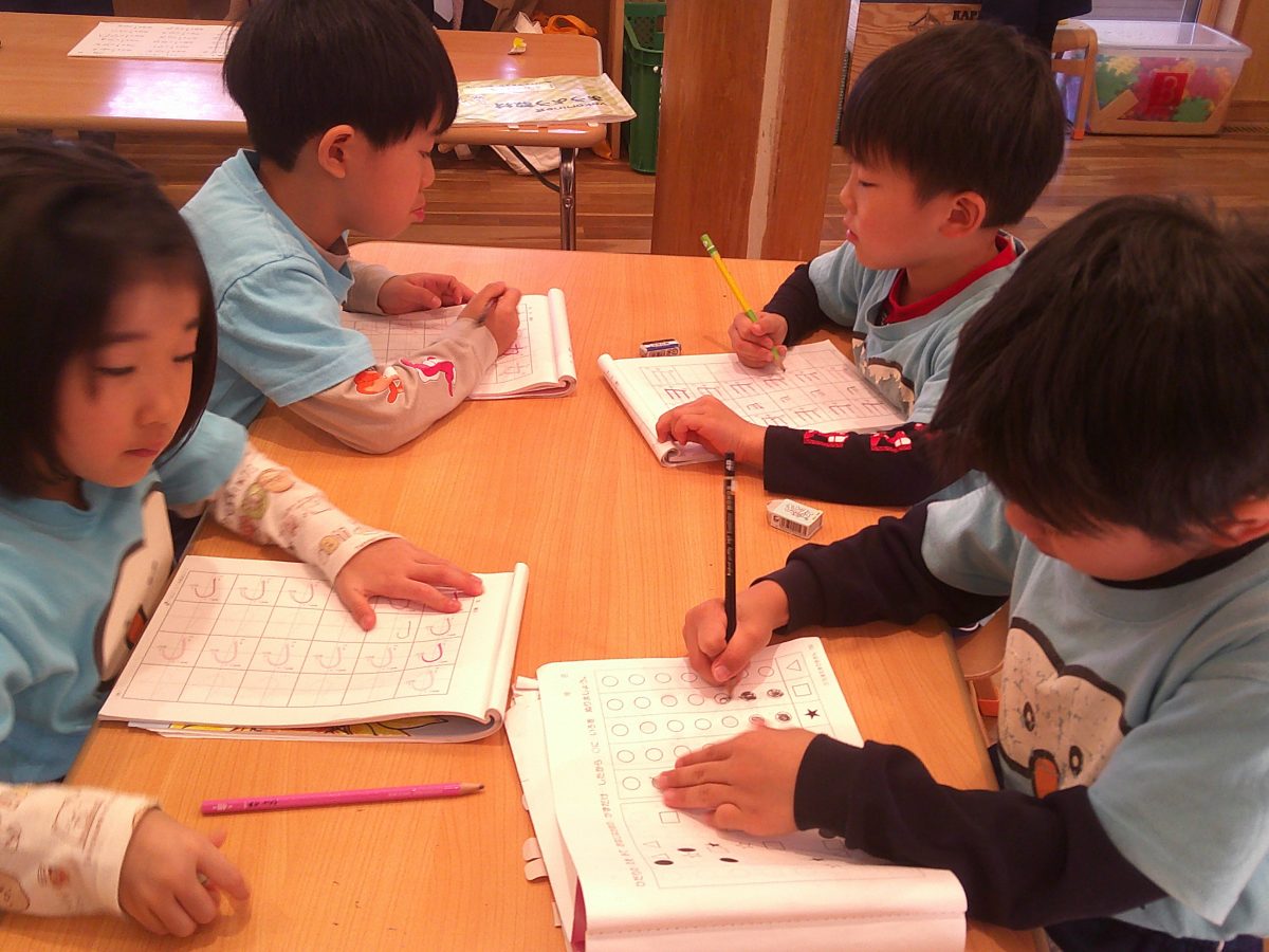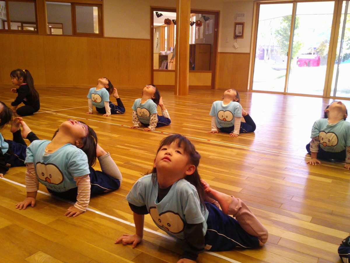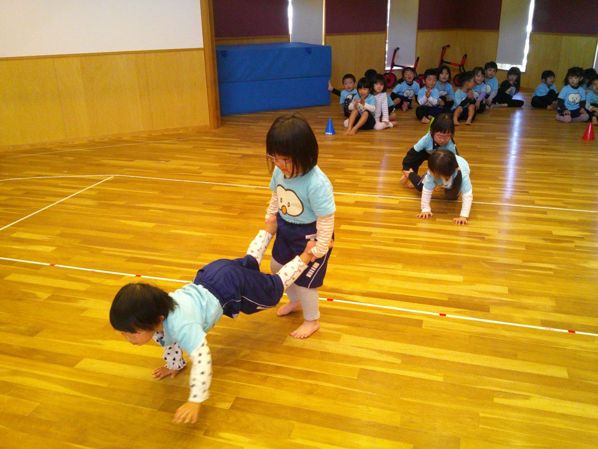 今日は、不審者対応の避難訓練がありました。ホールでジッと待ちます。