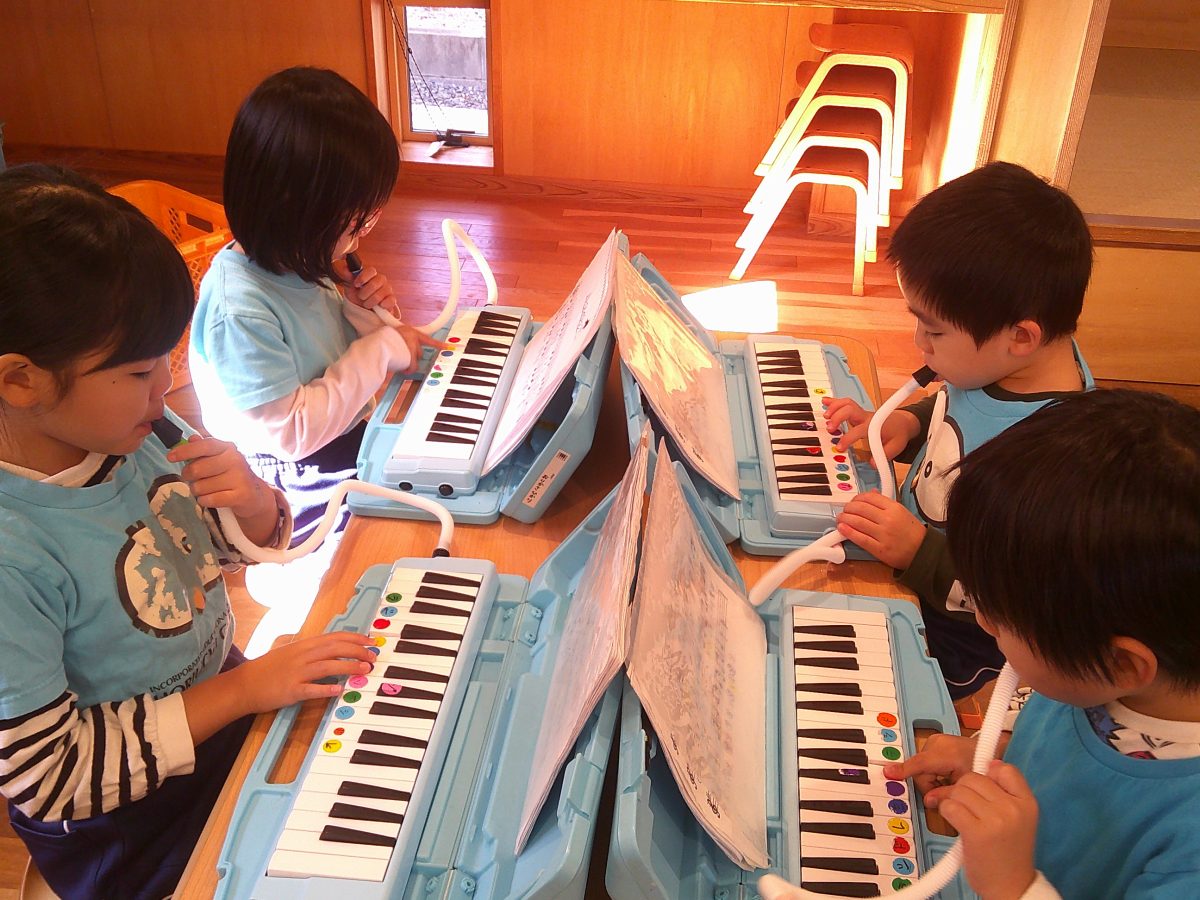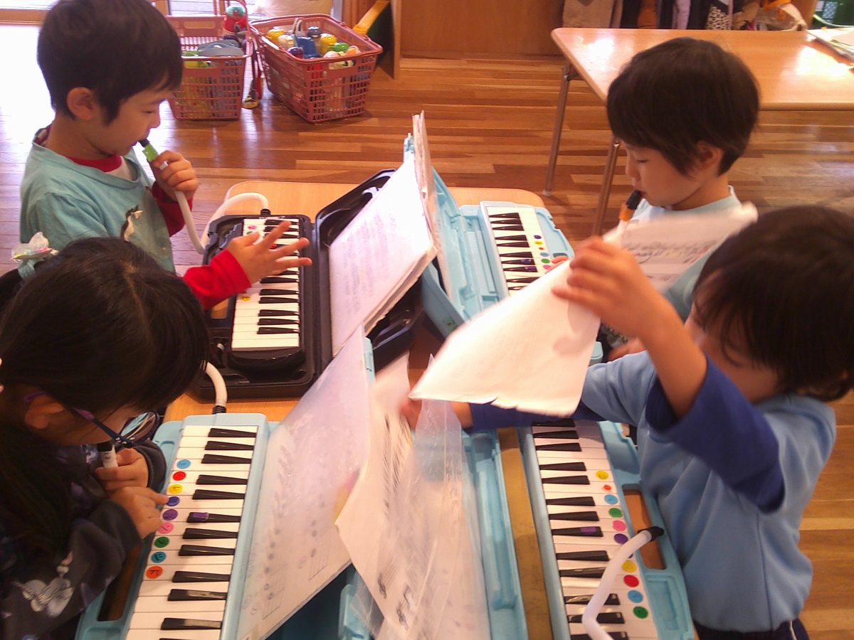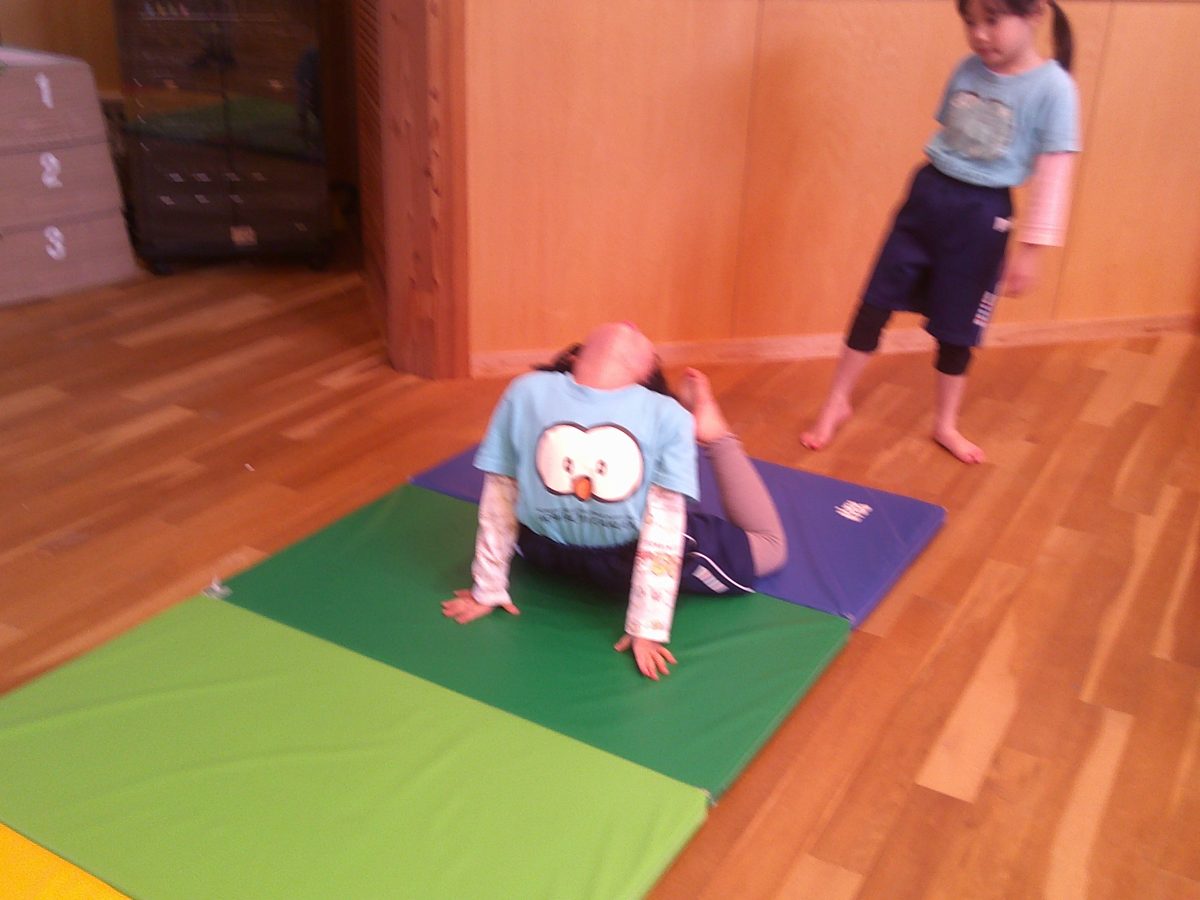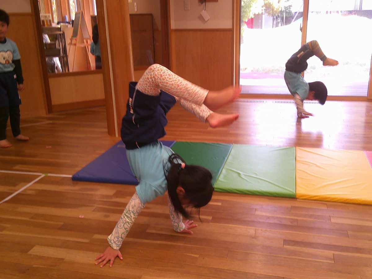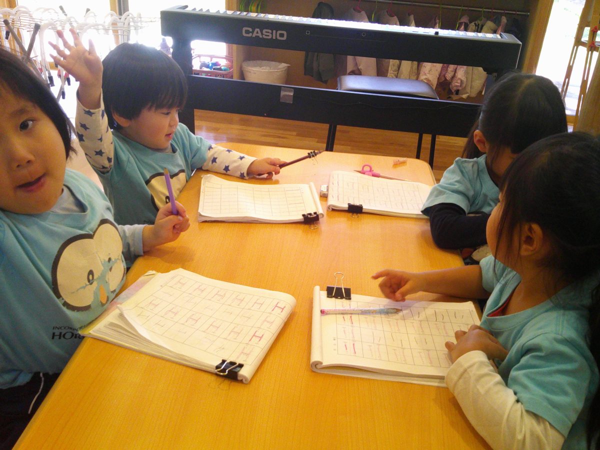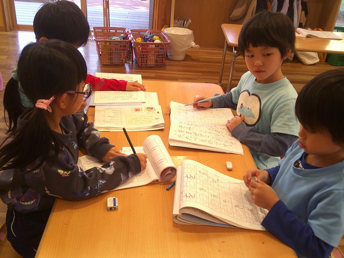 今日は、不審者対応の避難訓練がありました。ホールでジッと待ちます。