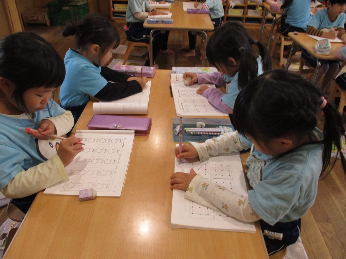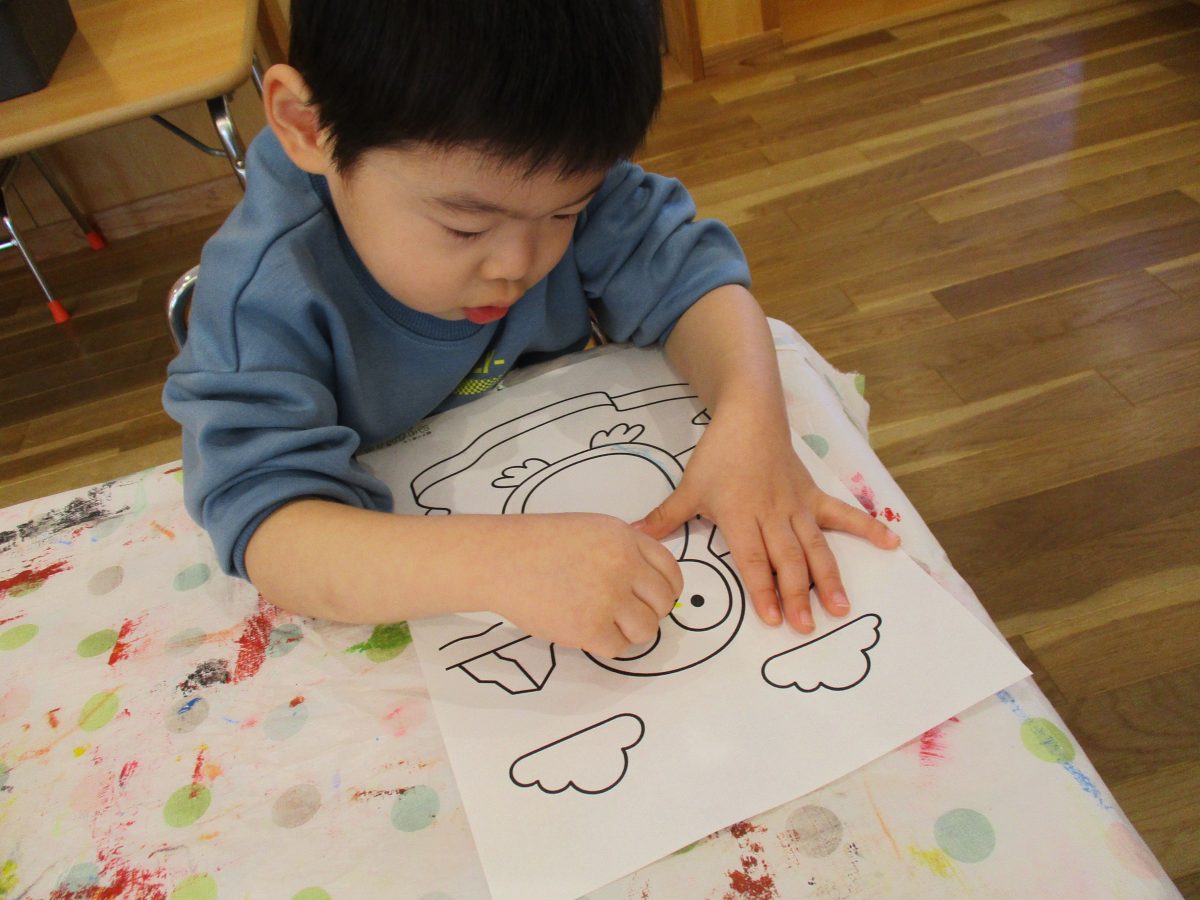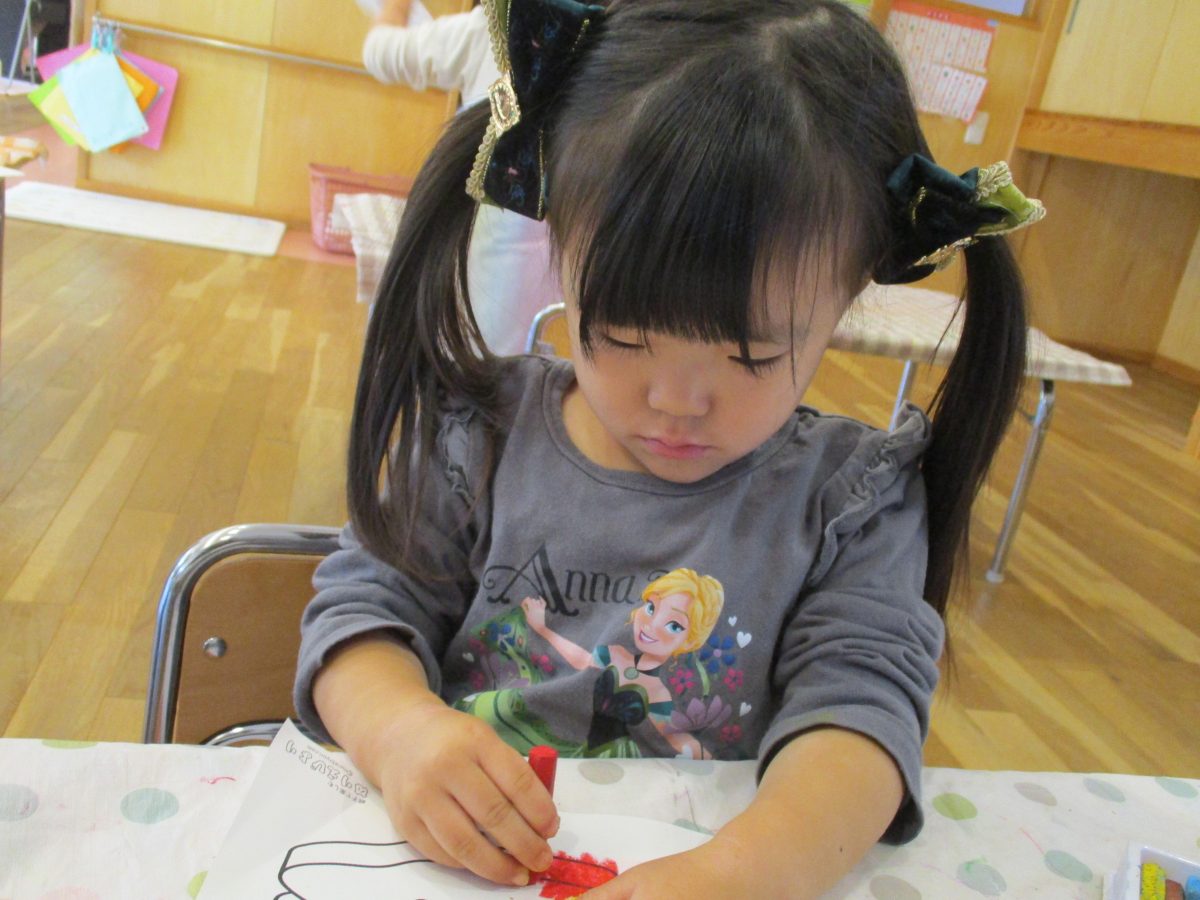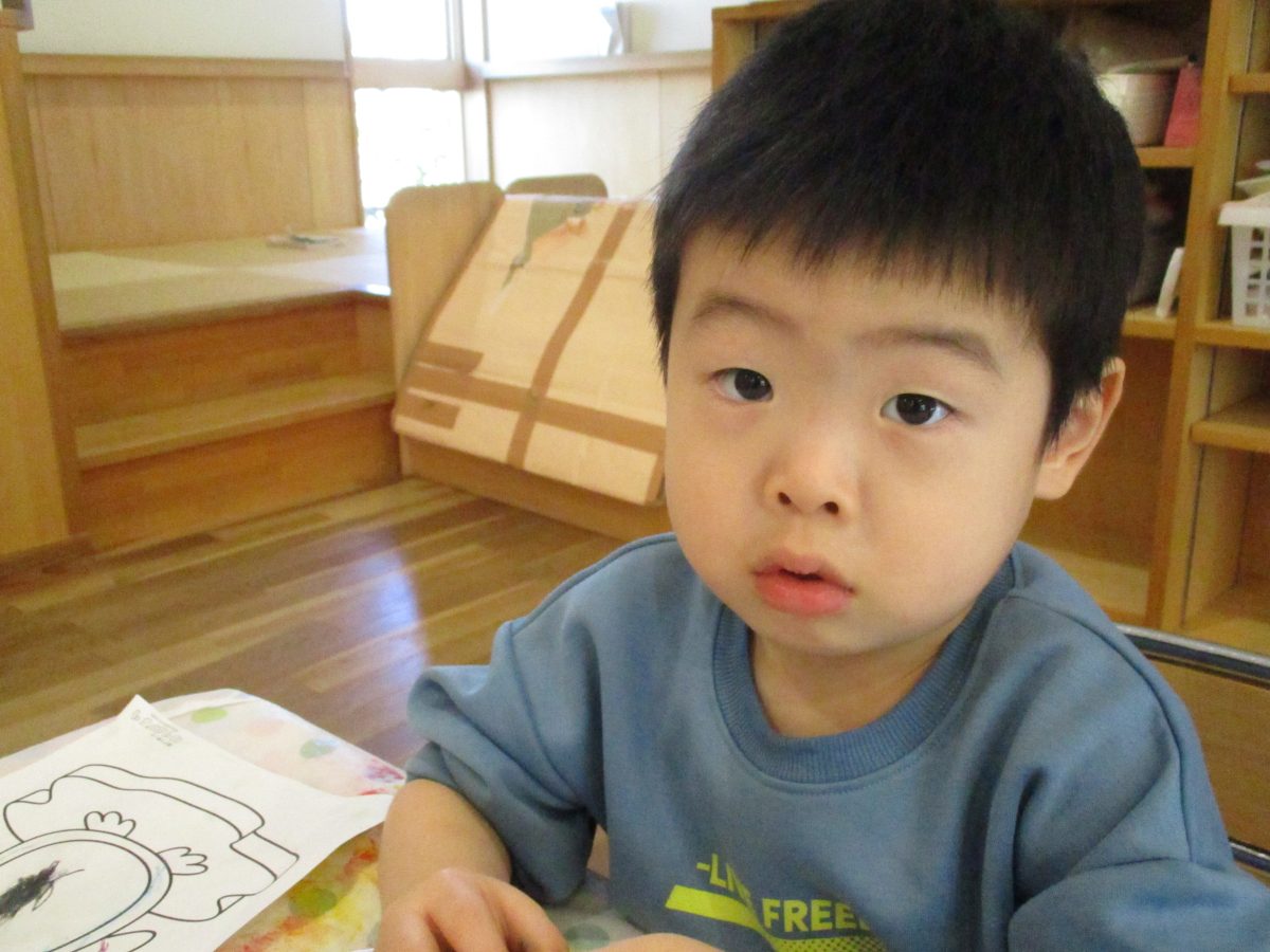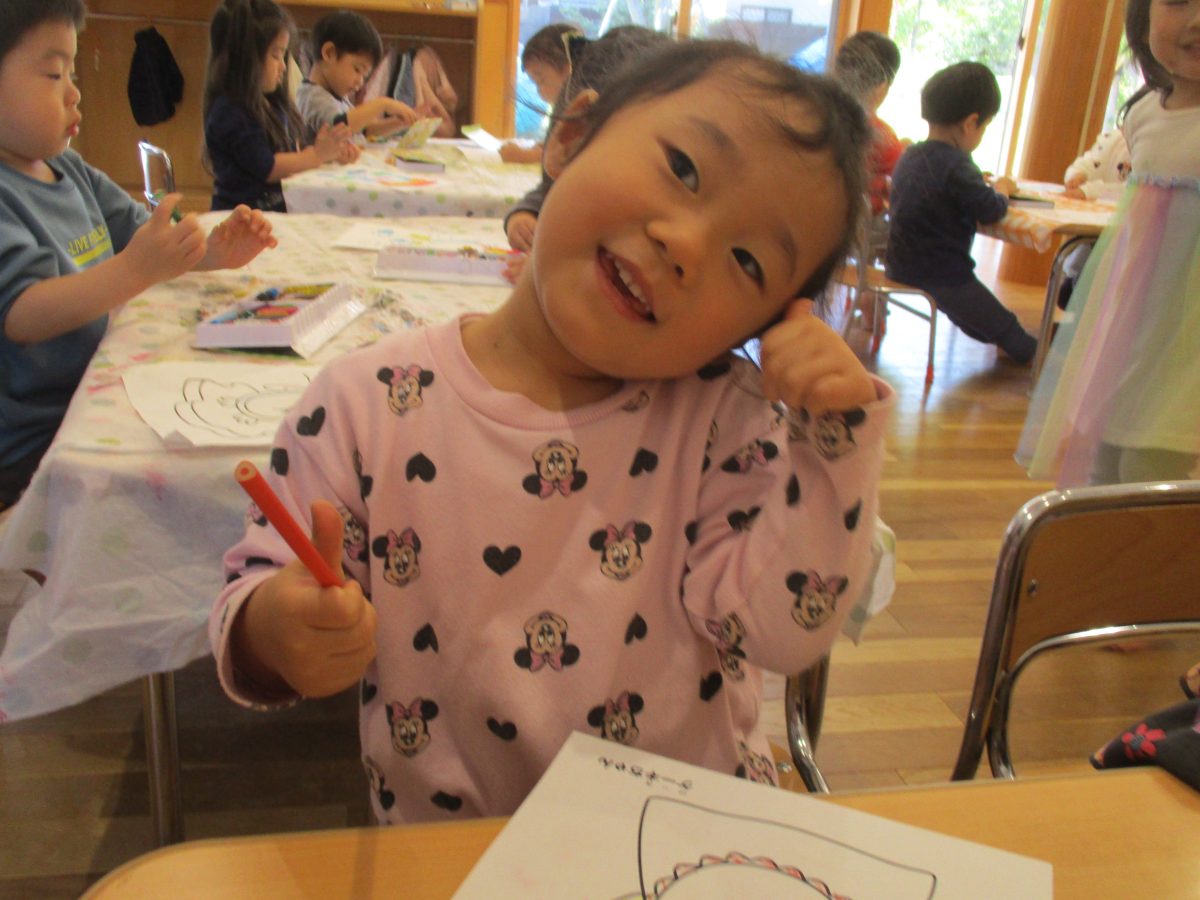 今日は不審者を想定した避難訓練がありました!こわ~い不審者さんが来るまで、お部屋でぬり絵をして過ごしました!見本と同じ色で塗れるかな?🖍️