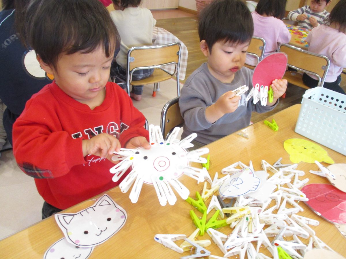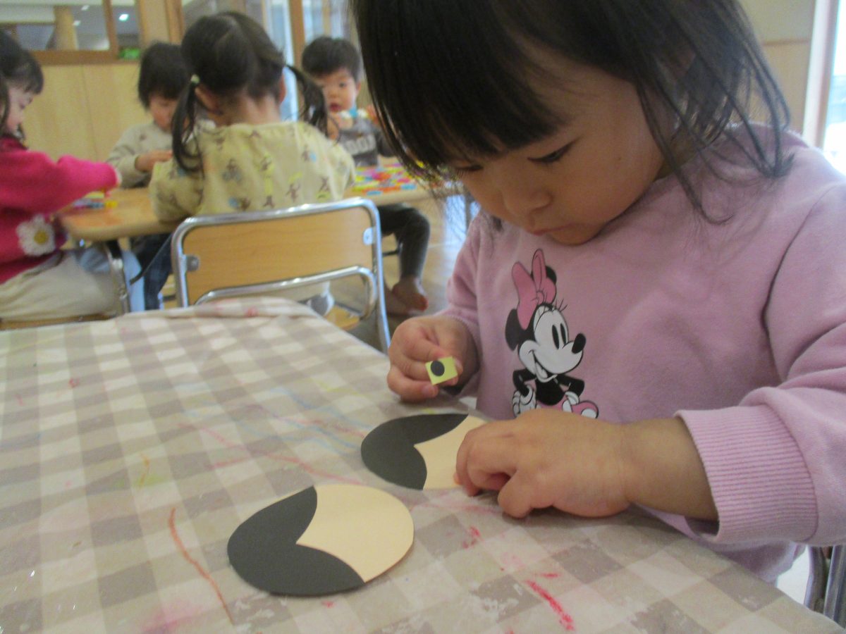 今日は、製作を行いました!先生の見本をよく見ながら、頑張っていましたよ👏