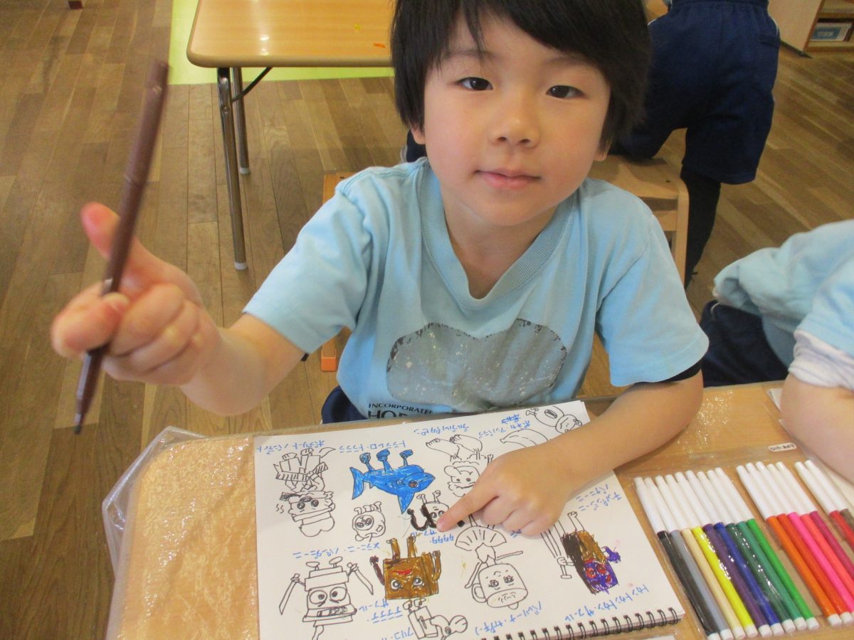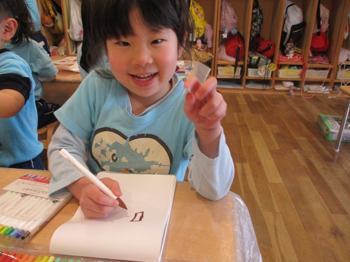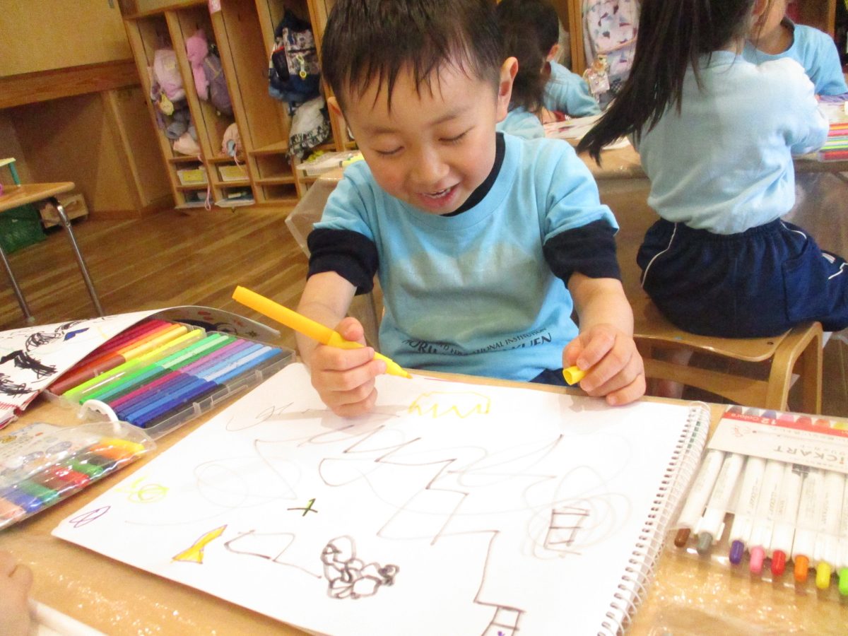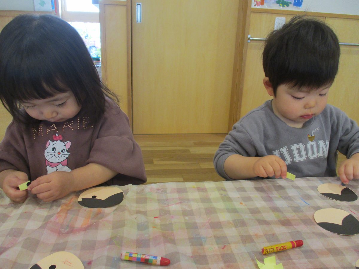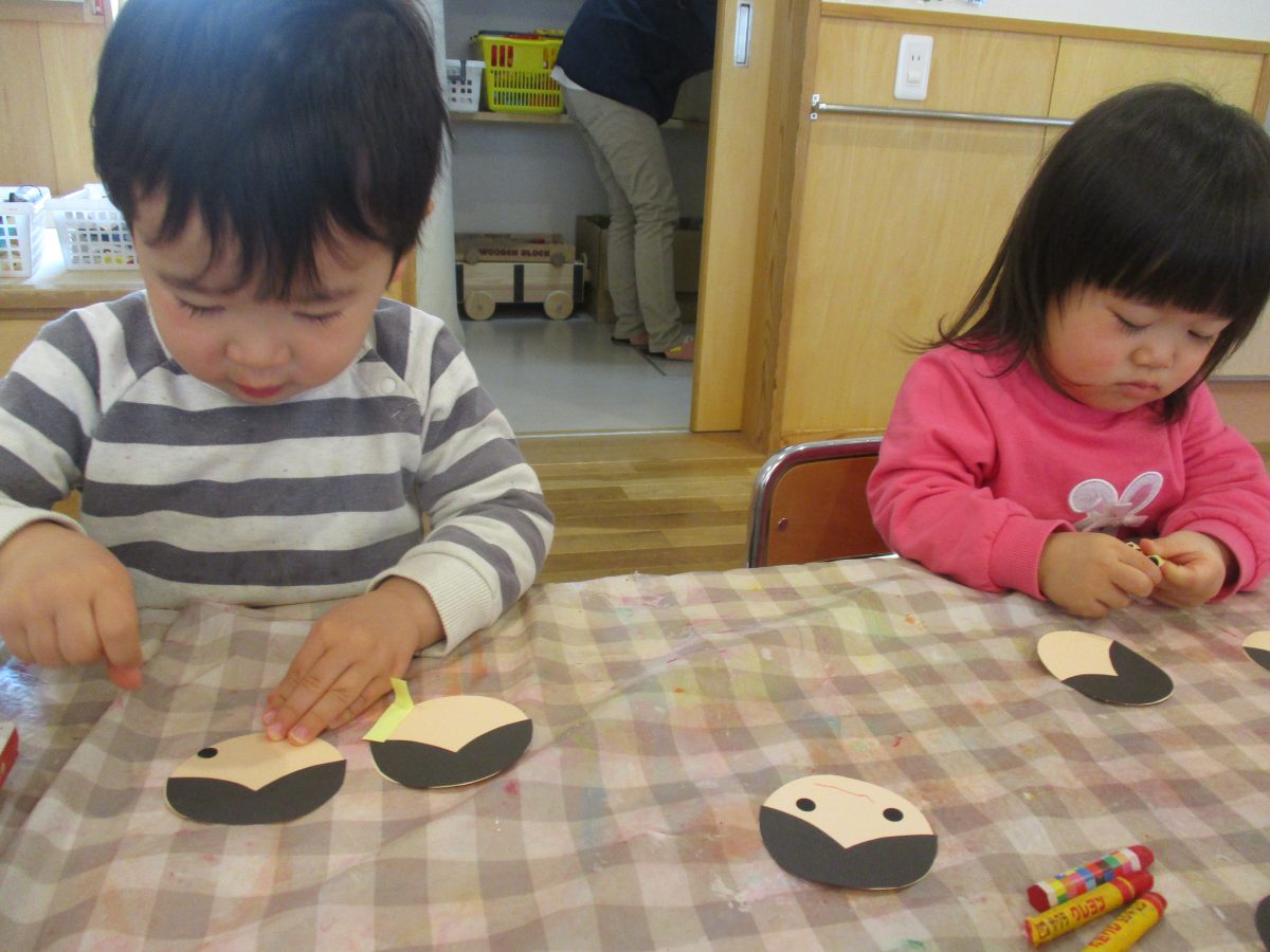 今日はシールを貼ったりクレヨンでカキカキ・・・可愛いお顔が出来ましたよ😍