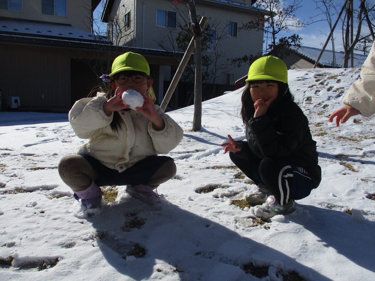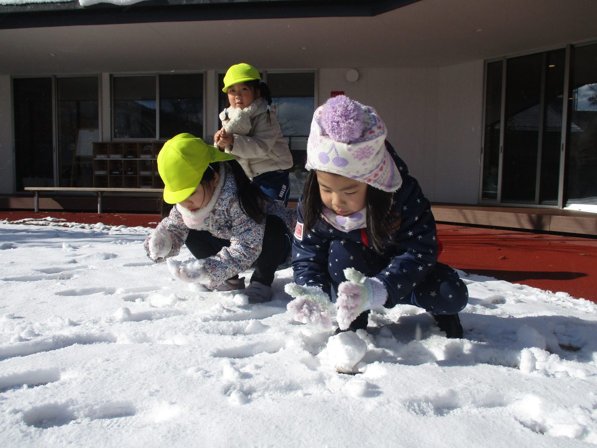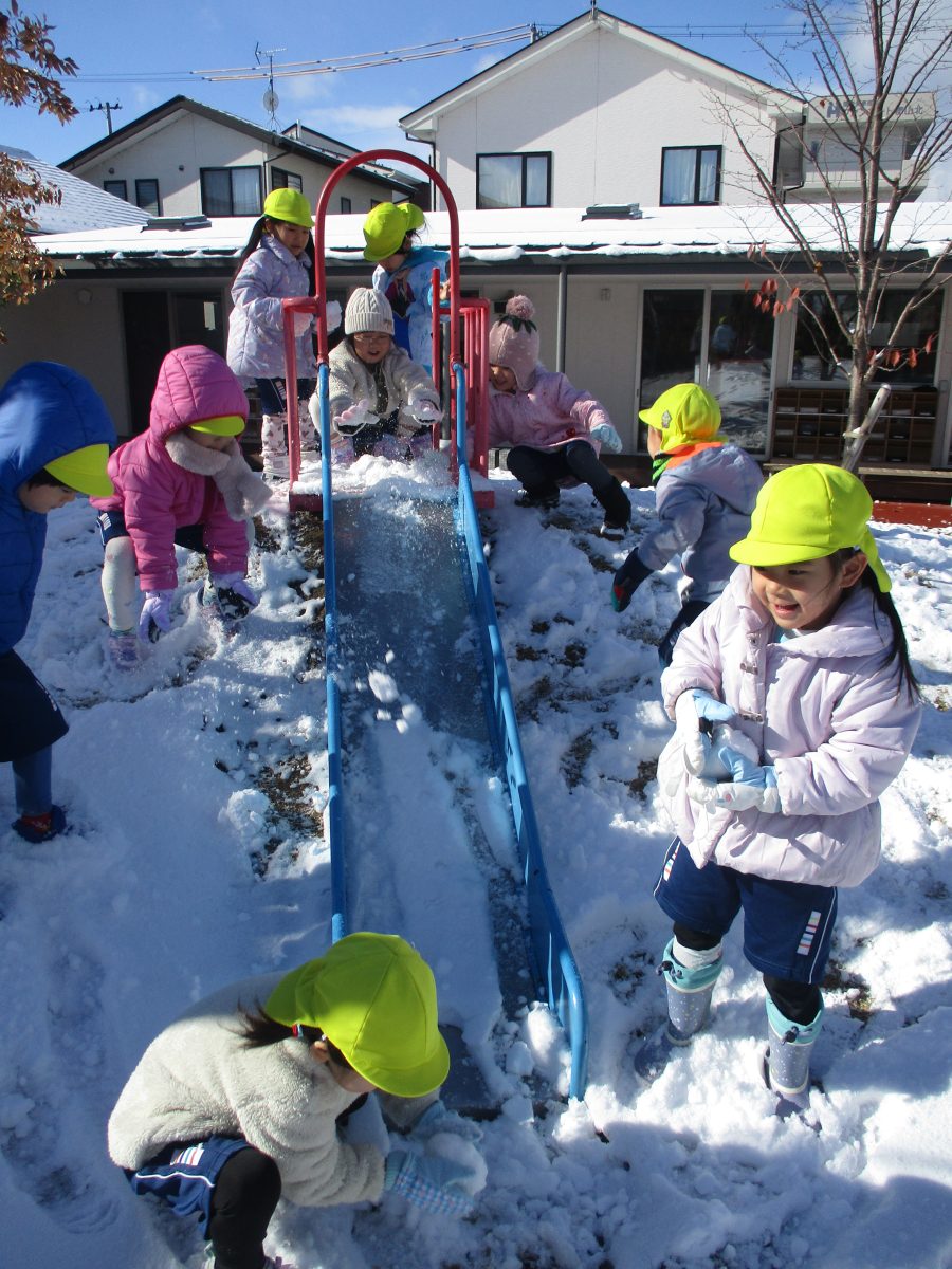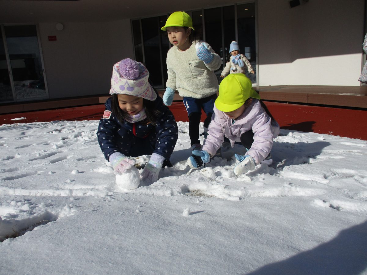 子ども達は、「真っ白~!」「雪遊びできるかな?」と、朝から元気いっぱいでした😄