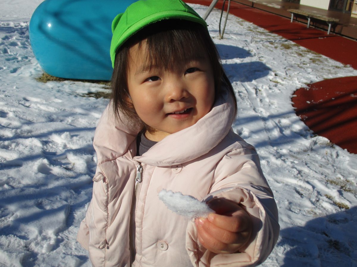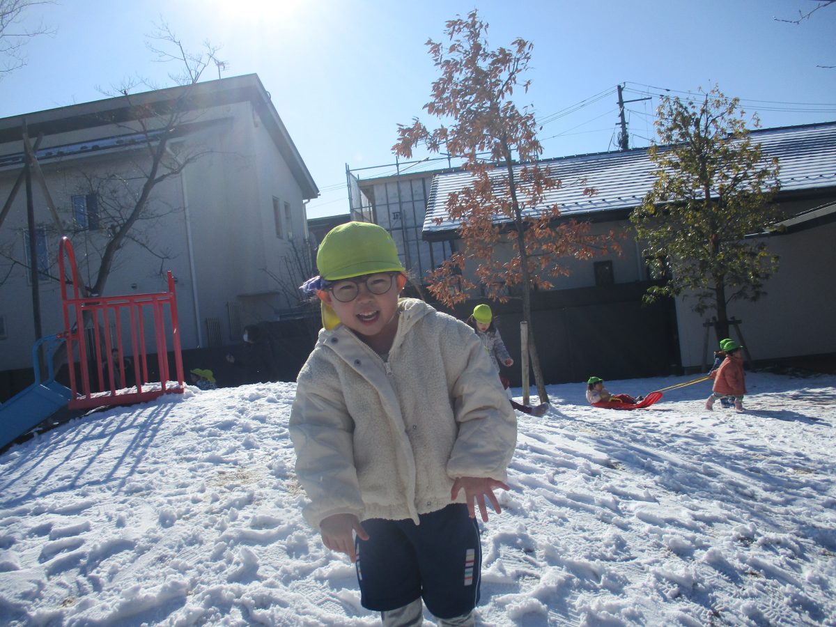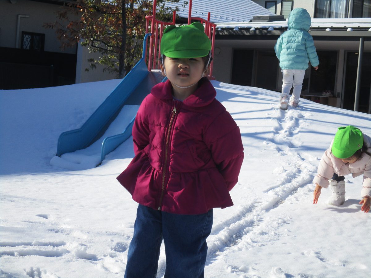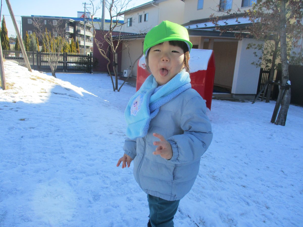 今日は、園庭に雪が積もりとっても嬉しそうなたいよう組の子どもたちでした⛄