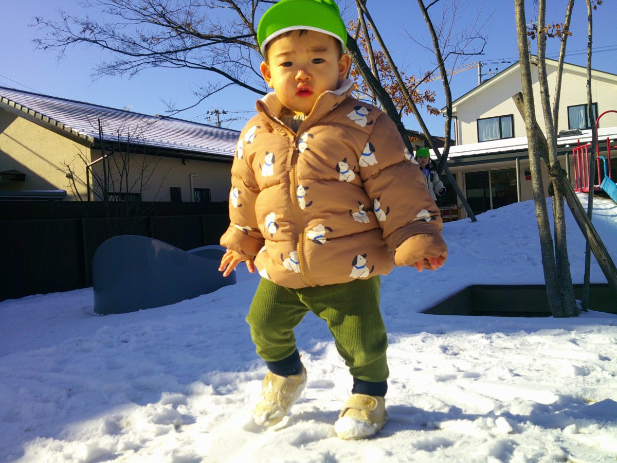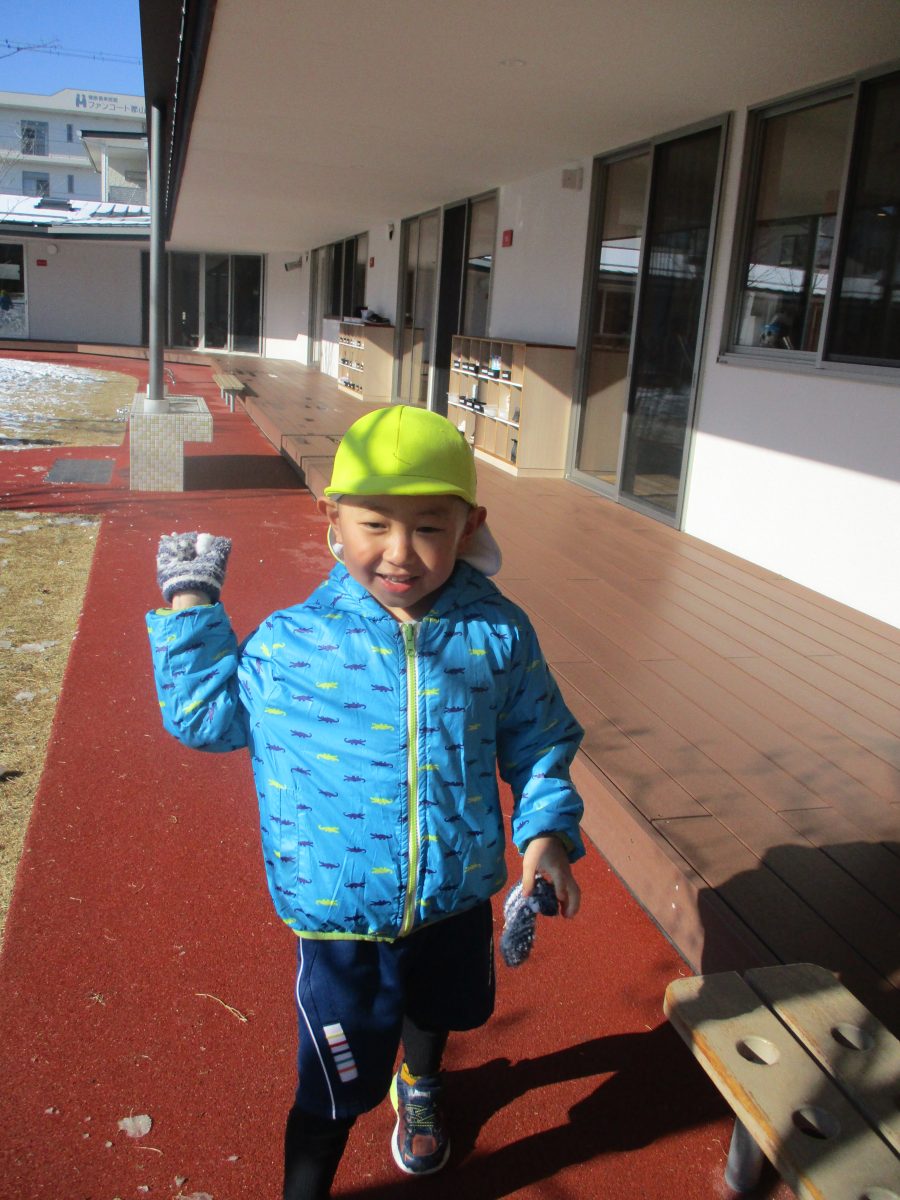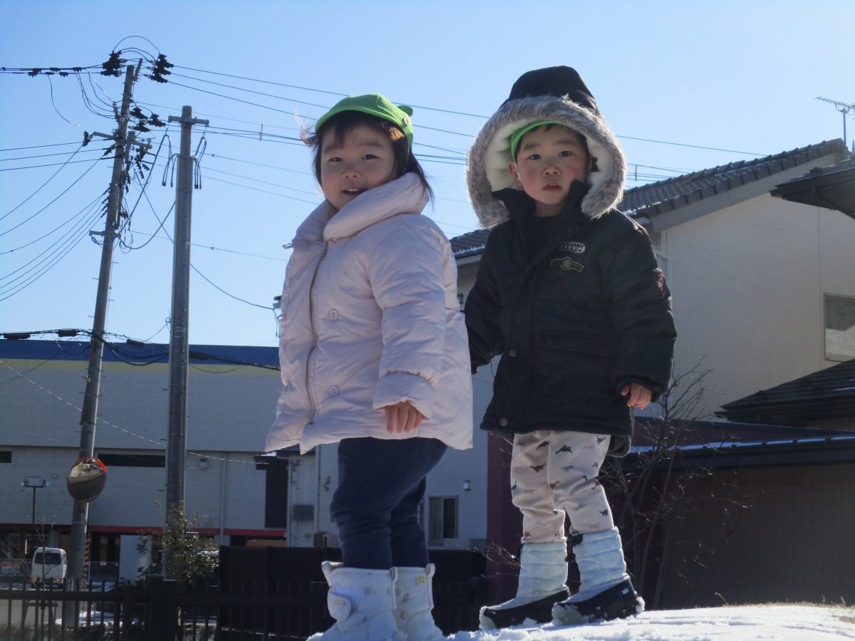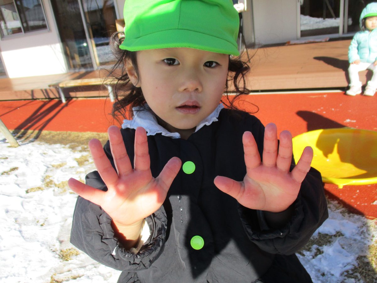 今日は、園庭に雪が積もりとっても嬉しそうなたいよう組の子どもたちでした⛄
