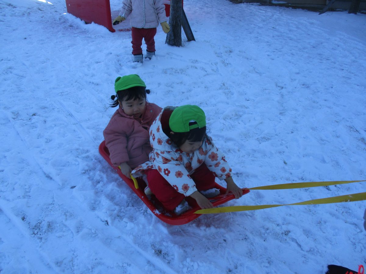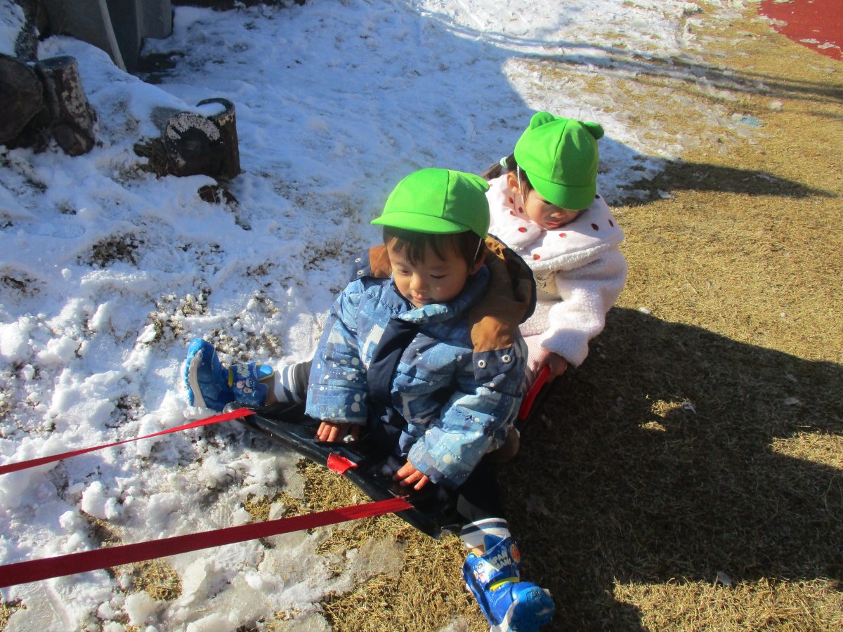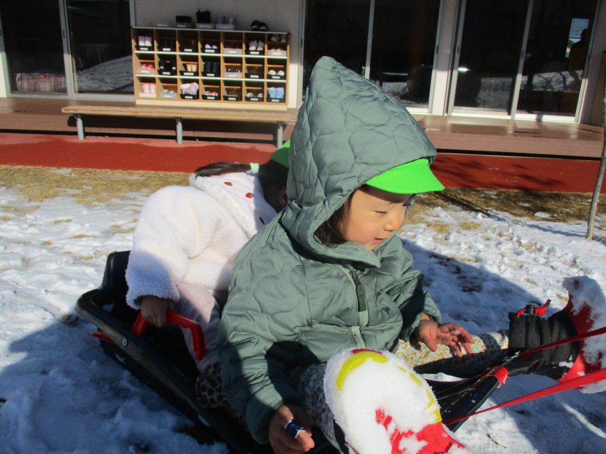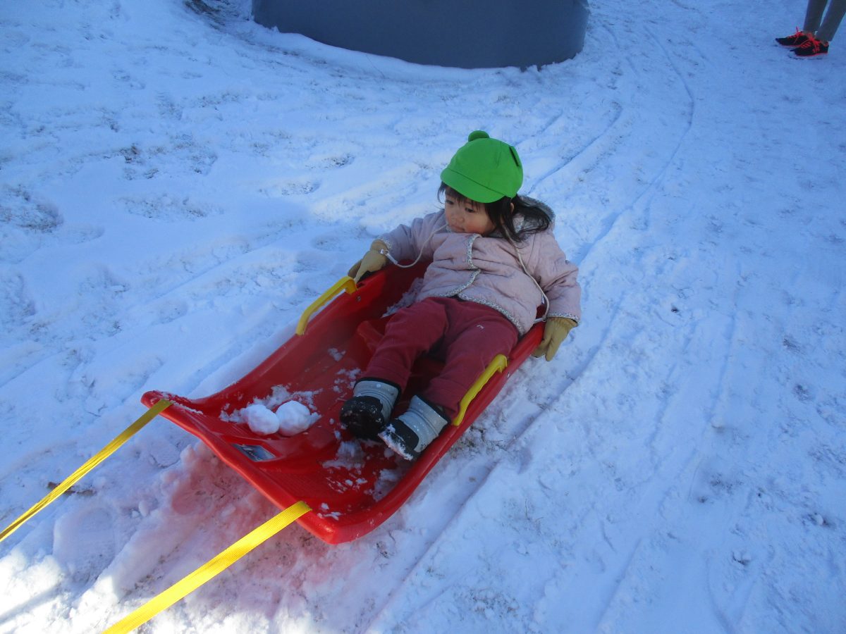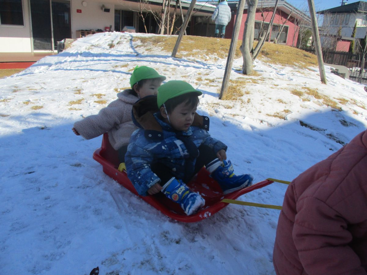 ソリ滑りもしました!しっかり紐を持って、しゅっぱーつ!🚩