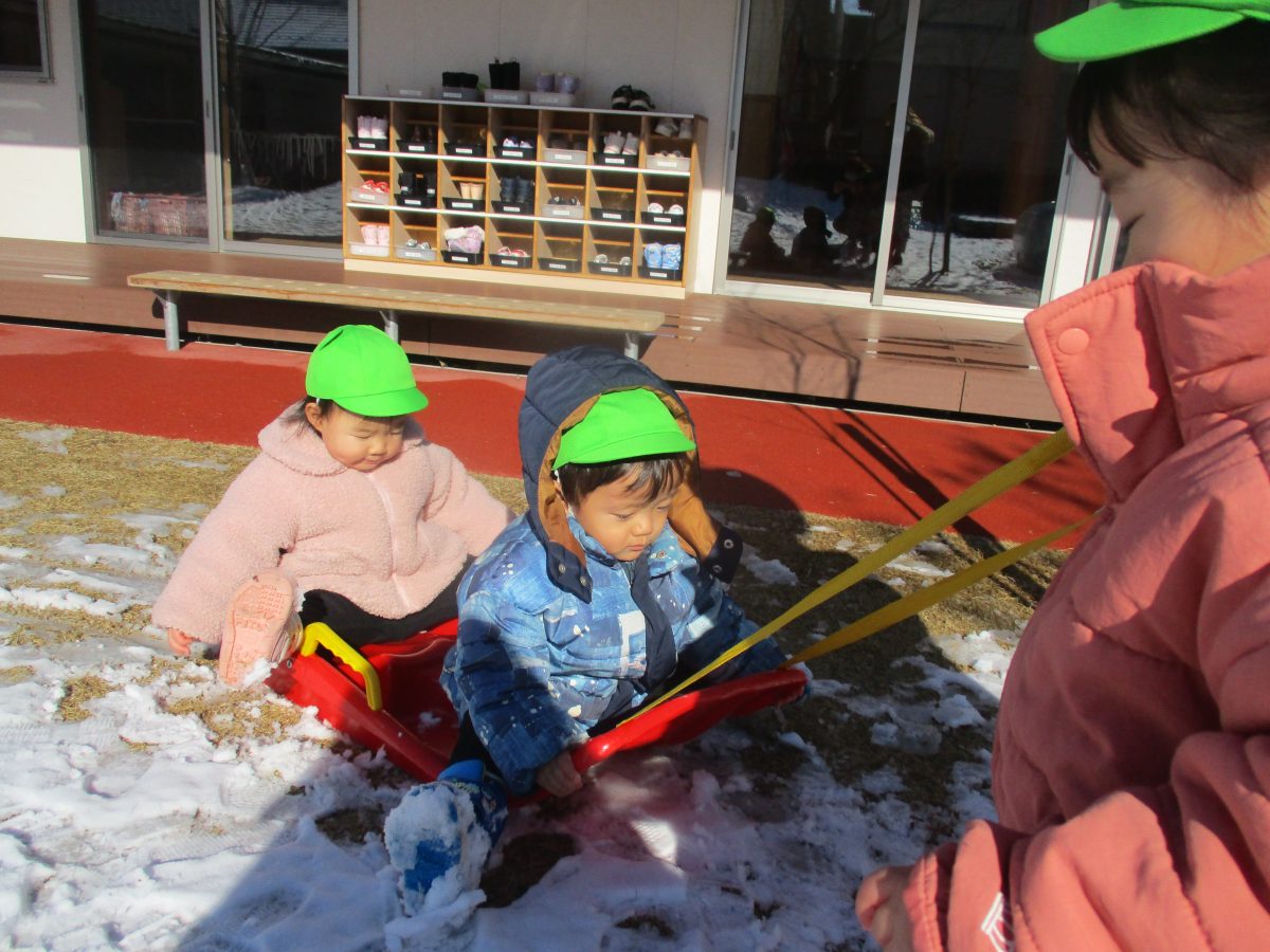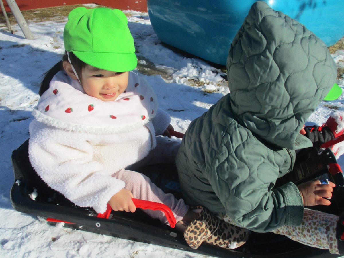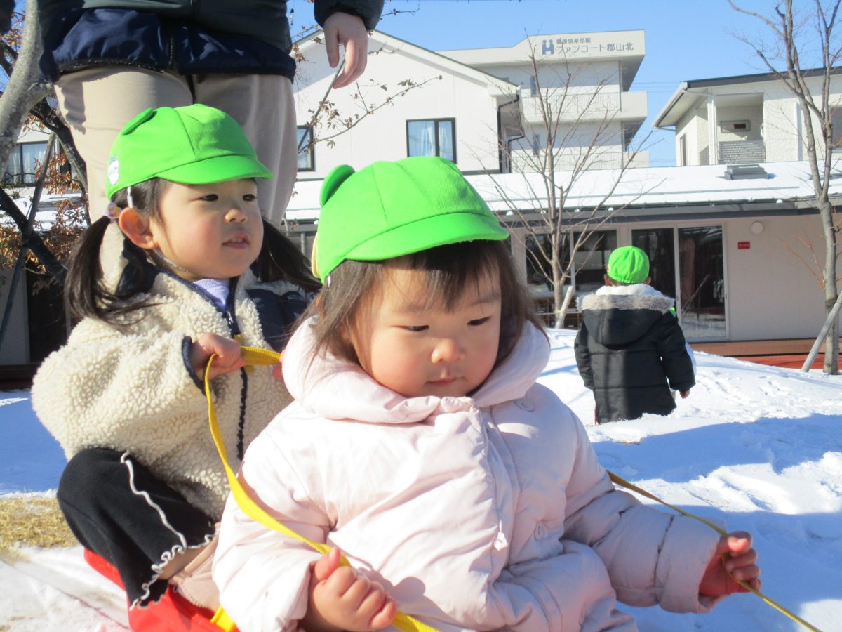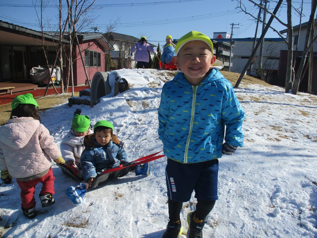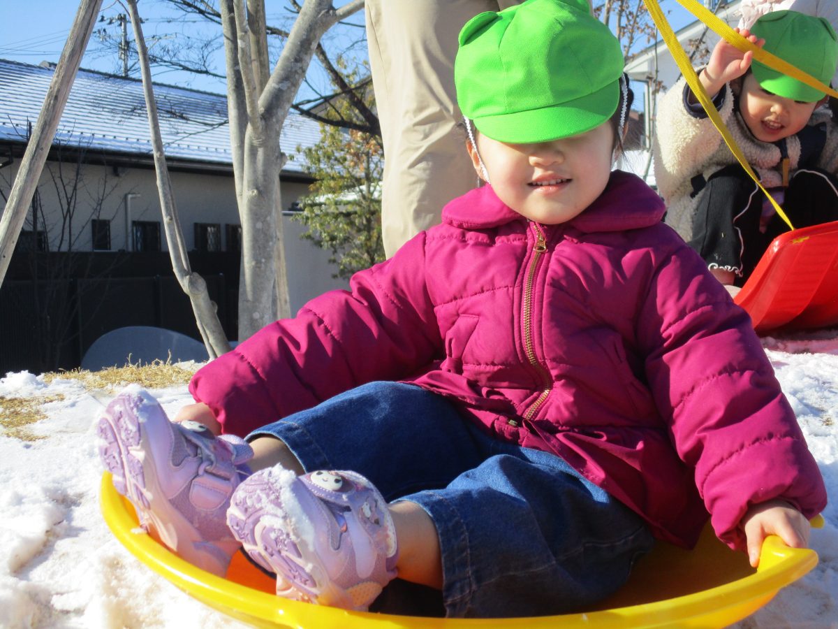ソリ滑りもしました!しっかり紐を持って、しゅっぱーつ!🚩
