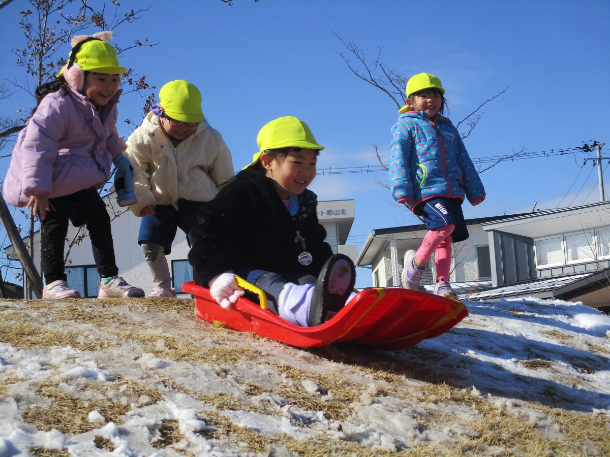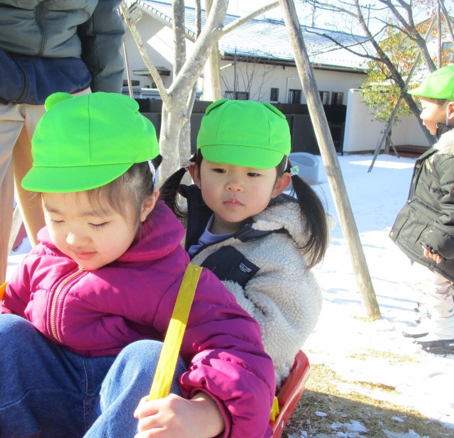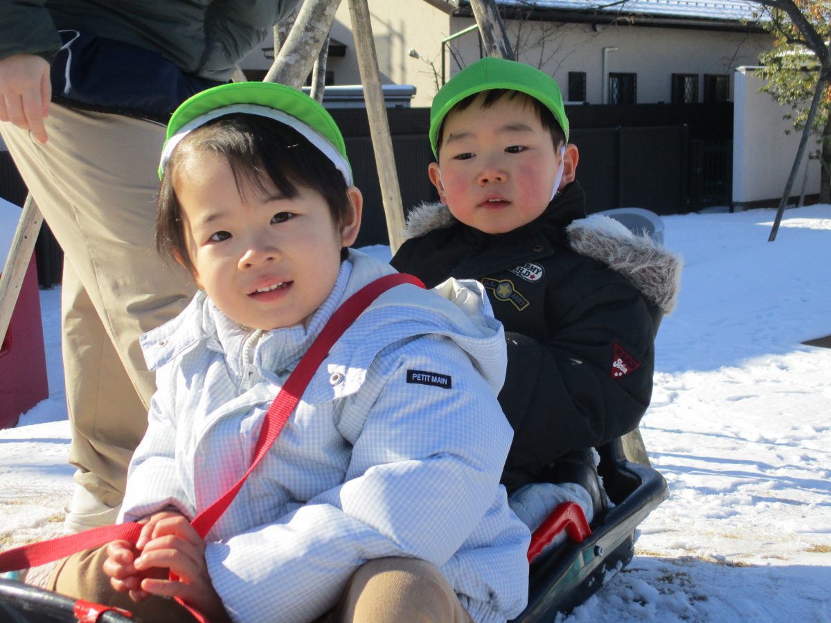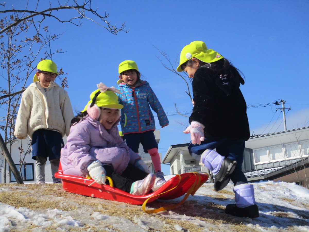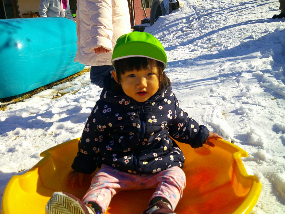ソリ滑りもしました!しっかり紐を持って、しゅっぱーつ!🚩