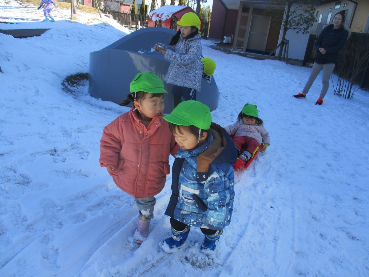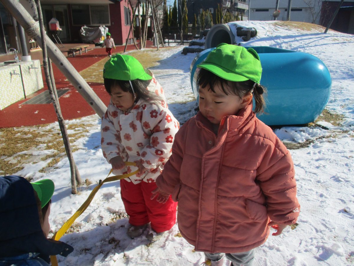 お天気も良く雪が積もっていたのでお外で楽しく遊んでいるクラスが沢山ありました😍