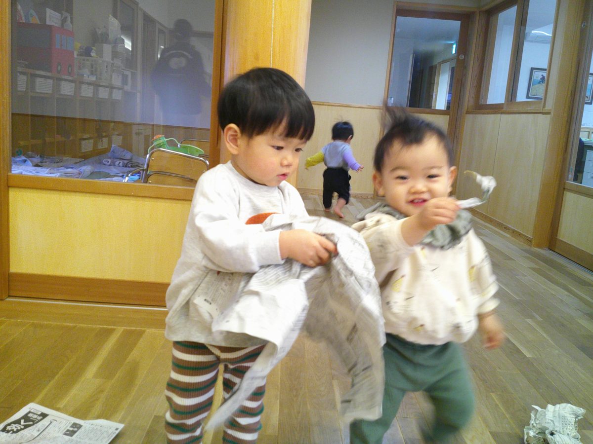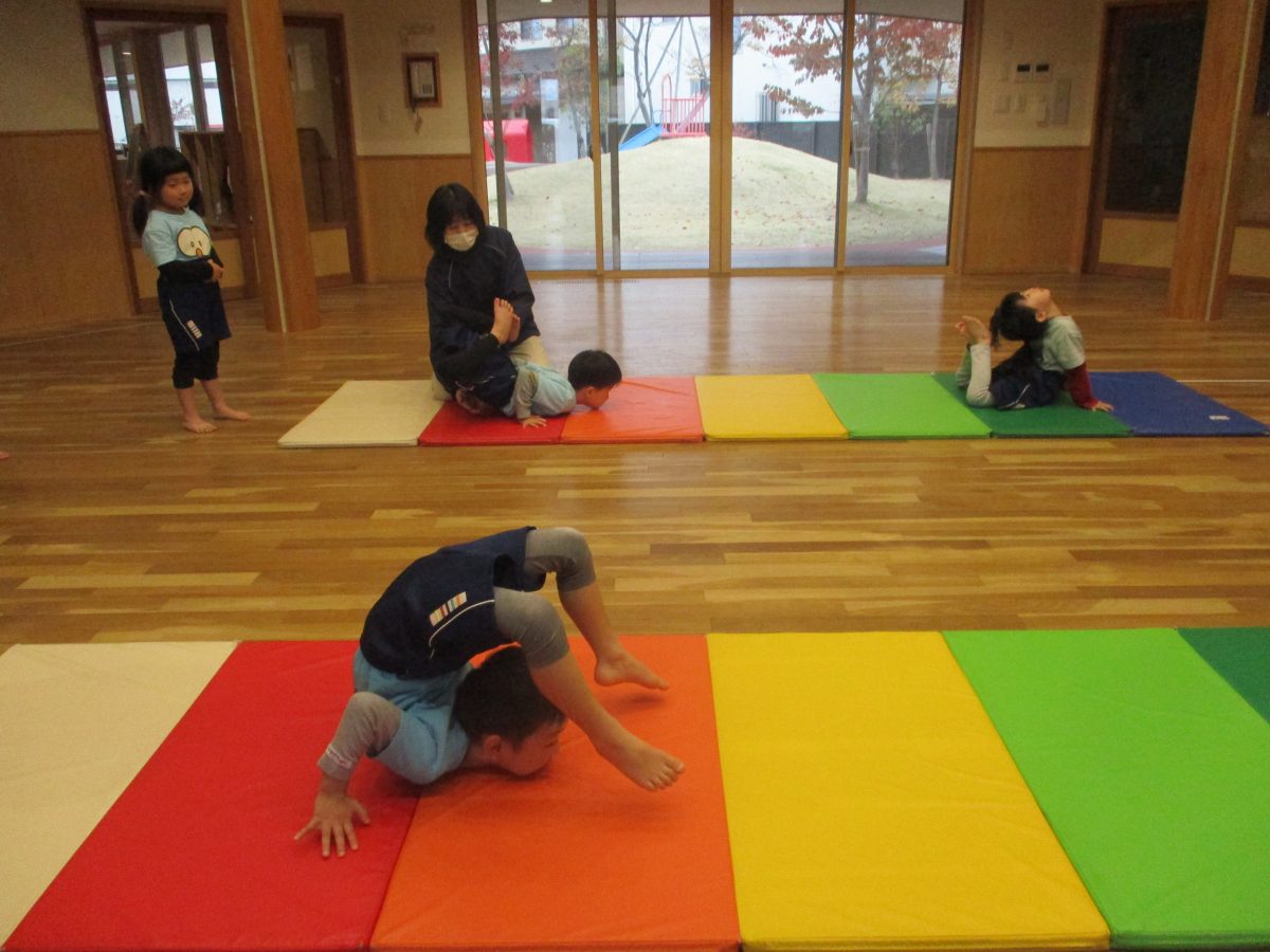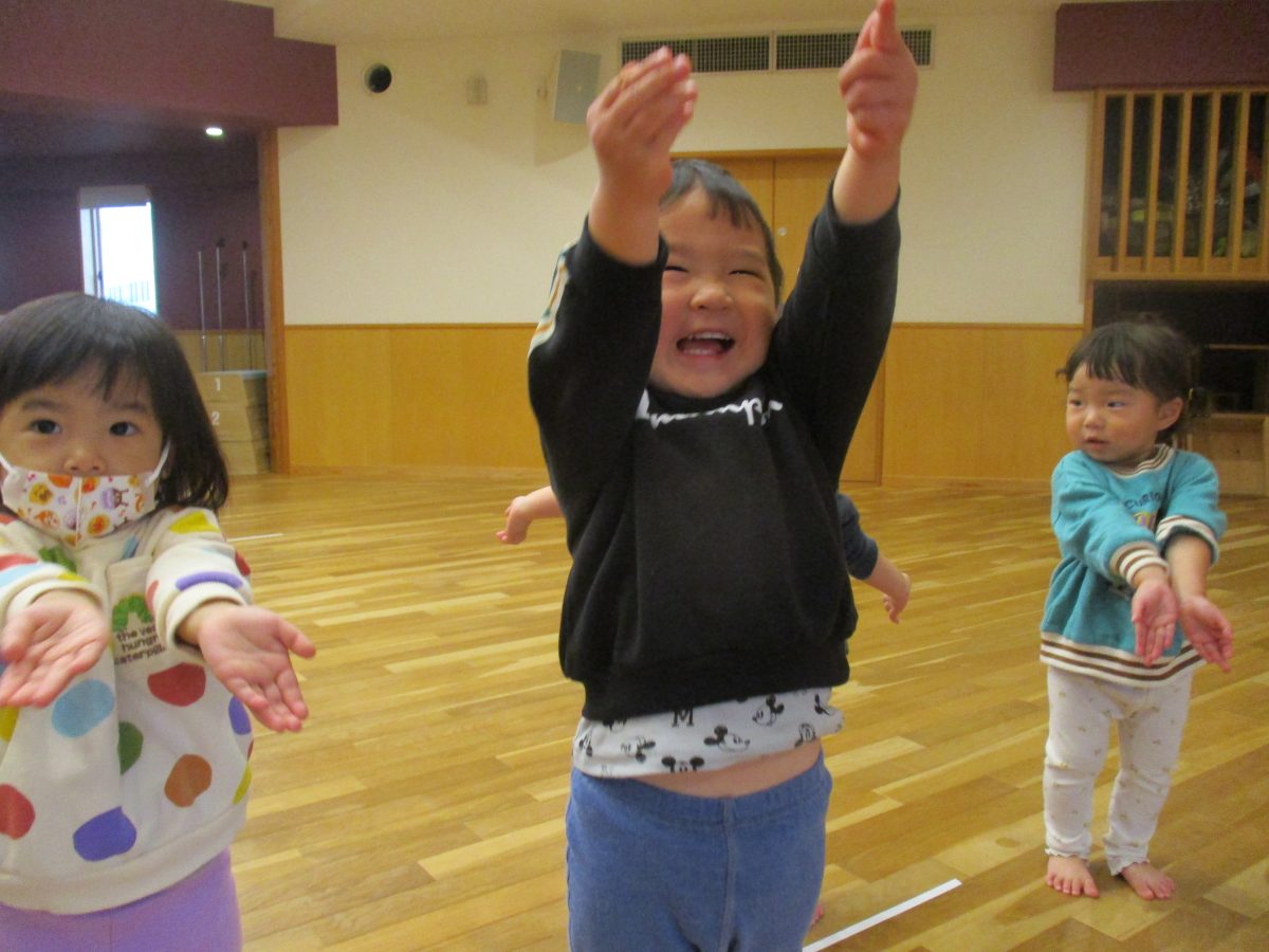 お部屋でも友だちと一緒に遊んだり、体操をしたりして楽しみました😊