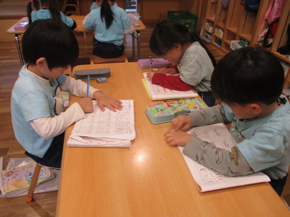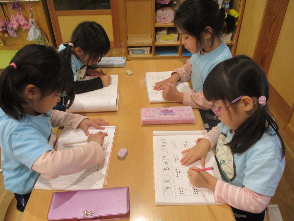 朝の会とフラッシュカードでひらがなと、数字のお勉強中の様子です😊