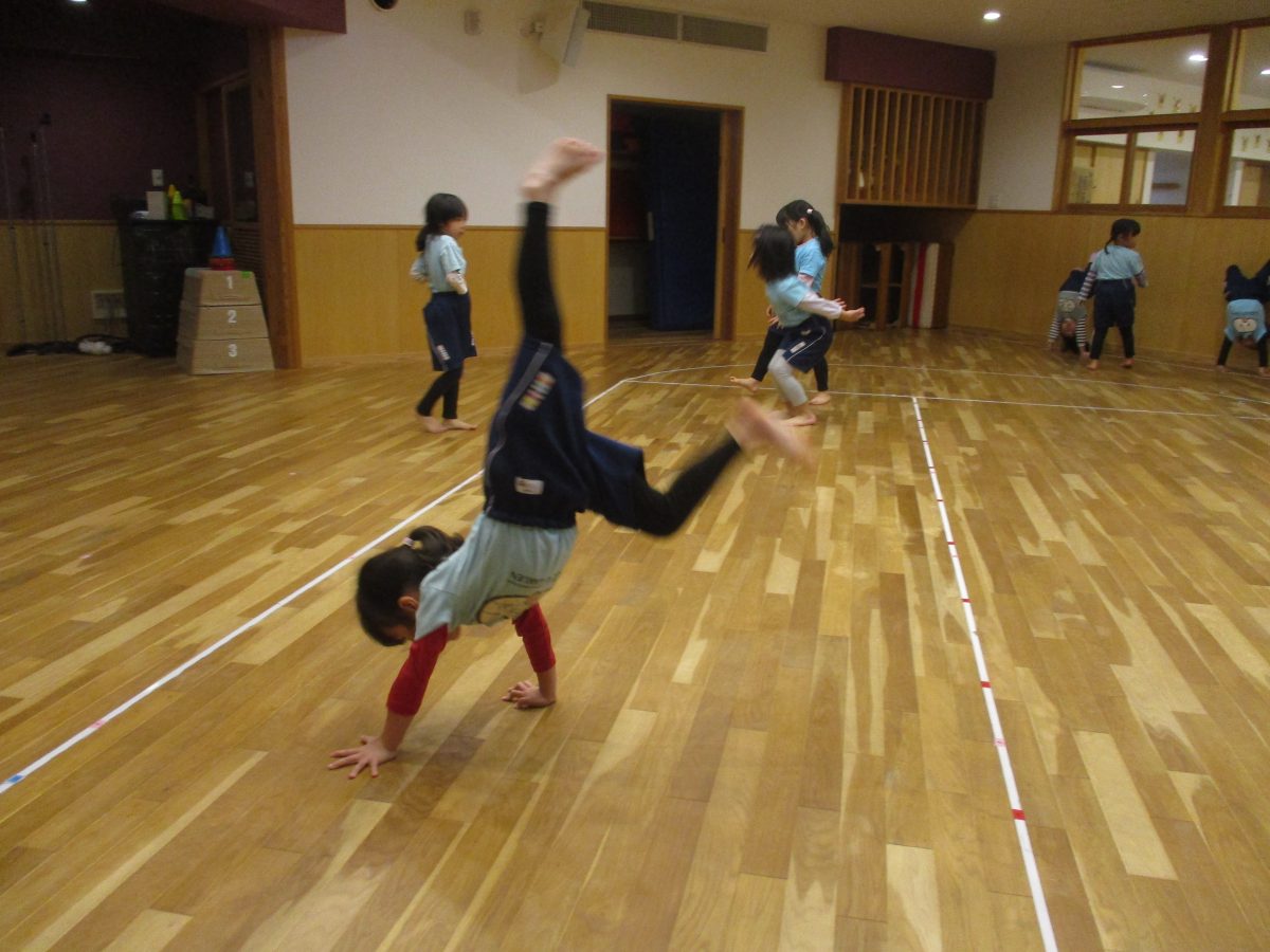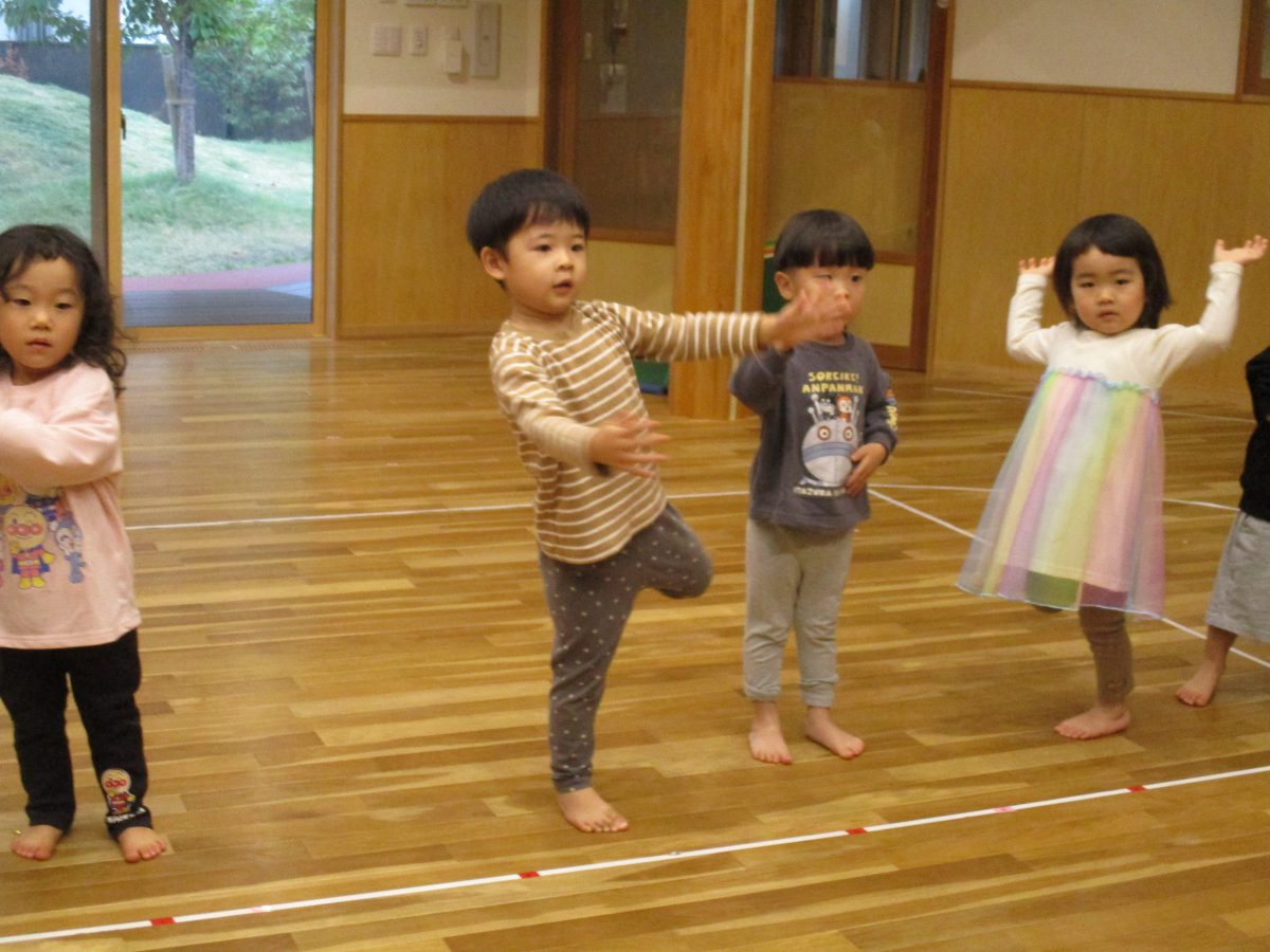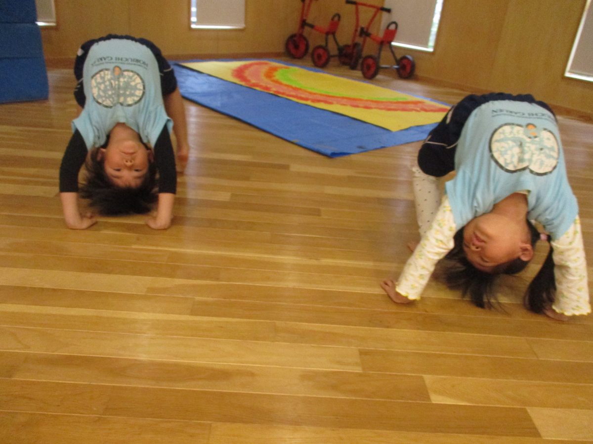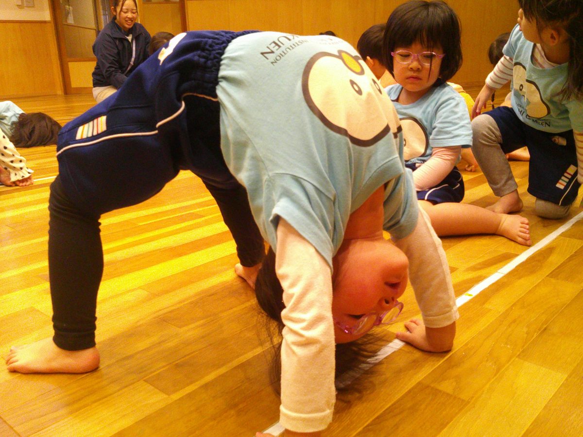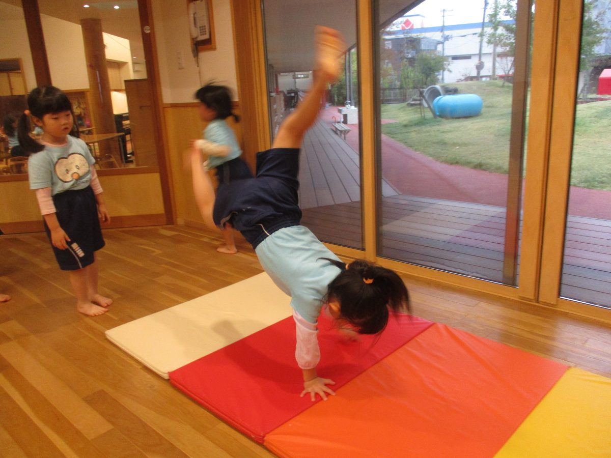 遊びの時間にも「先生見ててください!」と体操を頑張る子どもたち💮