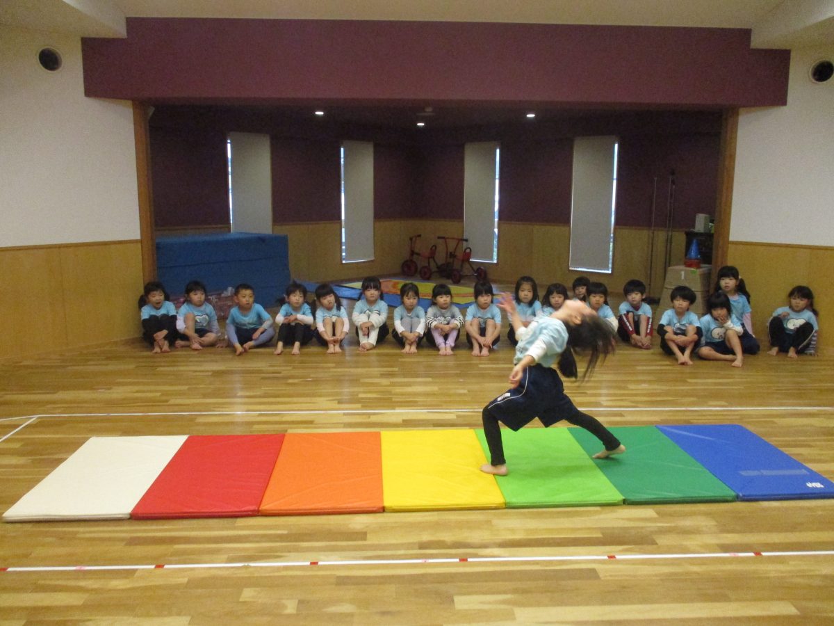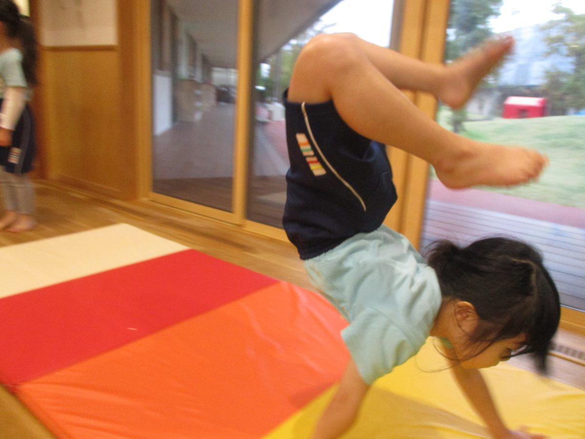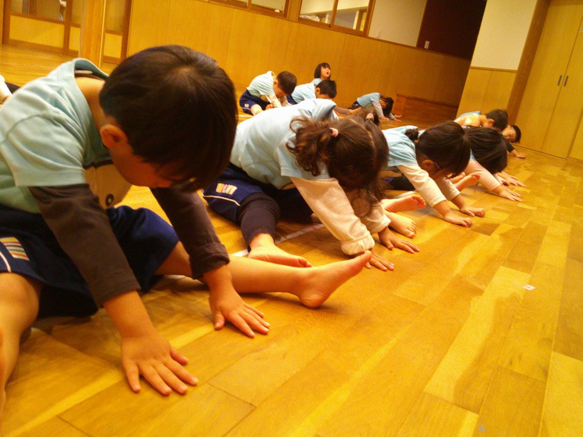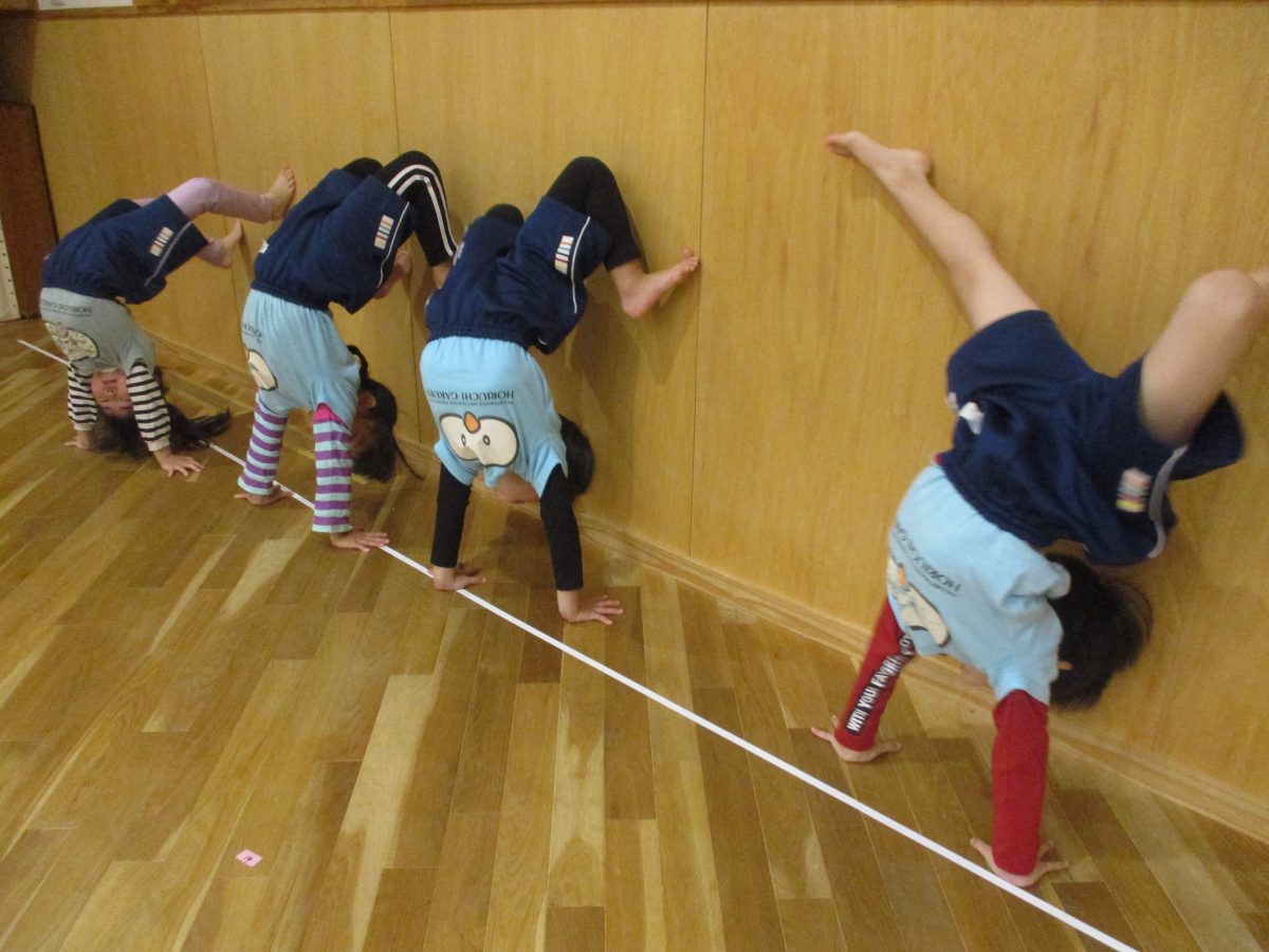 遊びの時間にも「先生見ててください!」と体操を頑張る子どもたち💮