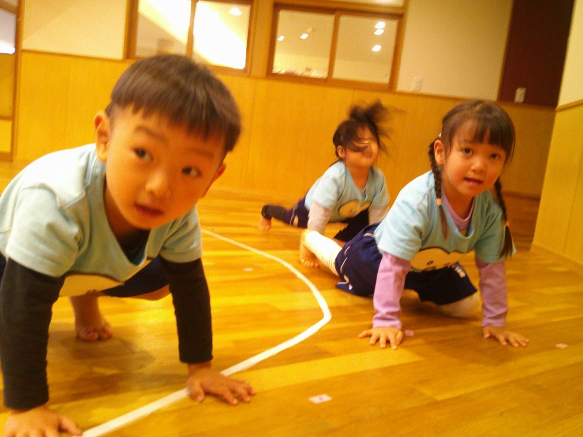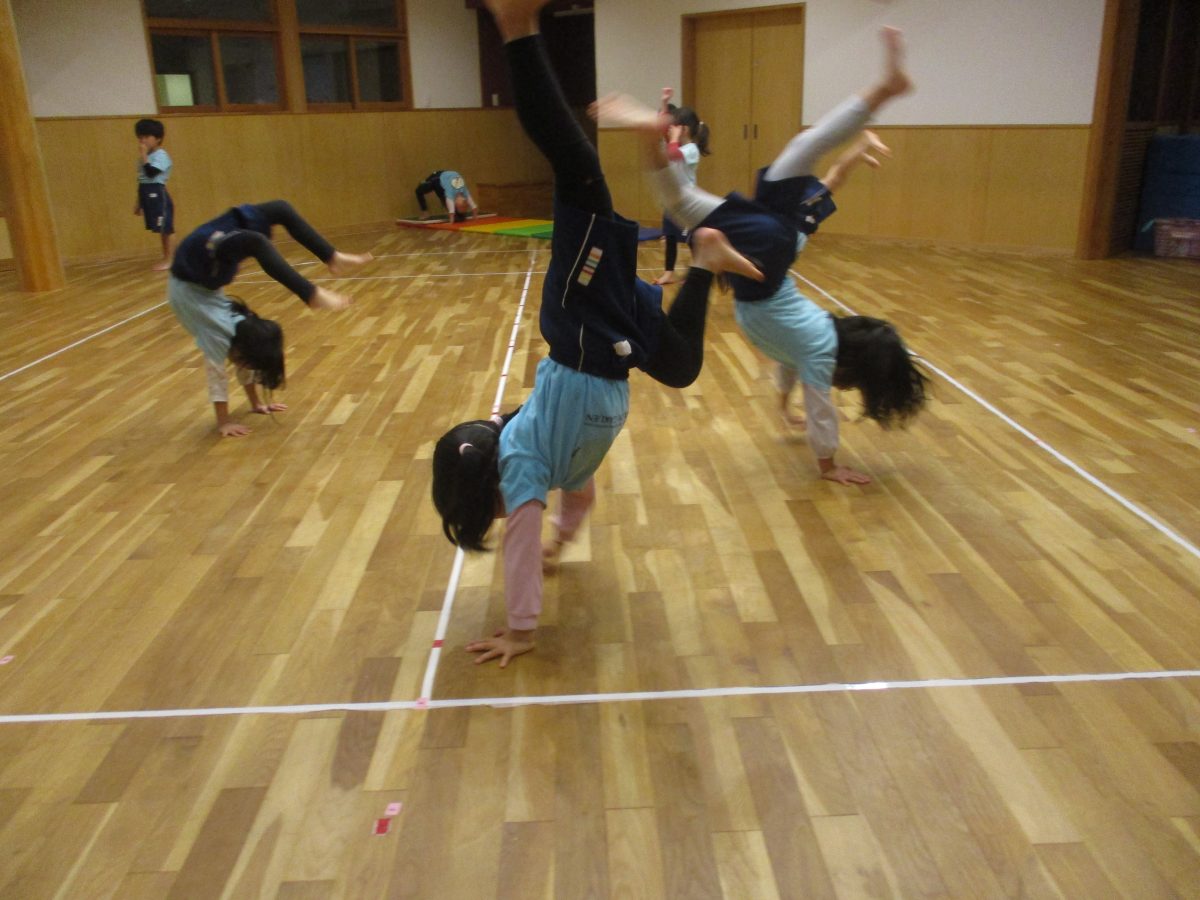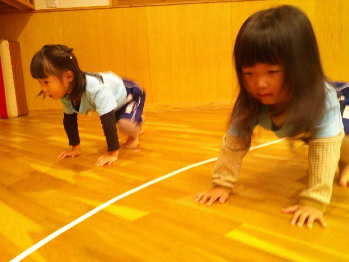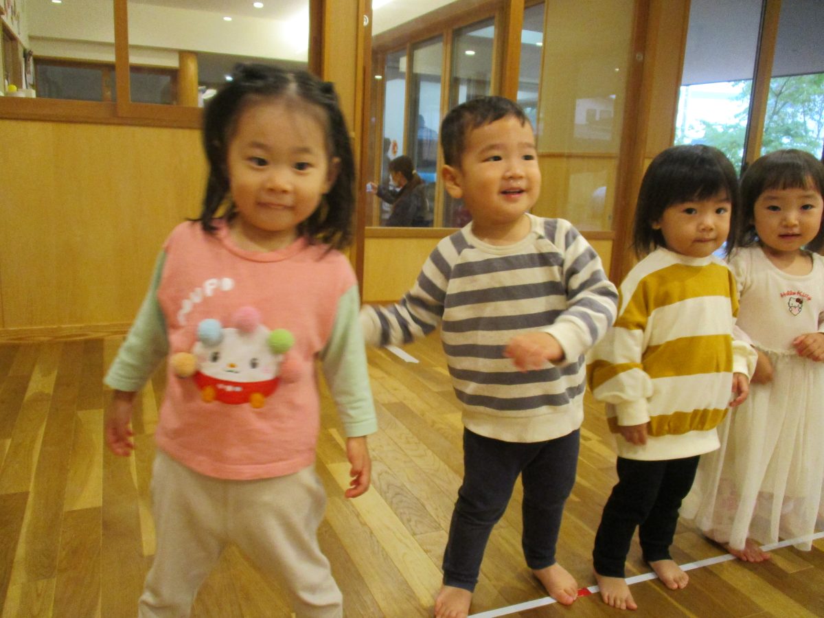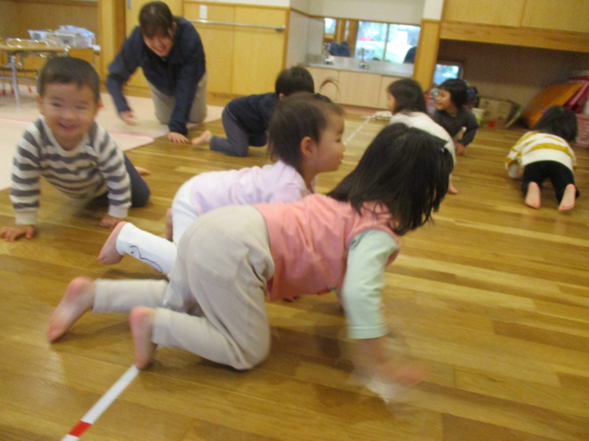 遊びの時間にも「先生見ててください!」と体操を頑張る子どもたち💮