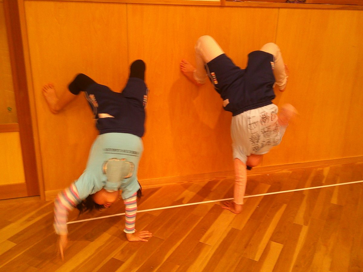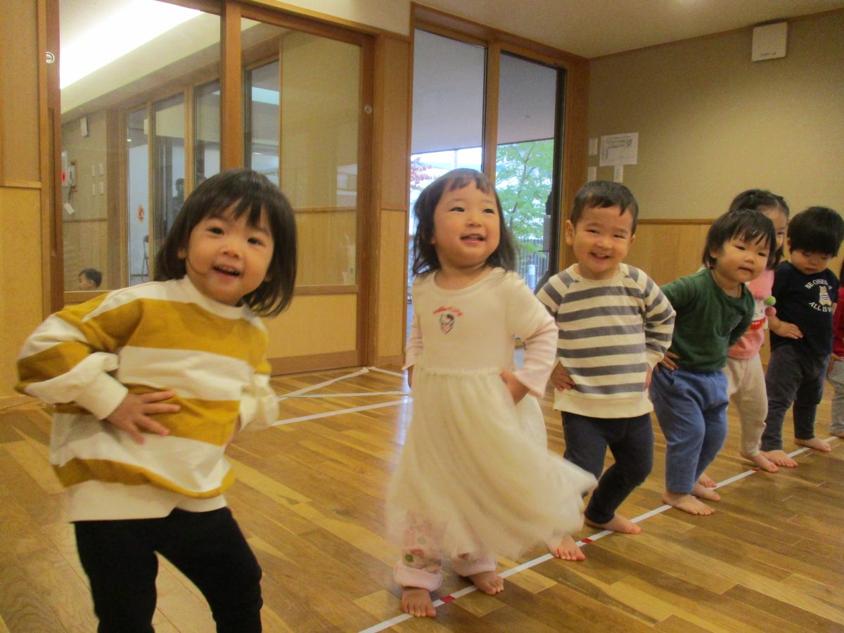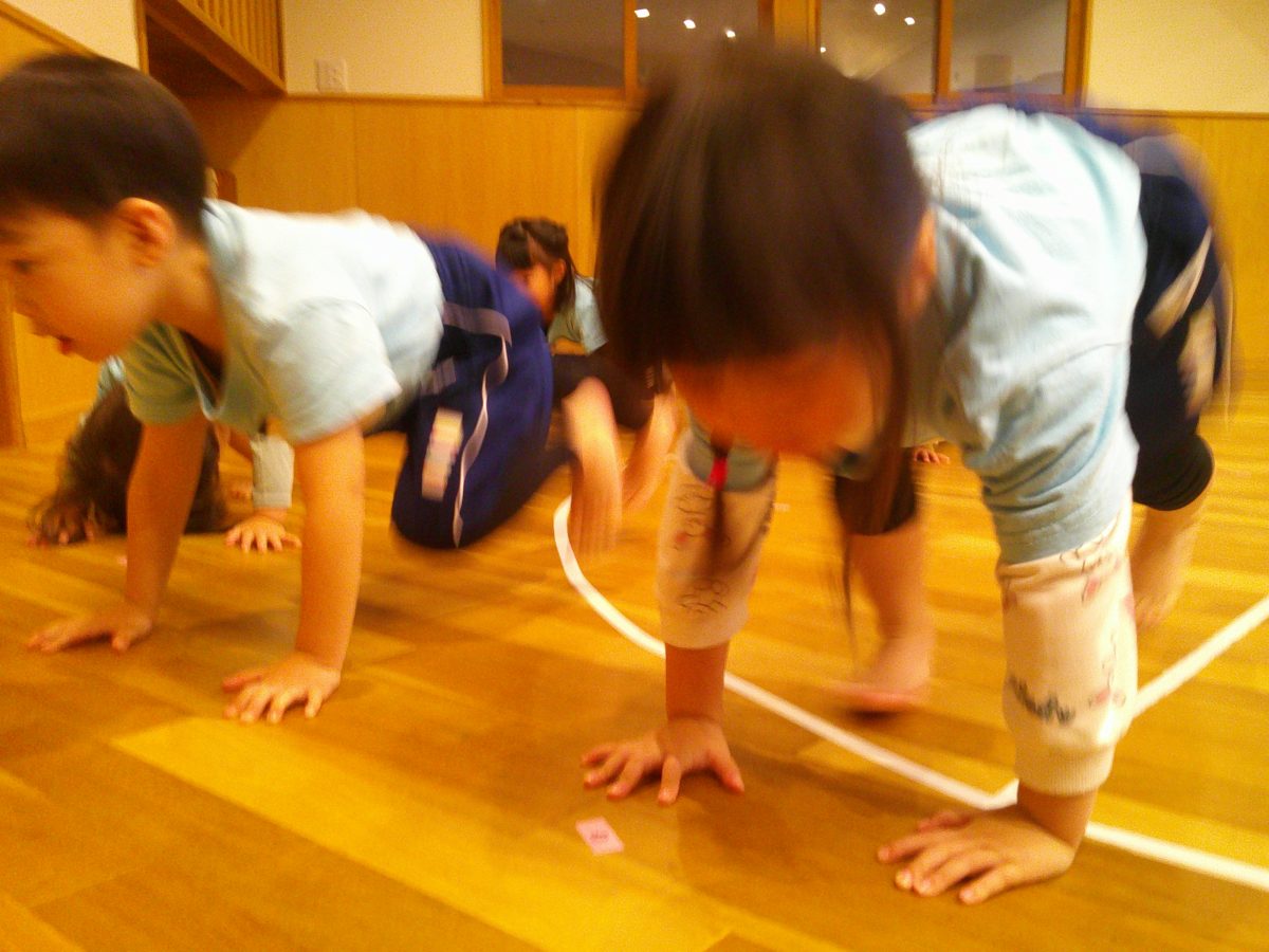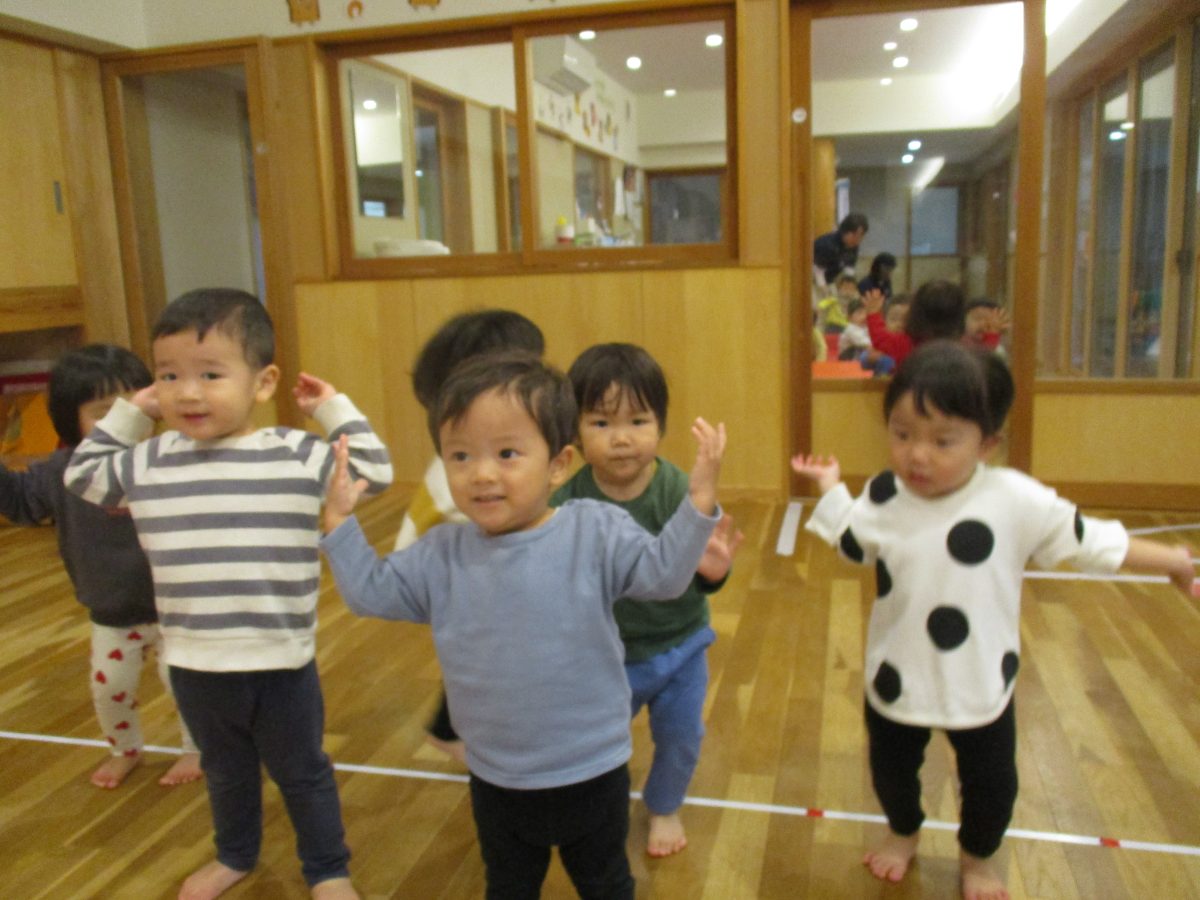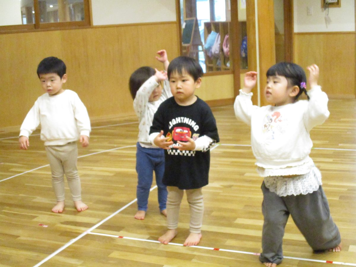 遊びの時間にも「先生見ててください!」と体操を頑張る子どもたち💮